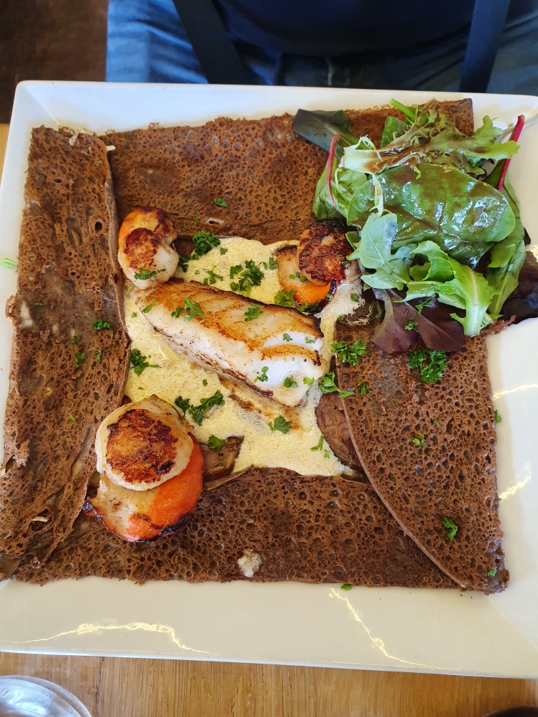 Idem aux autres commentaires. Les saint Jacques n’étaient pas bonnes. Une galette sans goût et sèche. Même les crêpes sucrées n’étaient pas bonnes… pour rater ça faut le faire. Le caramel beurre salé était immangeable. Bref. Gros gros bof. Par contre serveuse super sympa. Ça a compensé un peu…