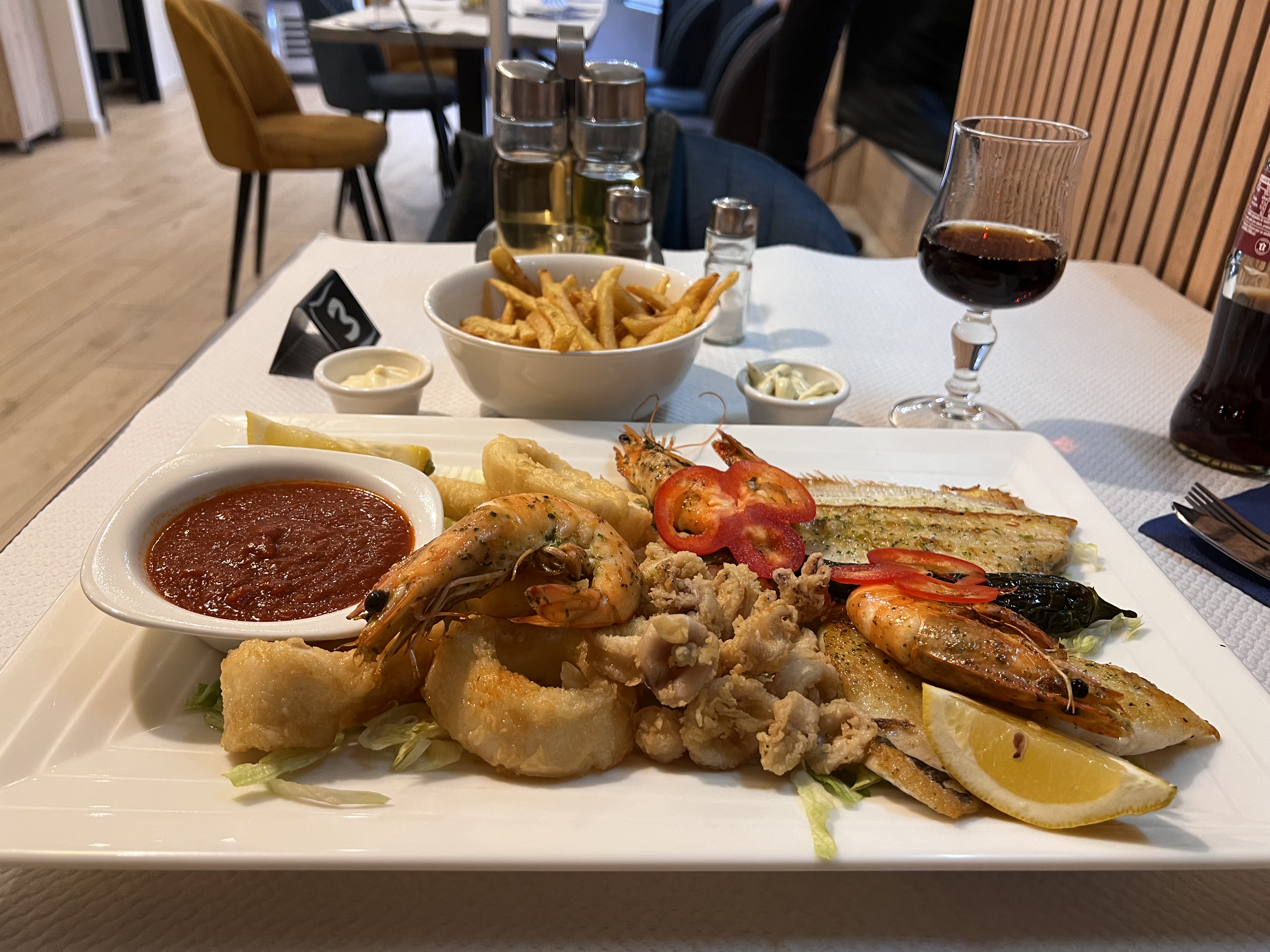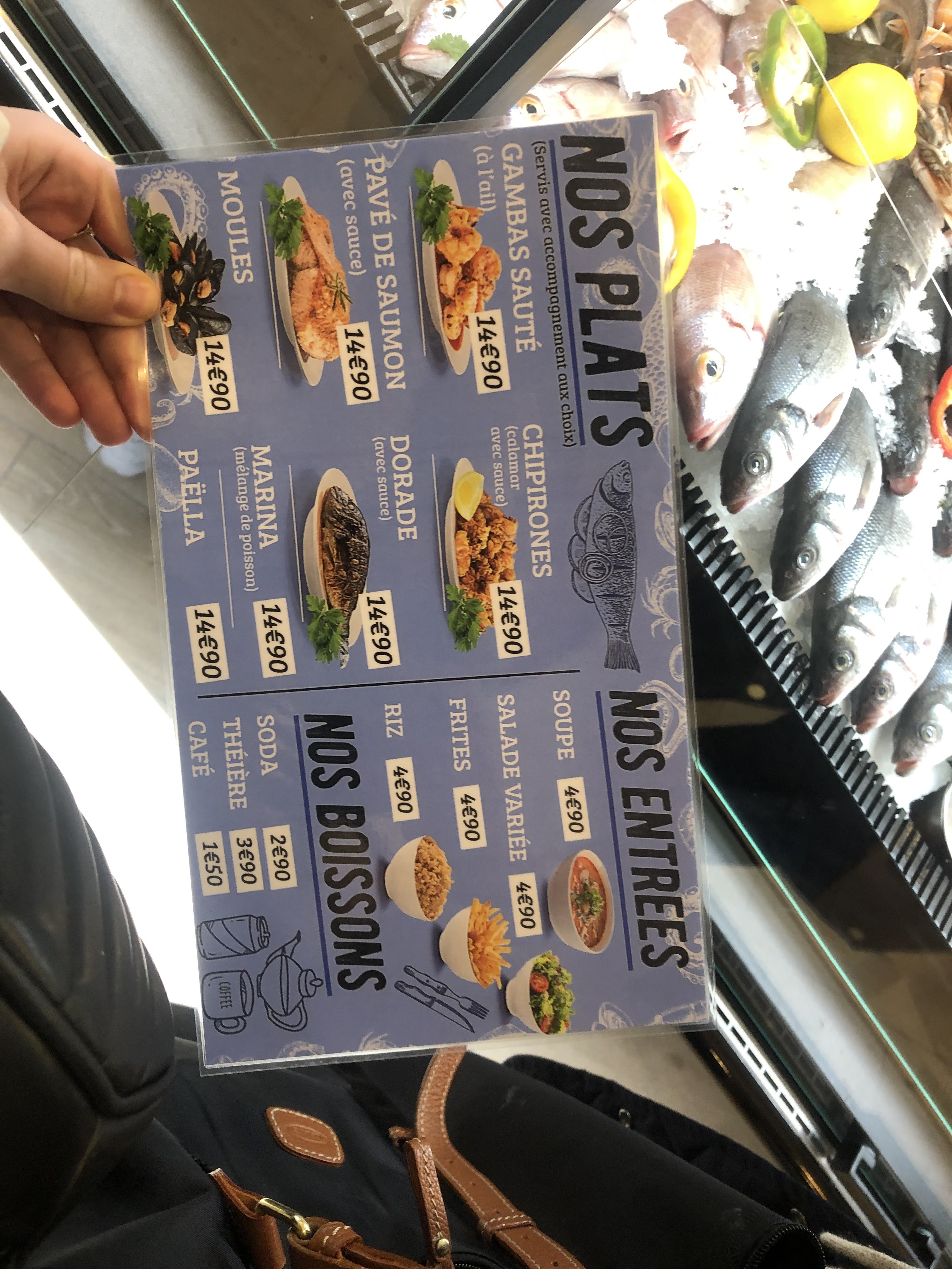 Le poisson était frais et il y en avait un large choix mais ils étaient tous cuisinés de la même manière, tous panés. Le prix est vraiment abordable. Par contre on ne propose rien d’autre, pas de fromages, pas de desserts, pas d’alcool ni de cocktails sans alcool…. C’est vraiment un peu dommage pour un restaurant…
