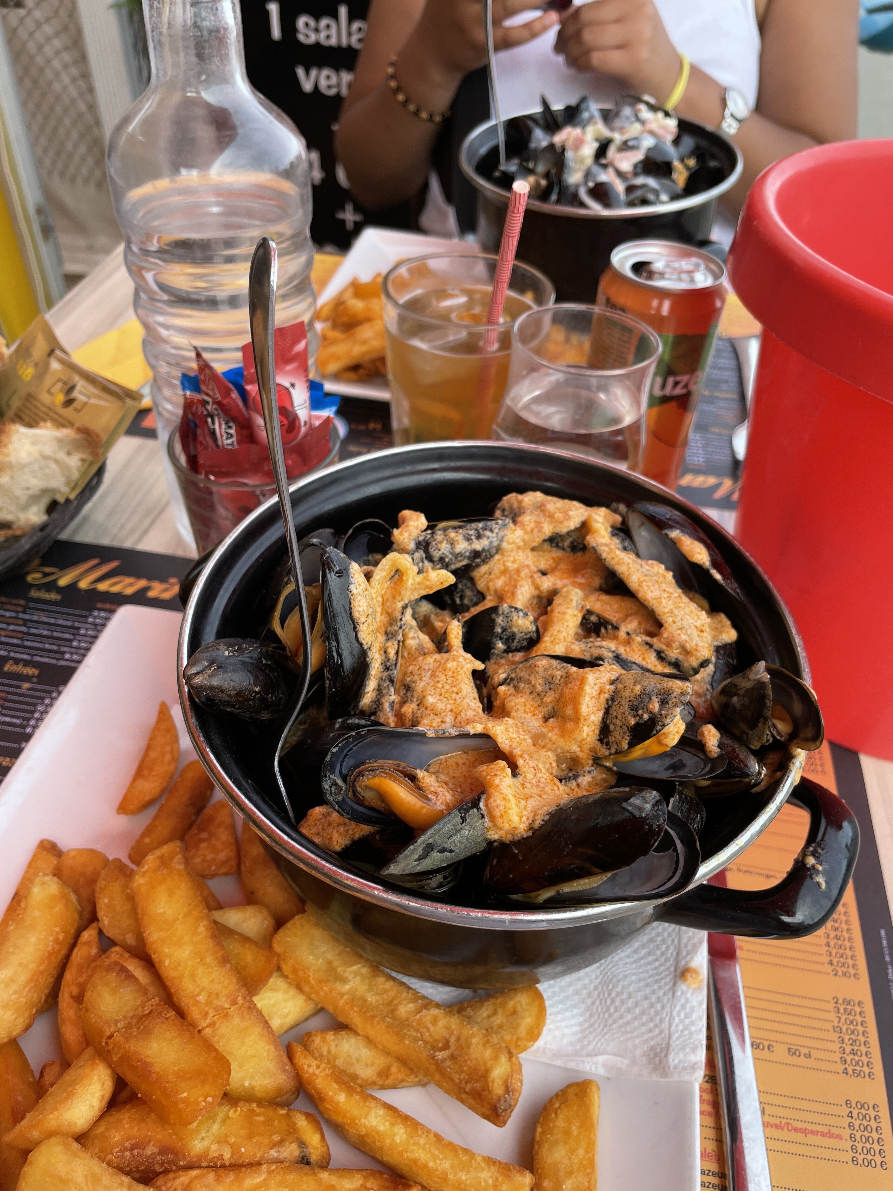 Ambiance sympa, personnel au top je recommande ! Moules frites à volonté bon rapport qualité prix !!!!