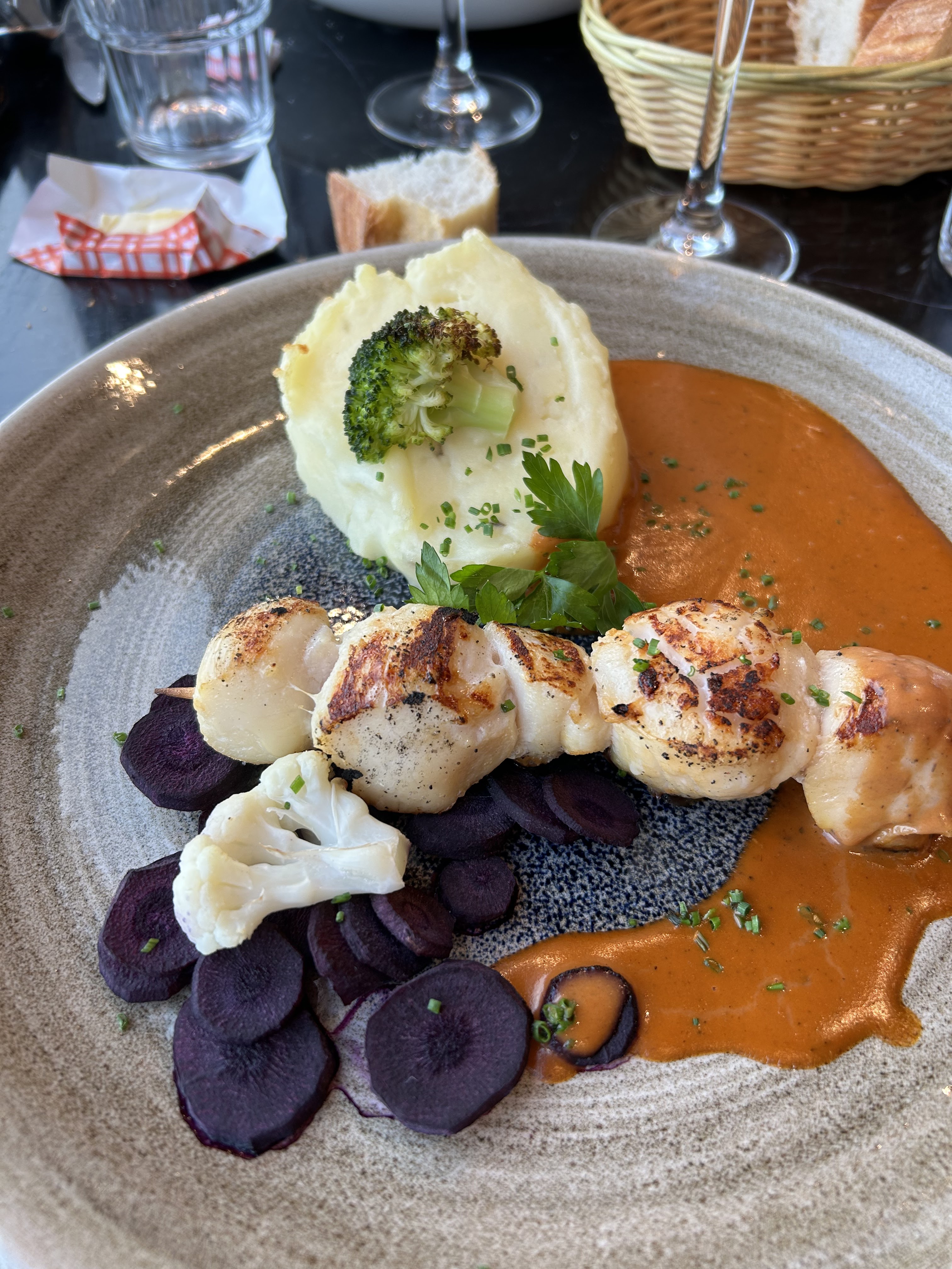 Superbe emplacement avec une très belle terrasse et super vu mer. Par contre le service était très très long, la cuisine pas terrible (moules beaucoup trop salées) et rapport qualité prix vrm moyen (14 euros le saumon gravlax en entrée pour une part minuscule) Peut être sommes nous venues le mauvais jour ? Je pense que c’est un super lieu pour boire un verre face à la mer mais de meilleurs endroits aux alentours pour manger.