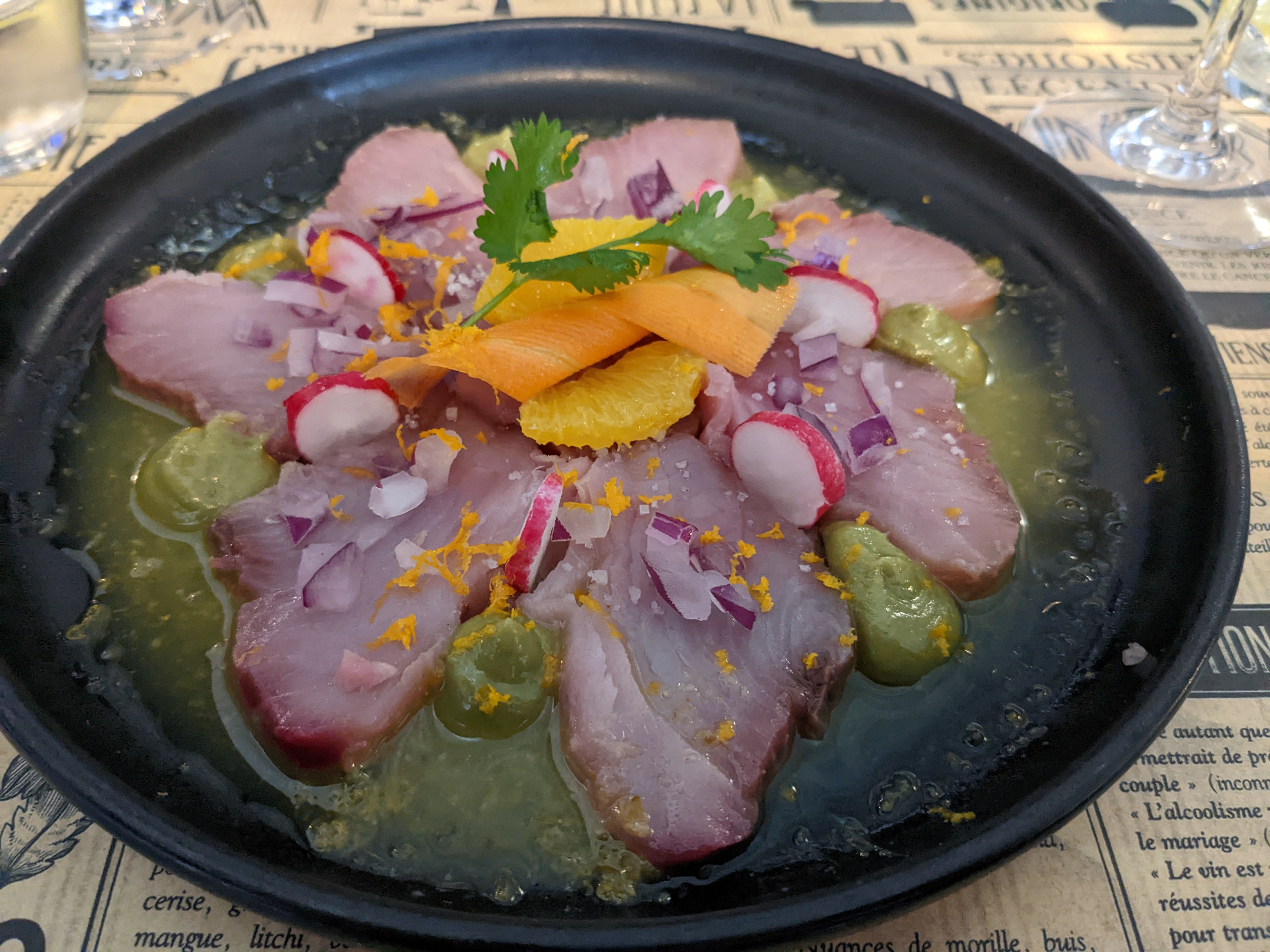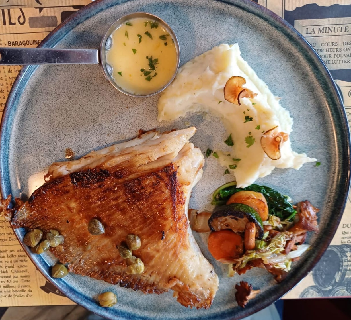 Une super surprise. C'était très bon, le lieu jaune un régal, l'aile de raie super... le patron dans son jus... comme on aime. Bref un moment agréable. On y retournera avec grand plaisir.