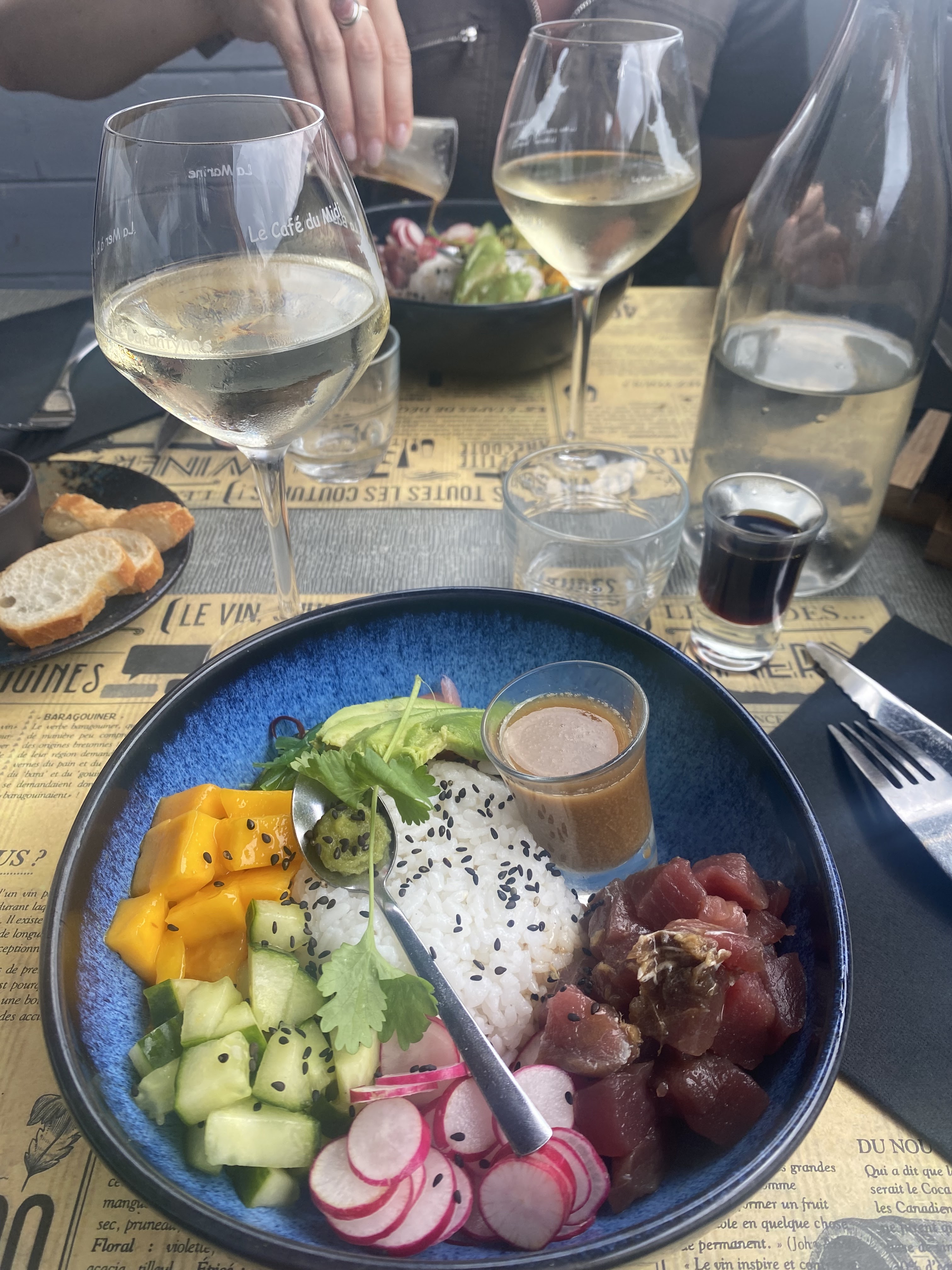 Personnel vraiment très sympa. J'ai mangé un poke bowl saumon vraiment excellent.... et on m'a recommandé un vin juste parfait... très bonne adresse