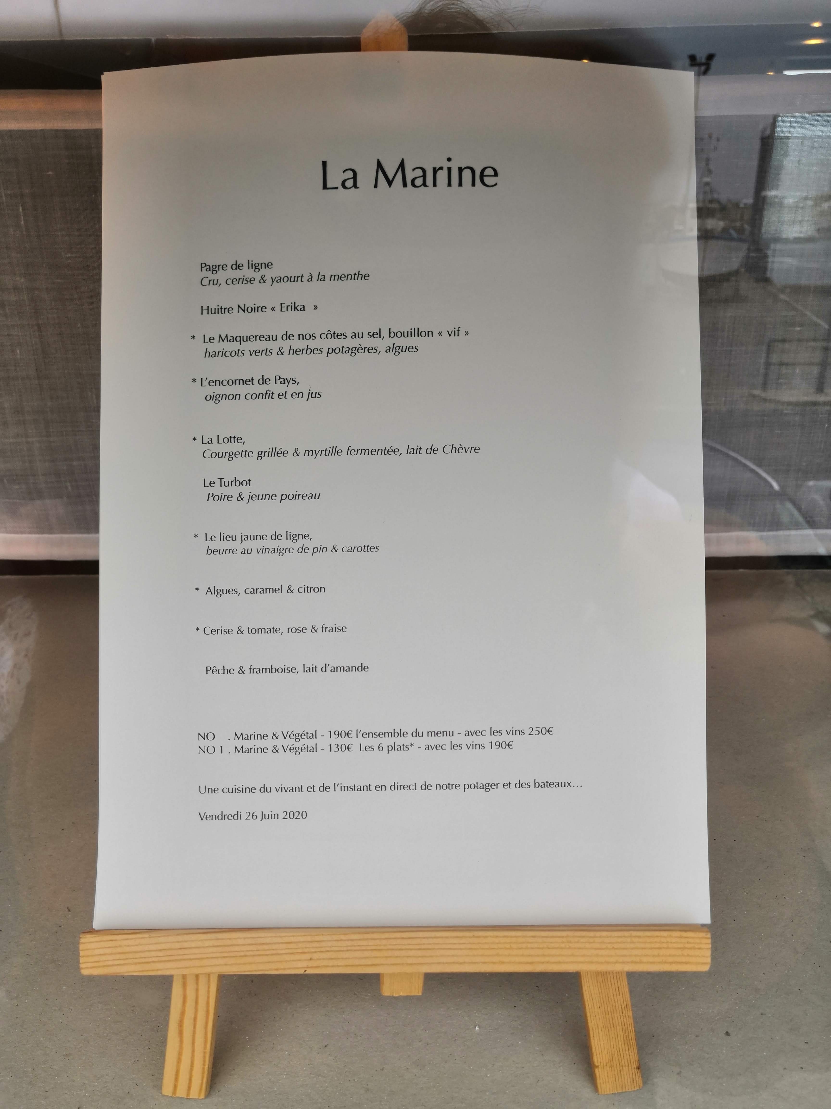 Une ode à la mer et à Noirmoutier. Alexandre Couillon amène dans l'assiette son histoire, sa terre, ses racines et son inspiration. Le poisson rencontre le végétal dans une symphonie gustative qui ne laisse pas indifférent : à La Marine on met en capsule toute la magie que la nature peut donner à nos sens pour en tirer une expérience culinaire de haut vol. Une troisième étoile plus que mérité et qui récompense je pense, rien moins qu'un des meilleurs restaurant de poisson de France, voir même du monde.
