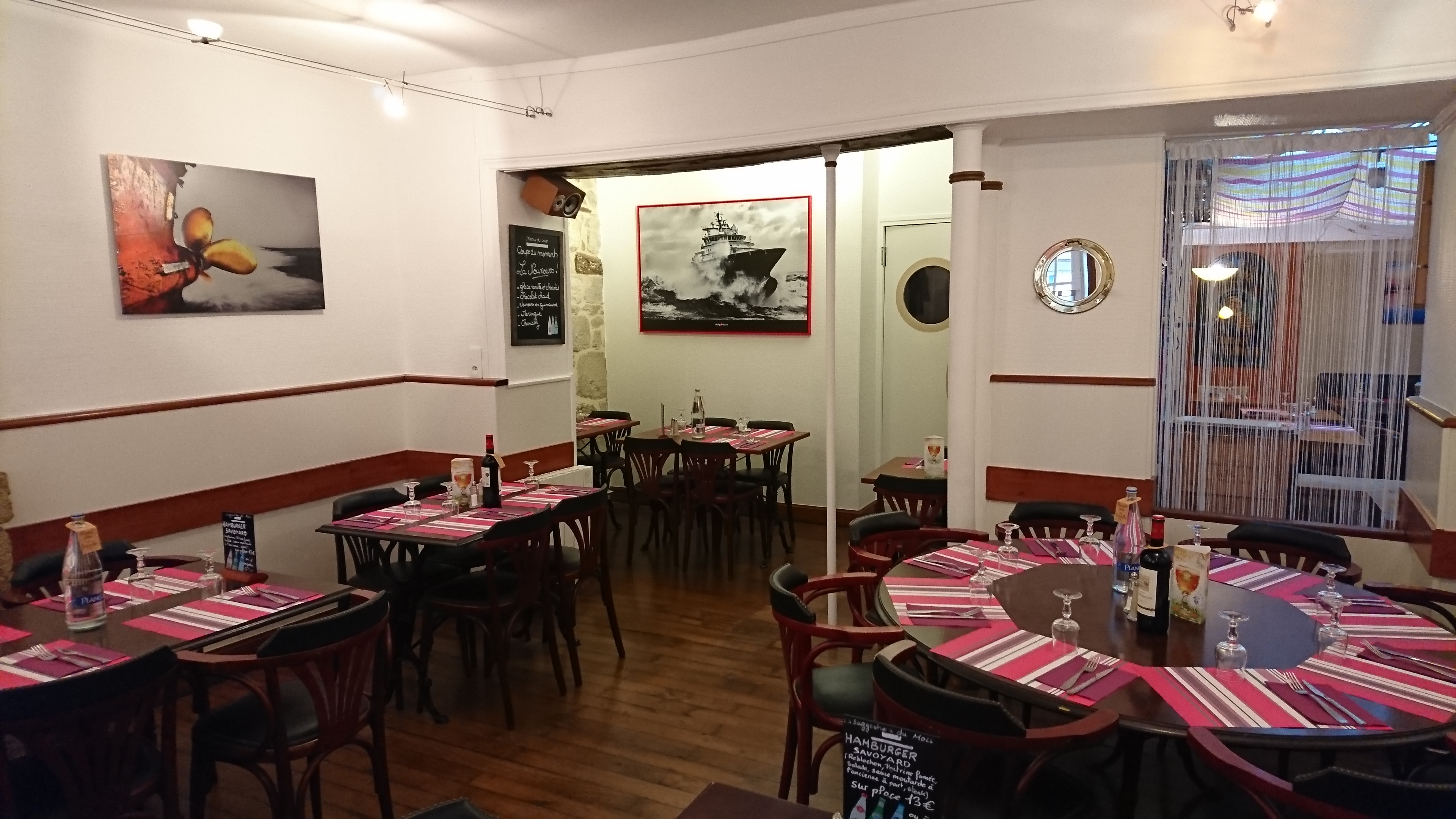 Ne pas se fier à l extérieur en bord de route Très beau décor à l intérieur sur le thème de la mer cuisine excellente serveuse très souriante. Très bonne adresse à recommander. Le menu à 34 euros est vraiment bien et copieux.