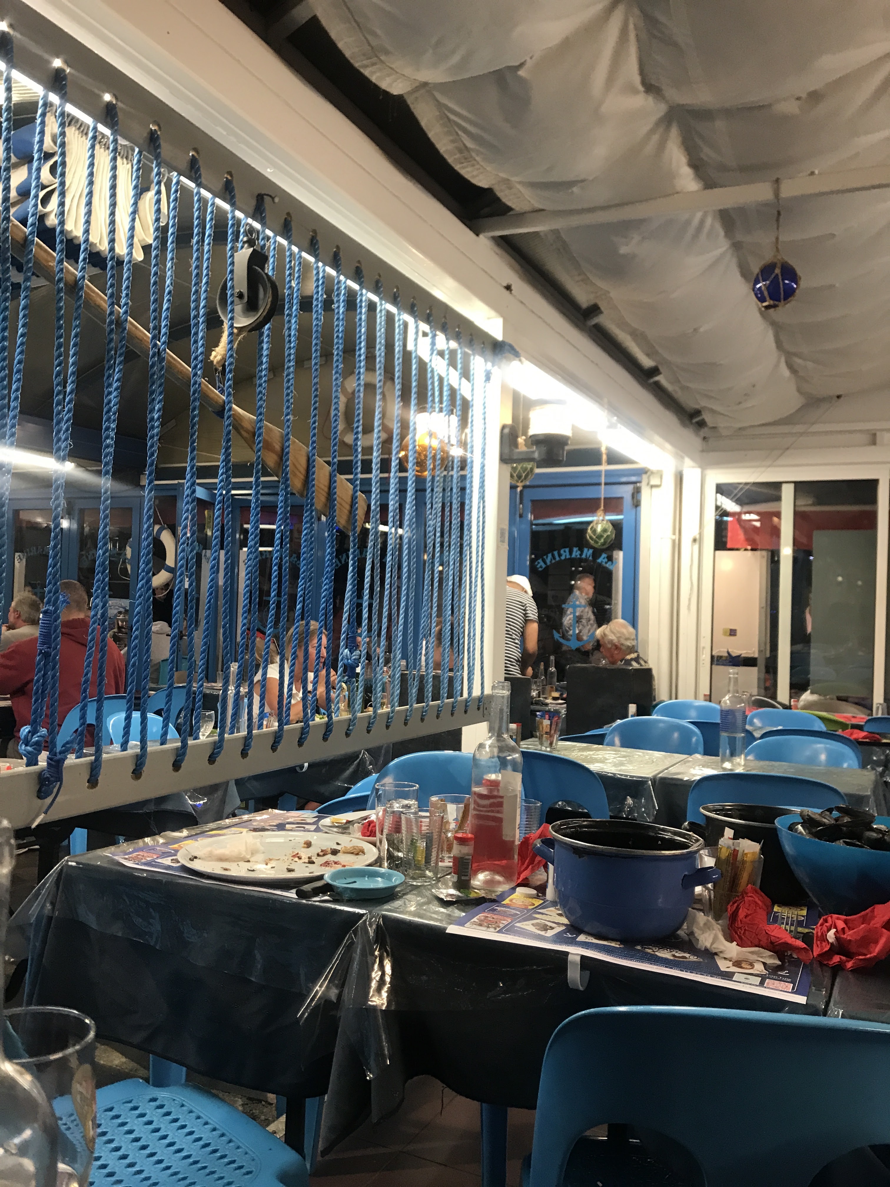 Les produits sont de qualité moindre mais vu les prix plus abordables en comparaison des restaurants sur le port il fallait s'y attendre. Nous sommes partis après les entrées car le service n'arrivait pas à suivre. Les serveurs sont sympathiques et le cadre agréable, dommage.