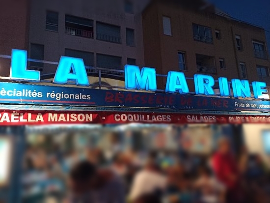 On gambergeait tranquillement mes amis et moi, puis soudainement une faim nous envahit. Nous décidons alors de manger au restaurant La Marine… Nous nous installons et nous faisons face directement à un serveur AIGRI. L’individu très froid, prend nos commandes. Première chose, le plat à un retard de 40 min (petite précision, il n’y avait pas grand monde dans le restaurant), les frites n’étaient pas cuites, la viande (que du gras) non plus, la salade de fruit, sorti d’une boîte de conserve et pour finir nous nous faisons AGRESSER par l’individu qui ne voulait pas être aimable et nous expliquer les choses correctement dans la paix. Petit aparté, nous n’avons pas le droit de payer par plus de 2 paiements par table, ce qui revient cher pour des étudiants. A FUIR