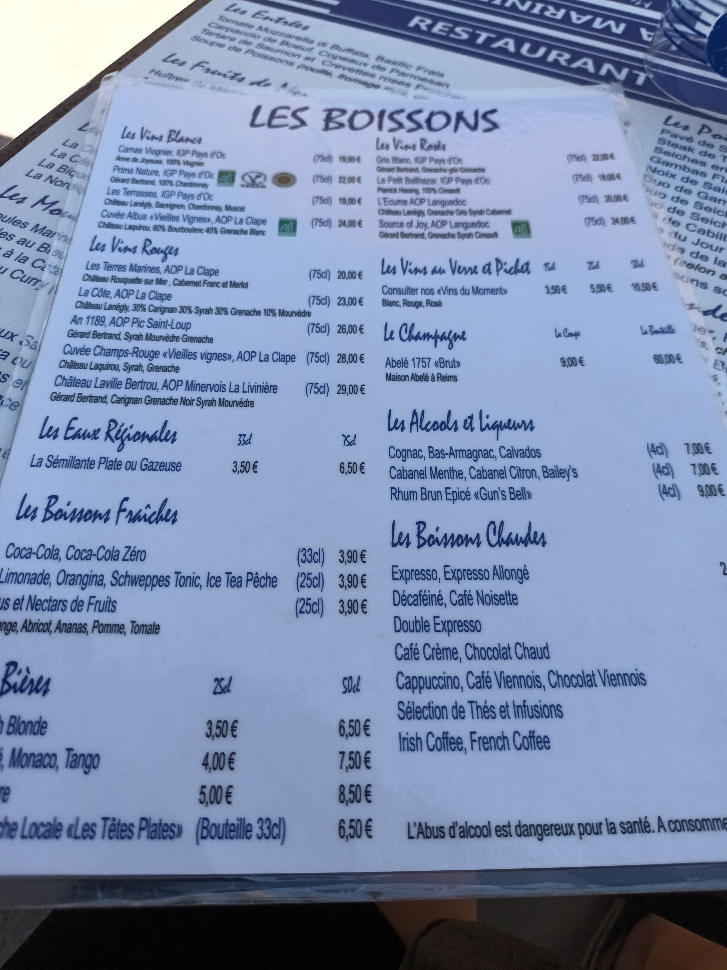 Je recommande vivement ce restaurant. Très bon rapport qualité prix car les plats sont copieux et les produits sont frais. Les serveurs sont très sympathiques et l'attente entre les plats est très courte en dépit du monde présent au restaurant. Adresse incontournable sur Saint-Pierre-la-Mer, et petit conseil supplémentaire : ce restaurant est très fréquenté en pleine saison, donc réservez avant de venir ou, sinon, arrivez tôt (entre 19h et 19h30 au plus tard). Voici les photos de la sangria et du menu à 22€.
