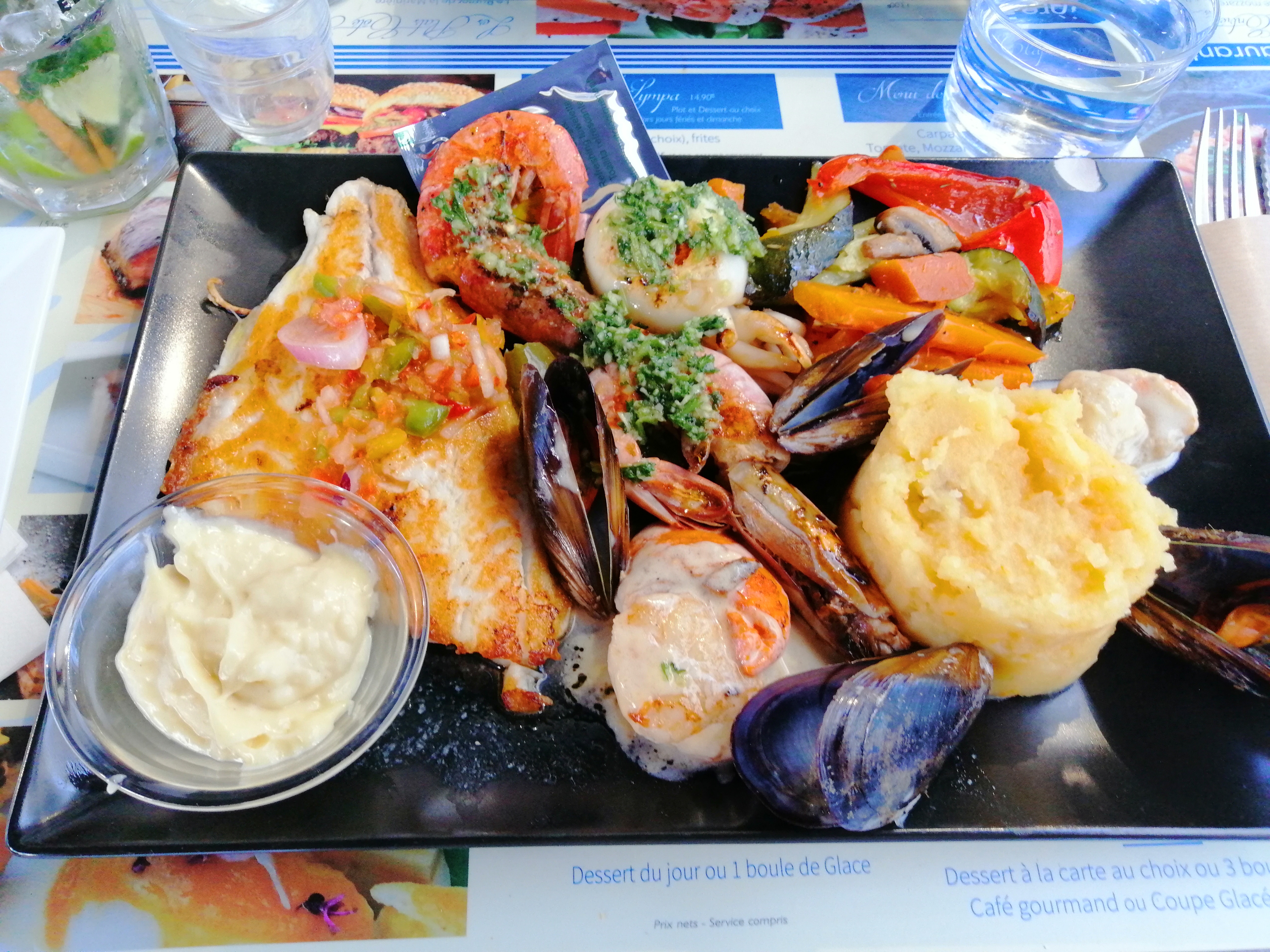 Restaurant bien placé non loin du marché et de la plage. Les serveurs et les serveuses sont très sympathiques et efficaces mais hélas, je pense qu en cuisine ça ne suis pas et que les commandes ne sont pas honorées dans l ordre. En écoutant un peu les remarques faite par les clients en terrasse beaucoup étaient du même avis que moi. Les plats sont bons. Par contre, la paraillade de poisson est un peu chère pour ce qu'il y a dans l assiette. Vu l attente un café offert aurait été le bienvenue même si je comprends qu'il est difficile de trouver des saisonniers. Courage aux serveurs et serveuses qui sont en première ligne.