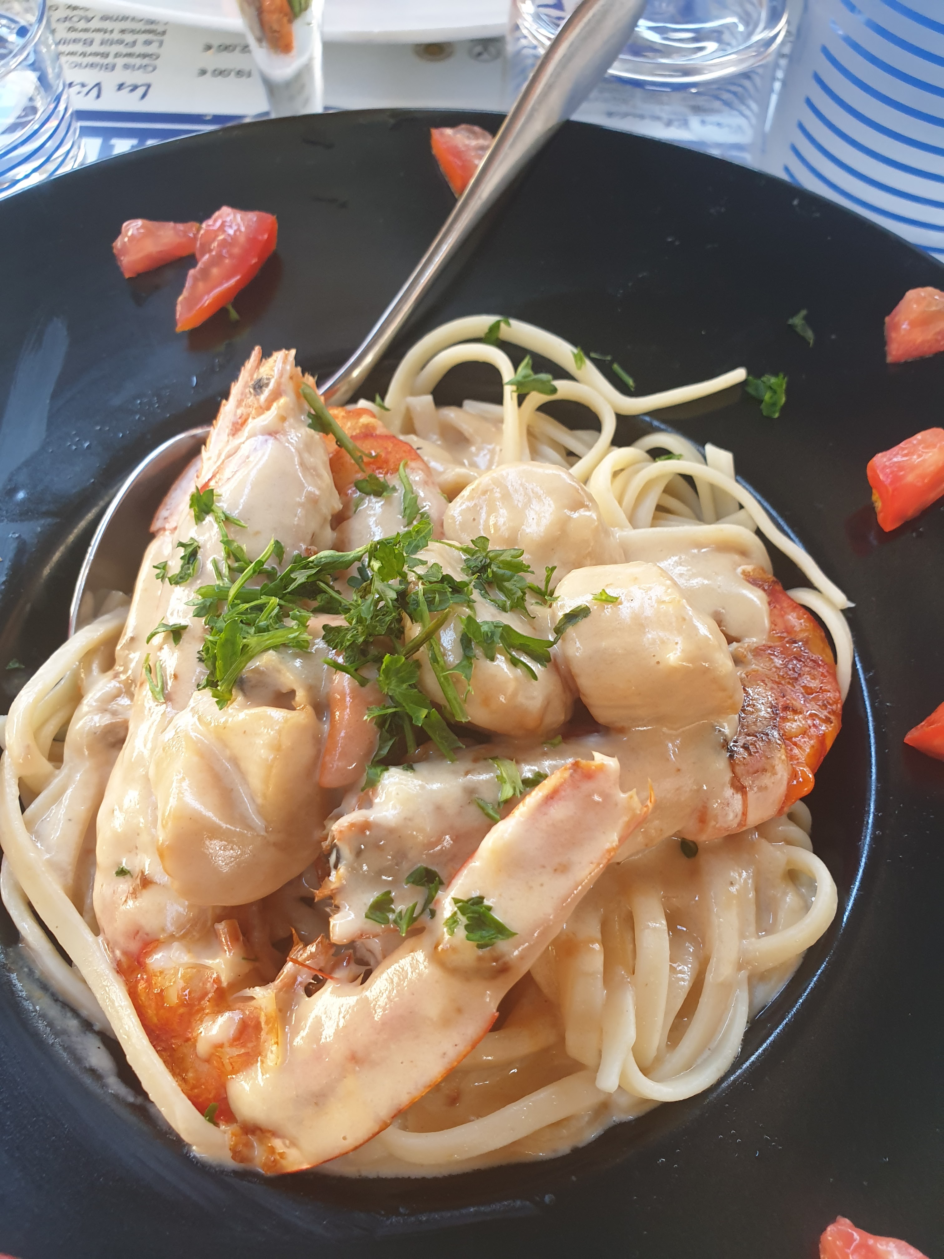 linguines au roquefort bonnes. Moules marinières moyennes car un peu trop cuites. Serveur sympa et réactif.