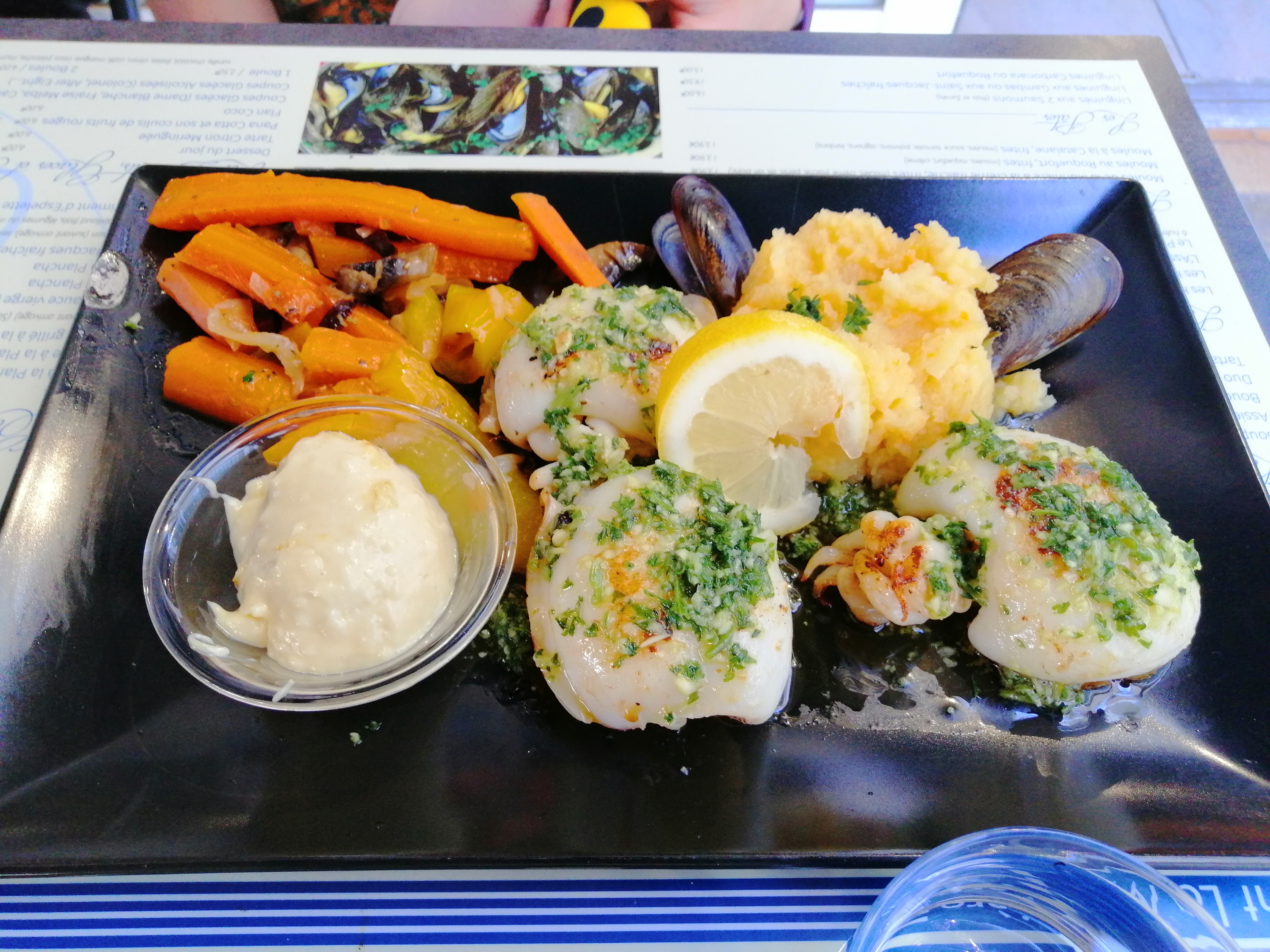 Service rapide des serveurs aux petits soins et souriant nous n'avons manquer de rien. Moules délicieuse petite déception sur les saint Jacques. dessert fait maison. Nous y retourneront lors de nos prochaines vacances.