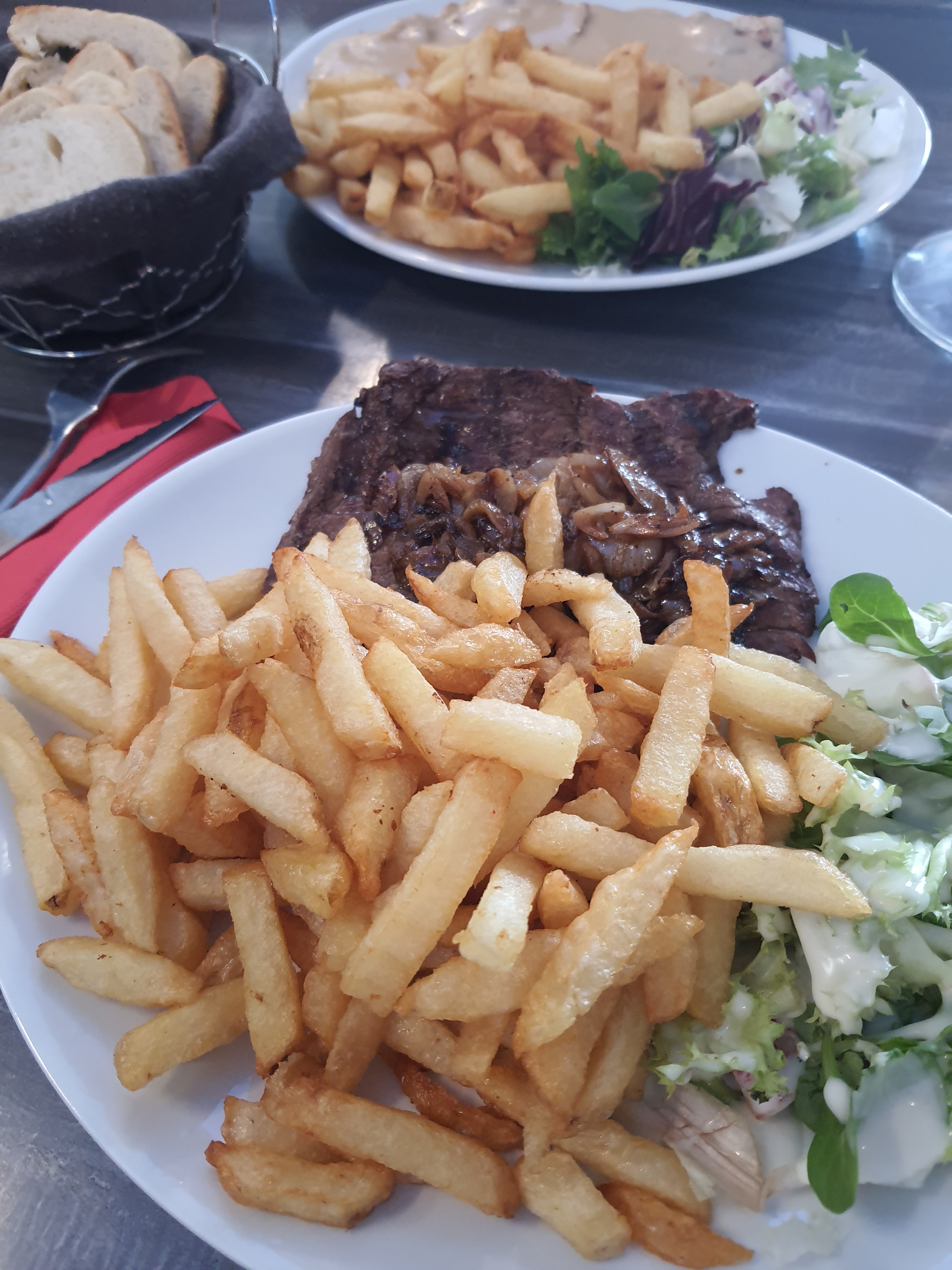 Heureusement que la nourriture a pris le dessus sur l'accueil le steak et les frites très bon