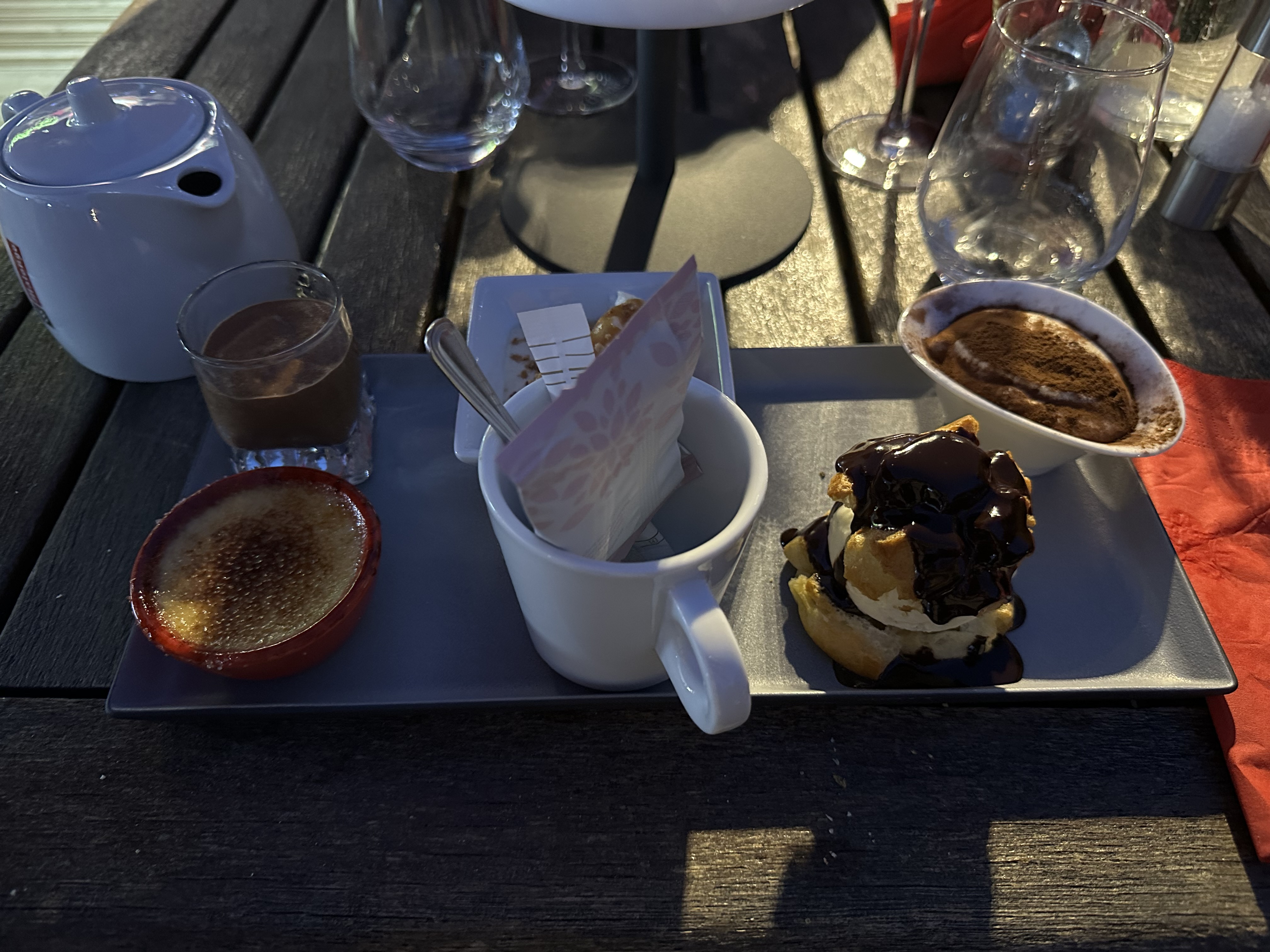 Tout était parfait! Les produits sont frais et tout est fait maison. La viande de la pierrade était de très bonne qualité et servie en quantité! Les desserts étaient succulents et le service très agréable! Ils ont même une carte des cafés (bio et équitables). Nous avons tellement aimé que nous sommes revenus juste pour les desserts !