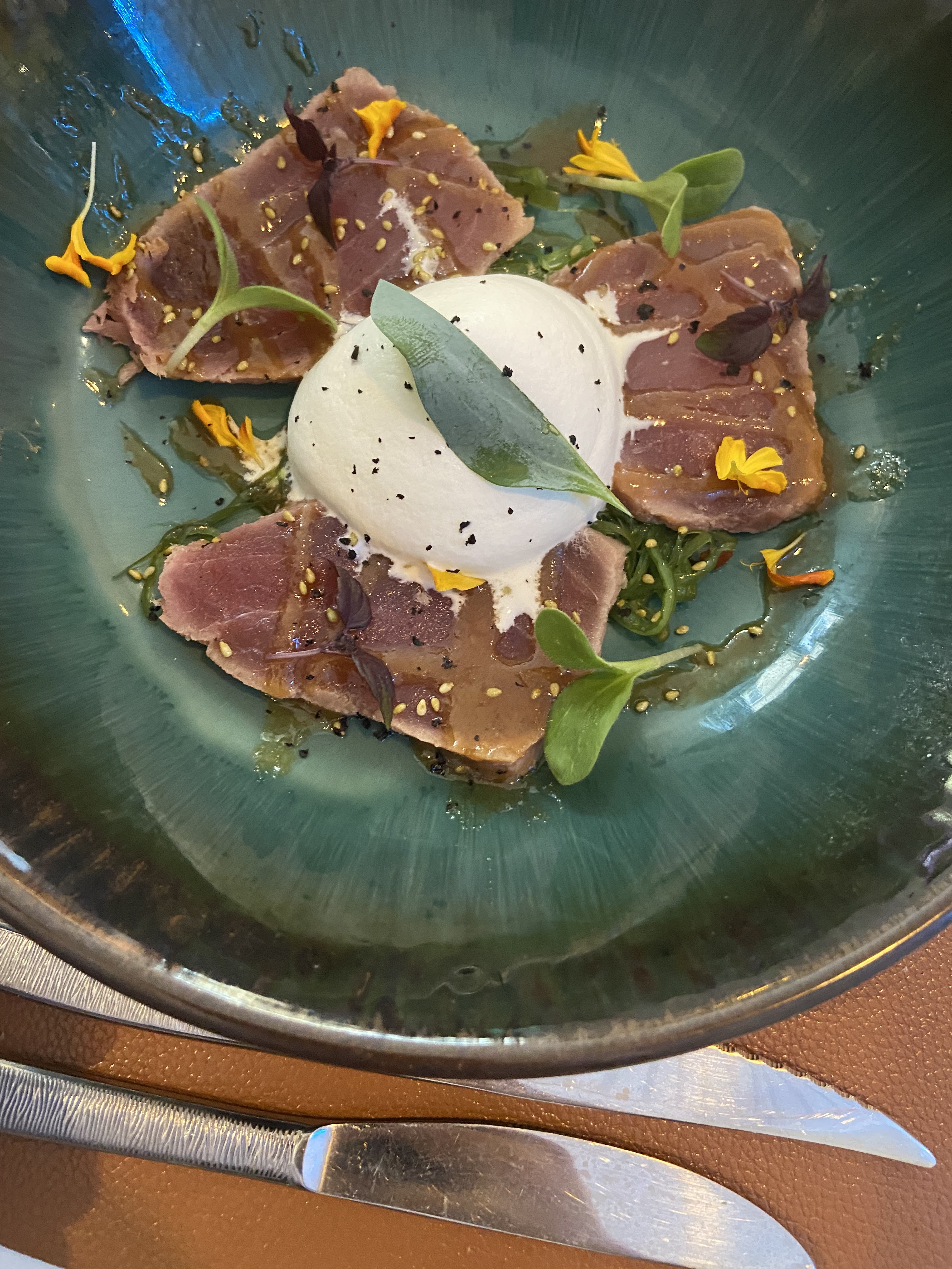 Une grande réussite et un immense plaisir du début à la fin ! L’amuse bouche (tomates séchées et petits pois) était d’une extrême finesse et au goût subtil. Foie gras, tatakis de thon, dorade, agneau : des cuissons parfaites et des assaisonnements qui subliment les plats ! Il faut rajouter un service au top du top et tout est dit ! Un grand bravo à l’équipe !
