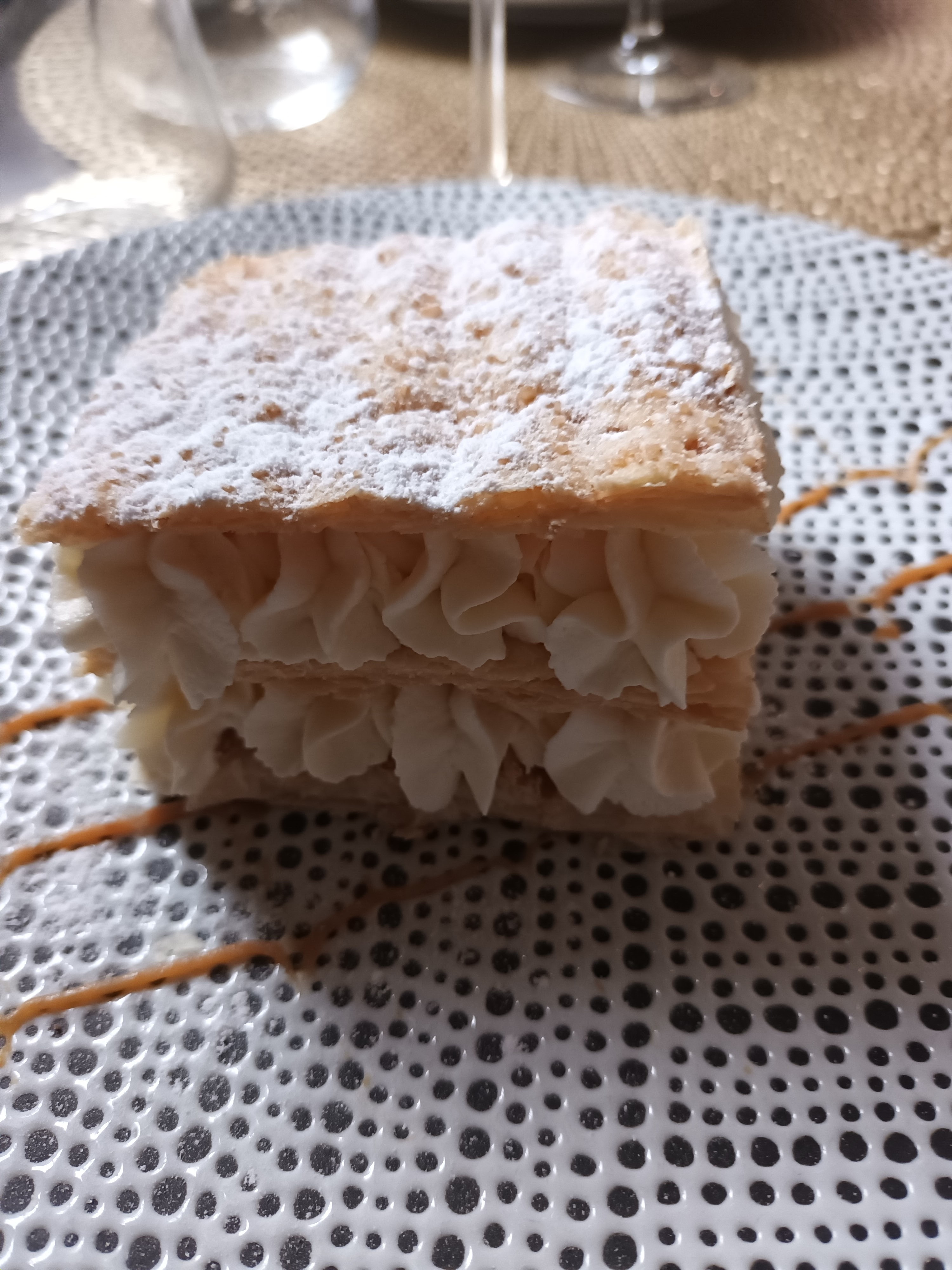 Accueil sympathique, les plats corrects, rapport qualité prix correct, j'attendais plus par rapport aux avis. On voulait un apéritif...il n'a pas été proposé. La proposition a été directe au menu alors nous n'avons pas pris... Le mille feuilles, très bon, léger, moins joli que dans les photos. Notre deuxième choix décevant, caoutchouteux, sans goût. Le service est rapide pour le plats mais lent pour les desserts. On aurait pu prendre un digestif mais... je pense que il y a l'idée mais manque d'expérience sur certains sujets.