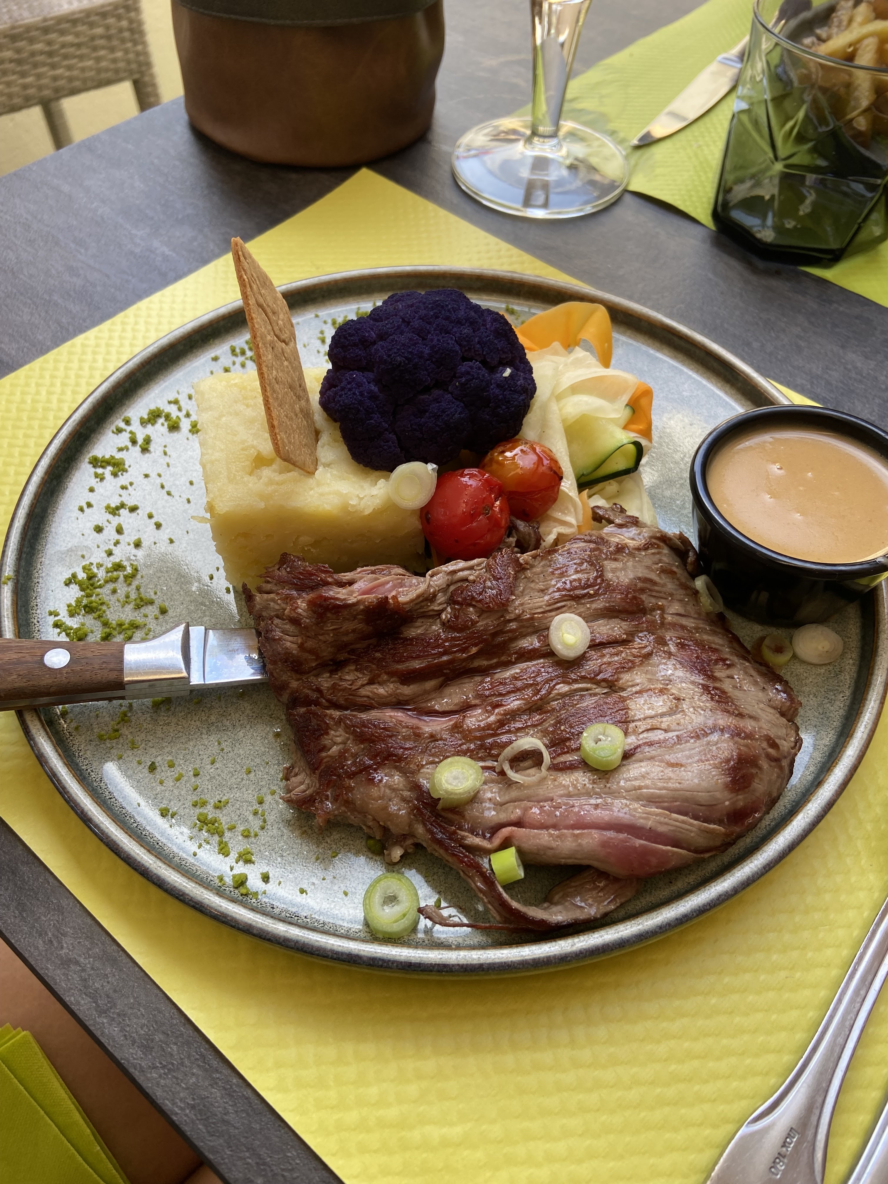 Personnel agréable, service impeccable. Une bonne adresse, mais le supplément pommes de terre à 5€, c'est une source de mauvais avis potentielle! Dommage..