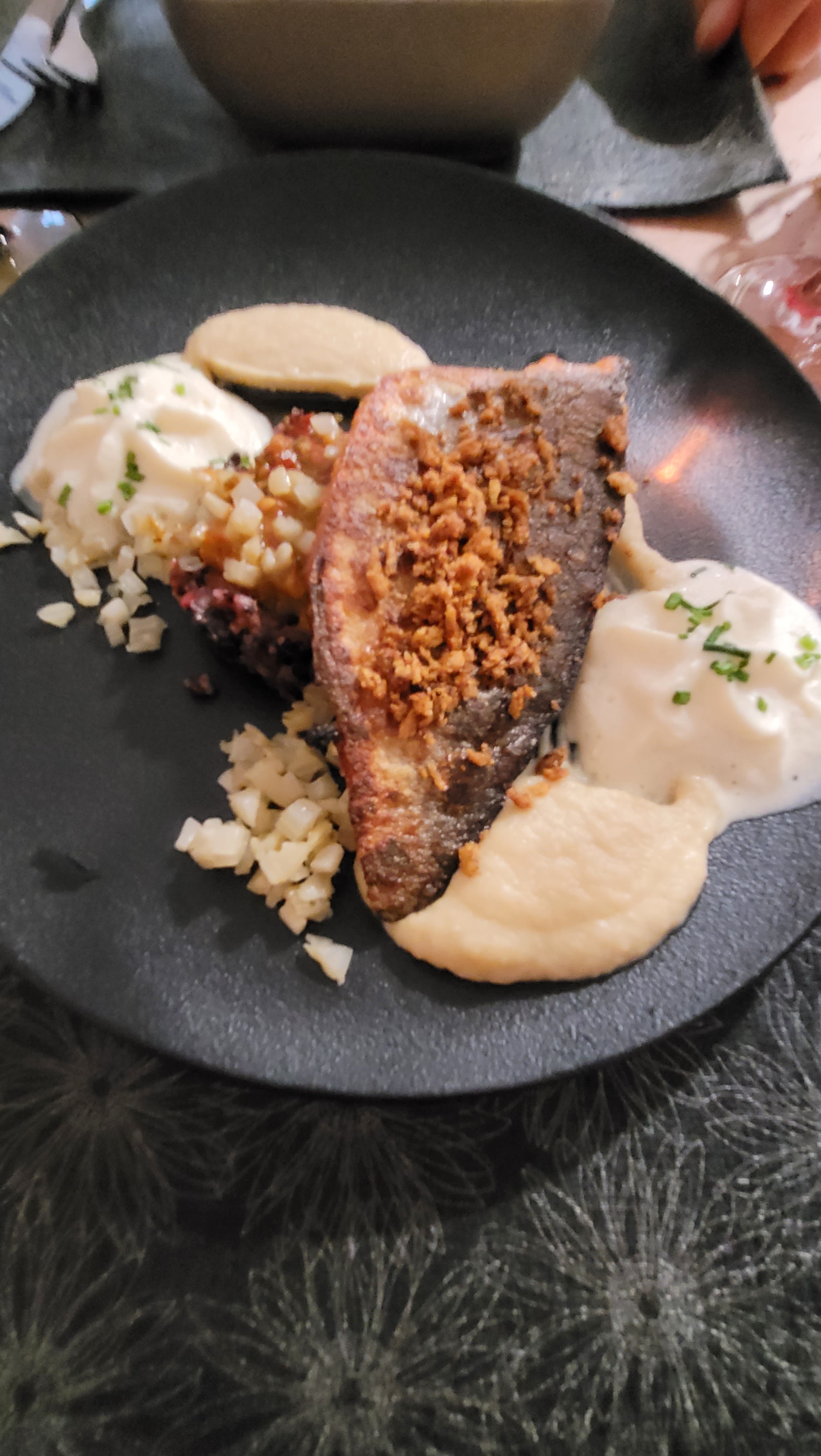 Produits à mon avis issuent de surgelés. Poisson, un doute que l'ombre chevalier ne soit pas simplement du saumon et de toute façon beaucoup trop cuit et sec. Seul le dessert était acceptable.