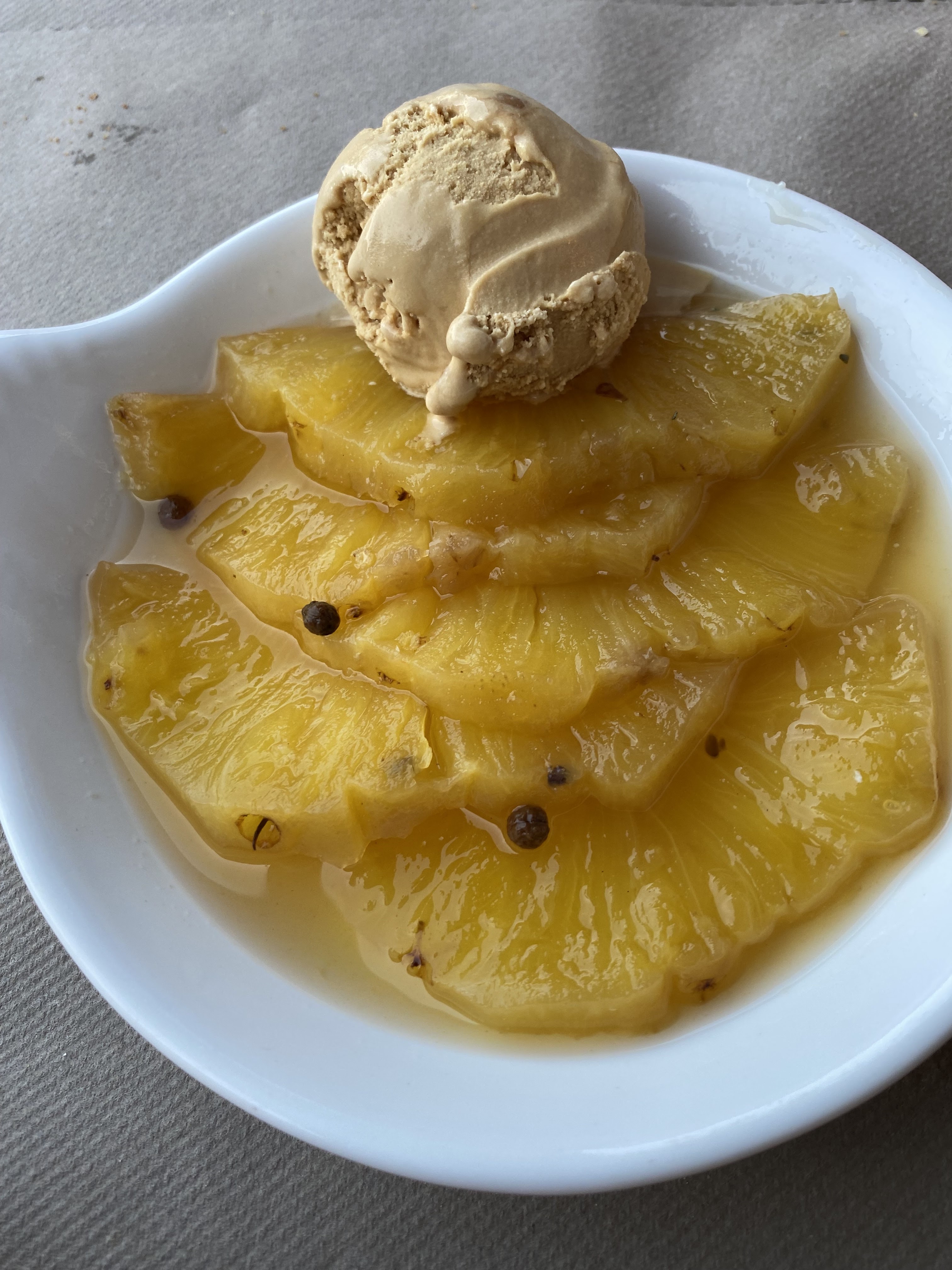 Un diner très agréable et abordable, avec des produits locaux travaillés de façon plus ou moins élaborée mais toujours savoureuse. Gazpacho de melon relevé et délicieux puis une andouillette fraise de veau et porc, pour ce soir là! La carte dépend du marché du jour ce qui donne envie de revenir souvent!