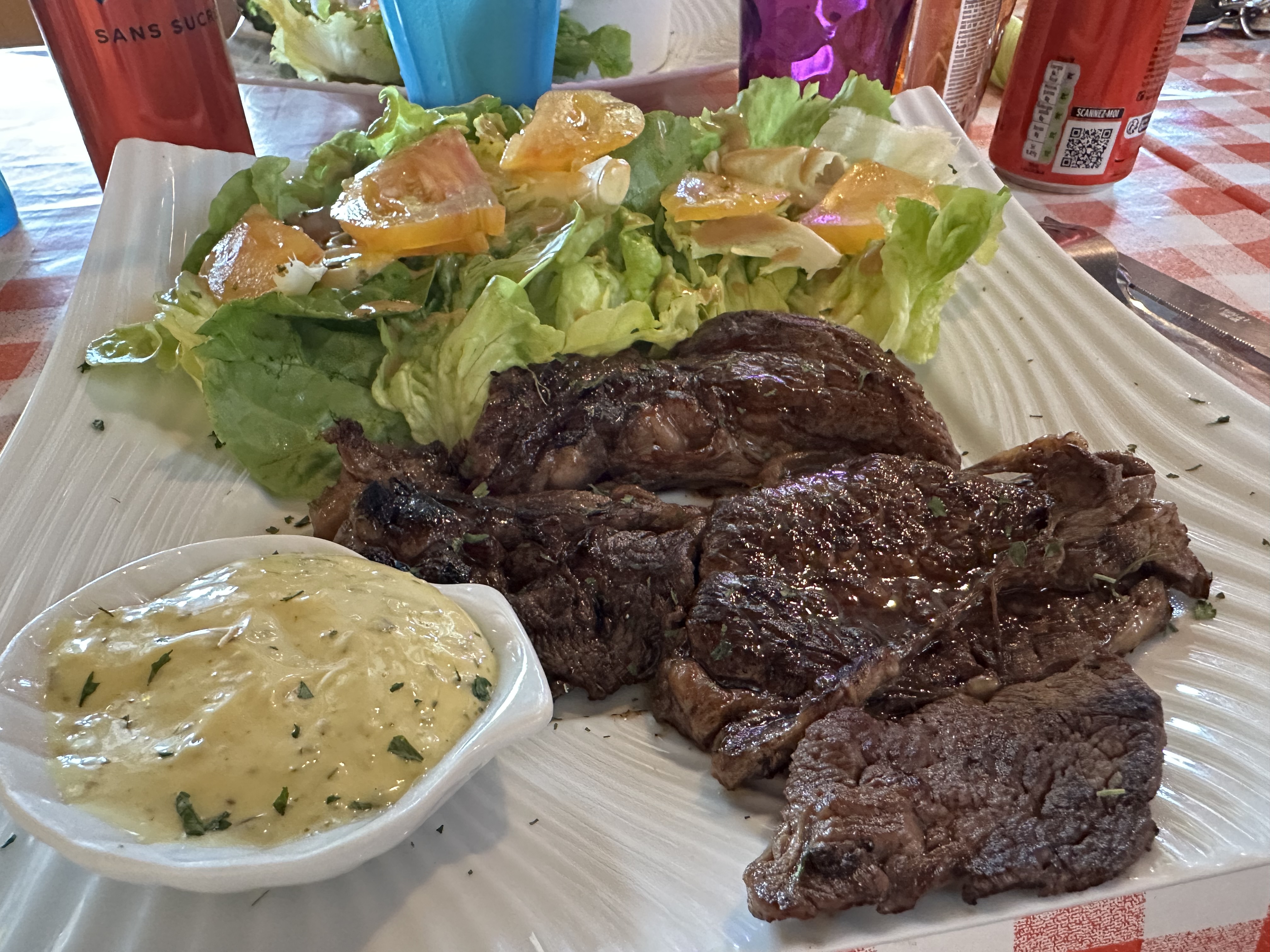 Ce midi côte de boeuf avec frites maison à tomber 😋😋😋😋 vin offert et digestif offert par le patron 😉