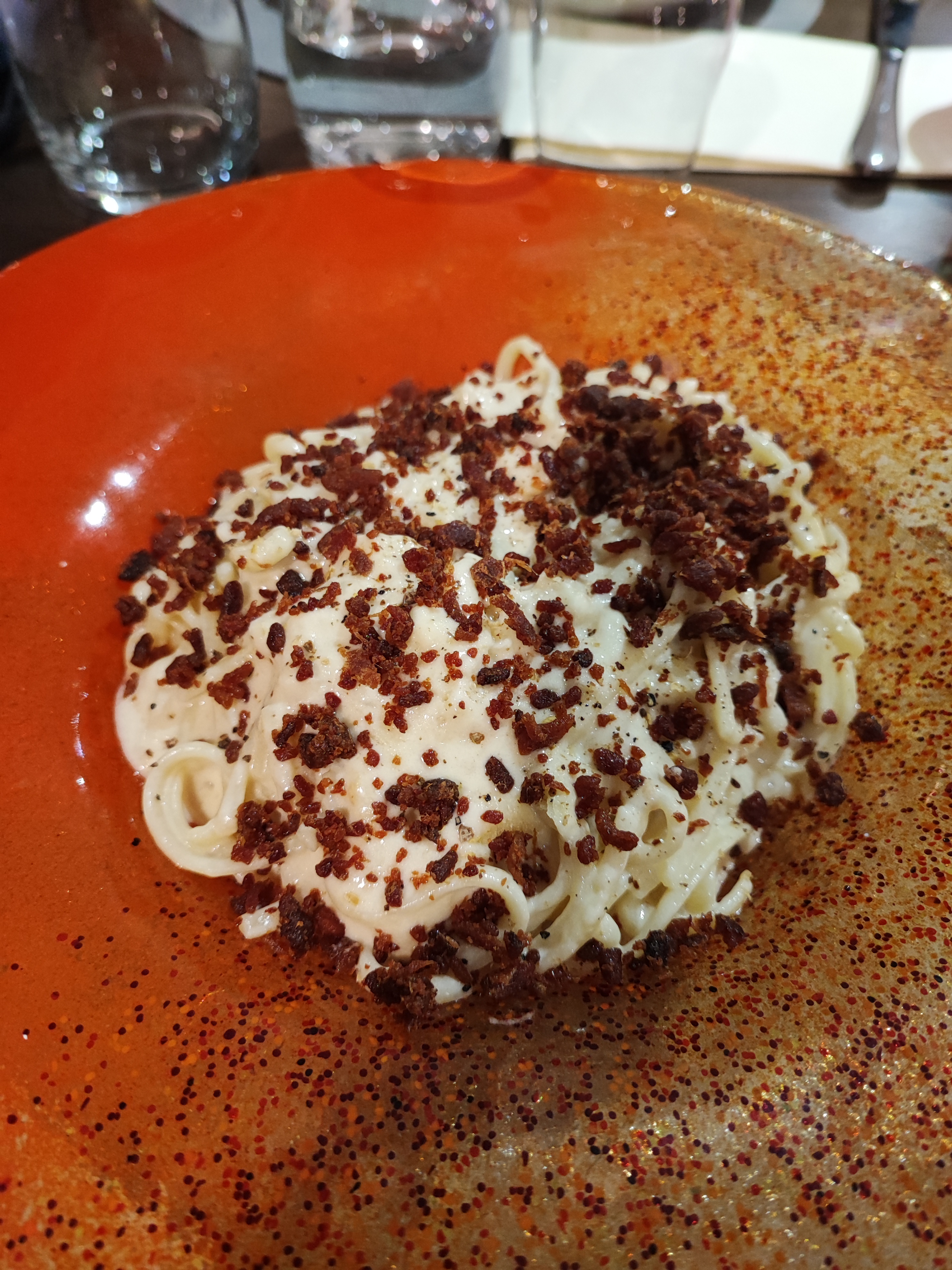 Le plat était incroyable, les serveurs chaleureux, l'attente courte même pendant le rush du midi, vraiment rien à redire (je conseille fortement les linguines au parmesan flambé au cognac)