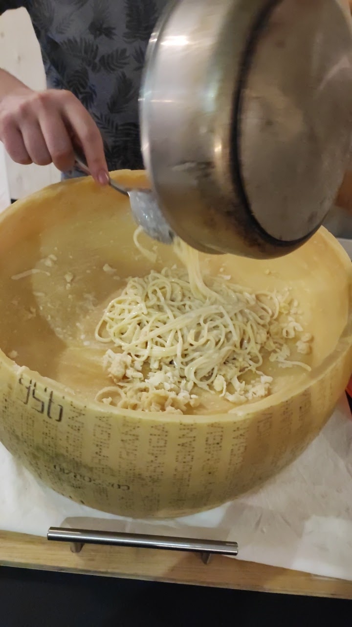 Accueil très sympathique, n'hésitez pas à craquer pour les linguine préparées dans la meule de parmesan devant vous.