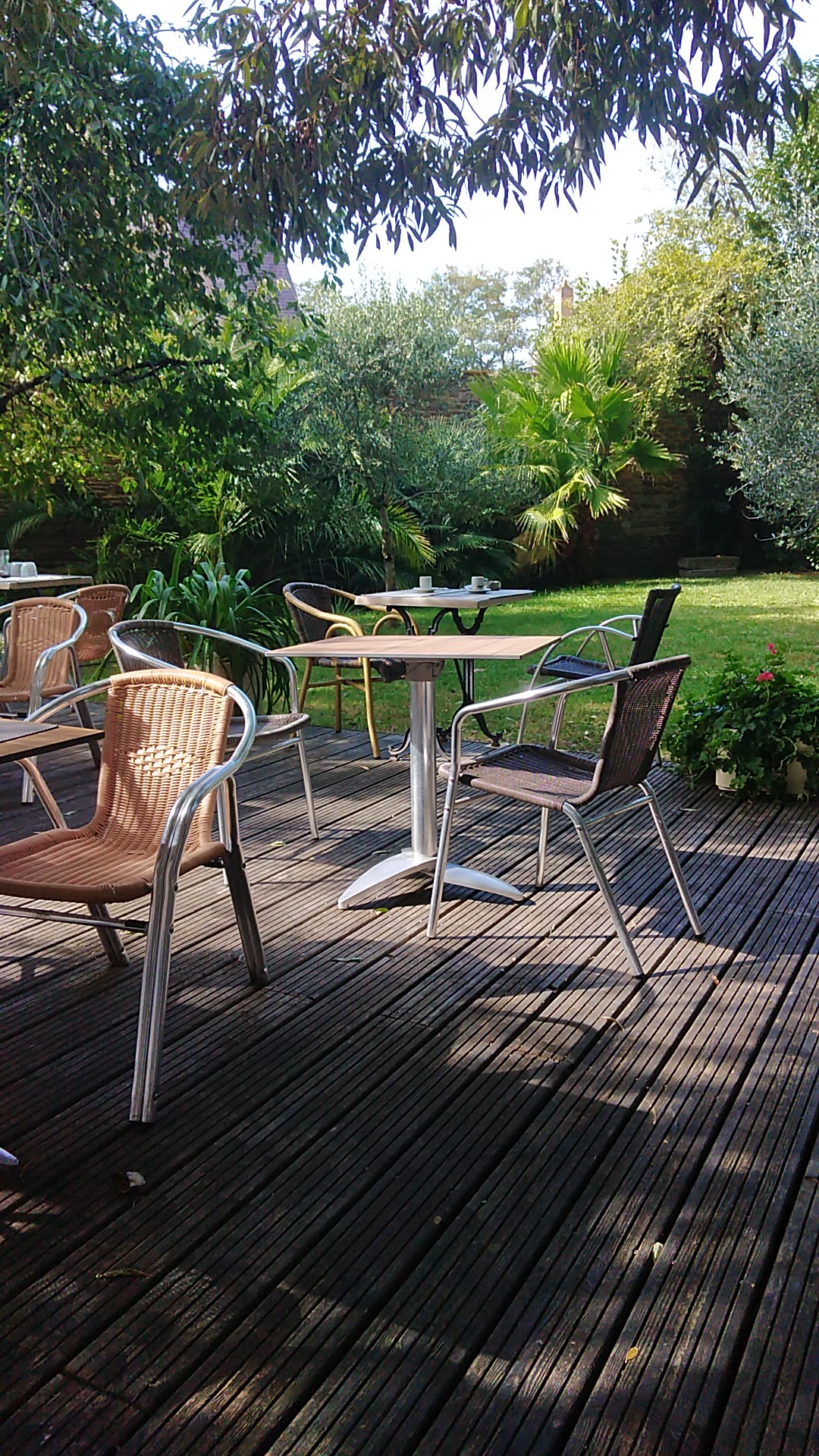 Une terrasse dans un jardin très agréable. Une cuisine excellente.