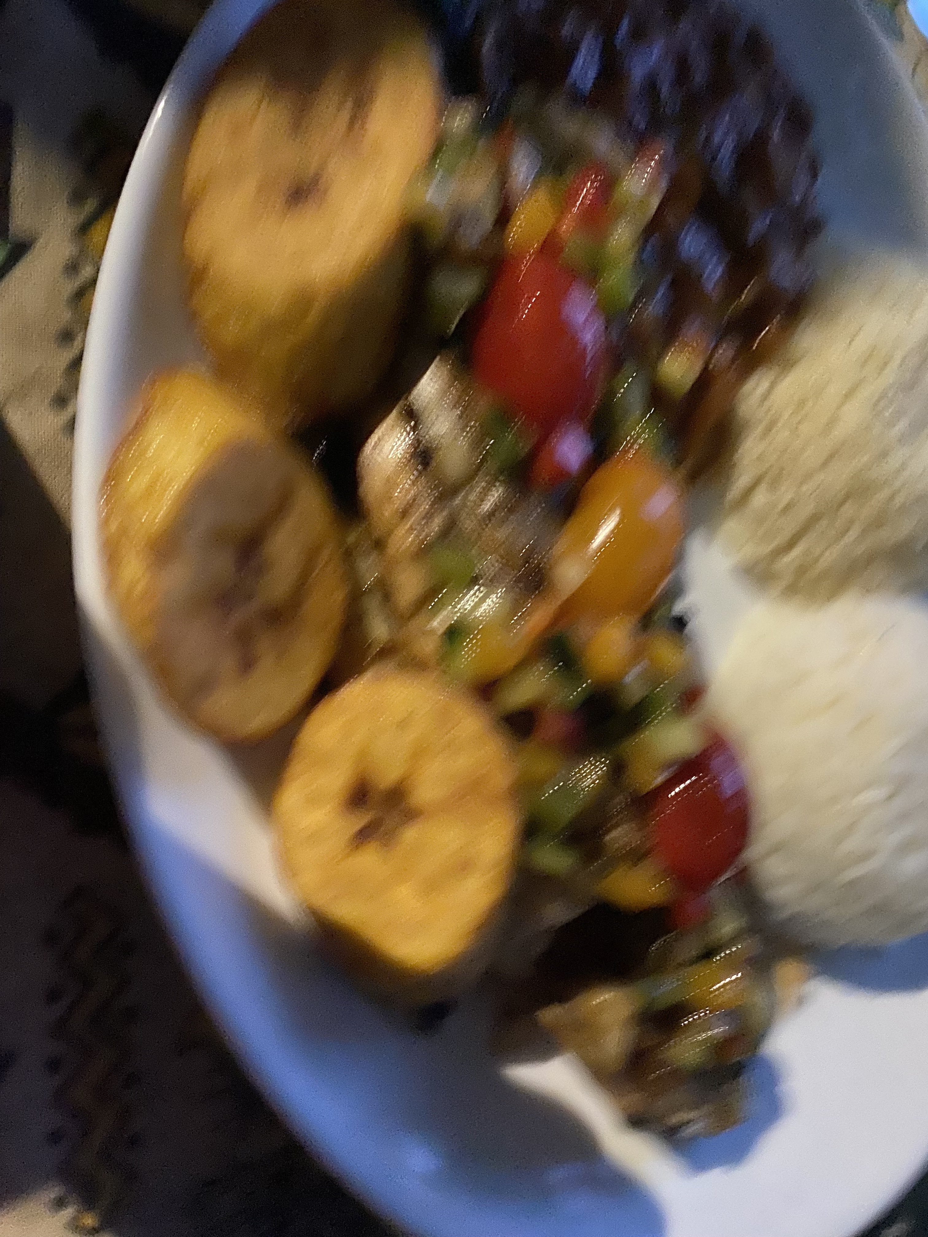 Nous avons aimé tout ce qui était dans l’assiette Surtout que le prix est correct : 25 euros pour entrée plat dessert Accras de légumes et de morue pour l’entrée (4 pièces à chaque fois) qui étaient bien croustillants, yassa de poulet braisé (poulet fermier) avec riz et banane plantain, pain perdu aux saveurs d’écorce d’orange et tarte tatin ananas Un bon plan pour un bon repas