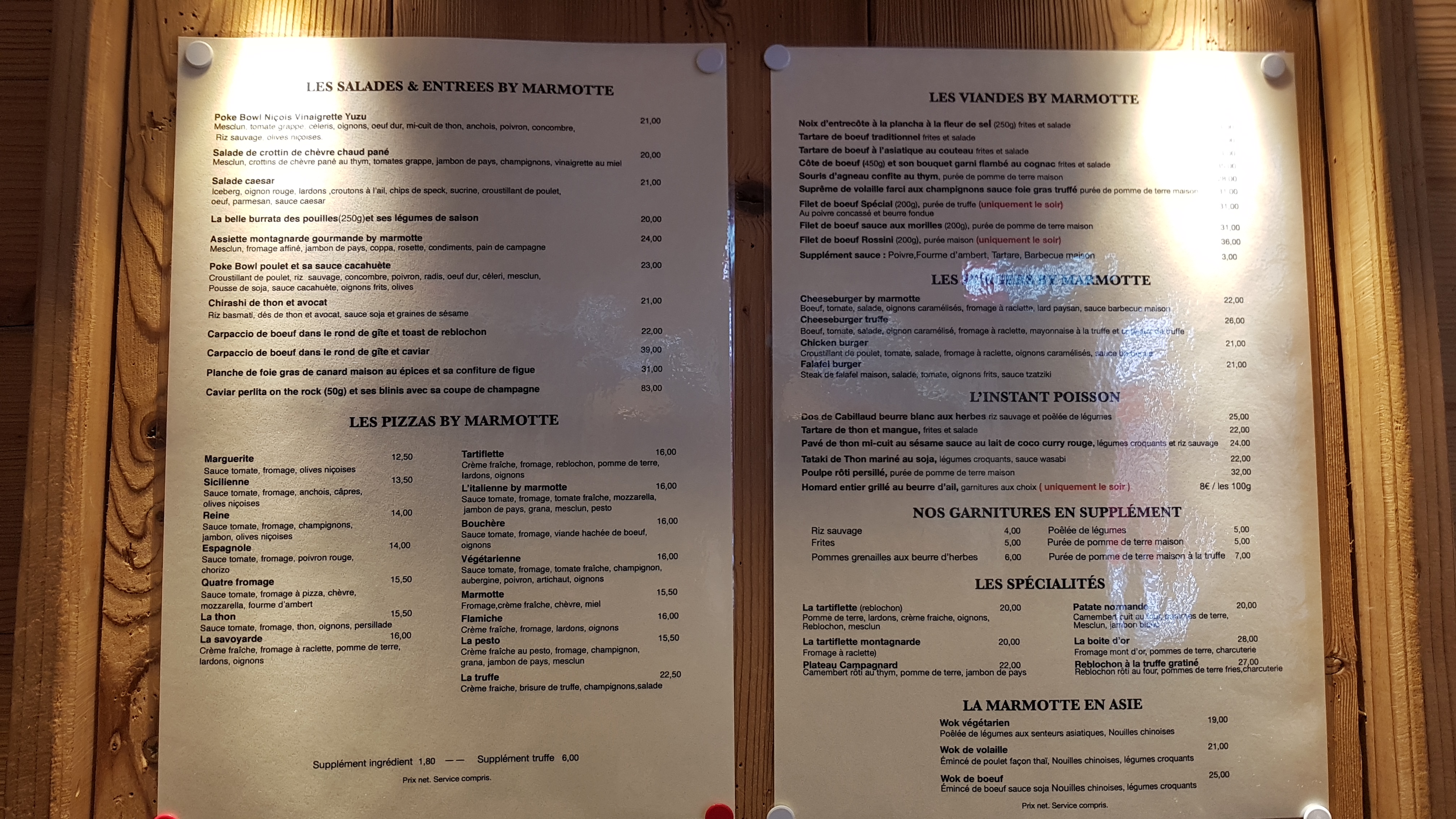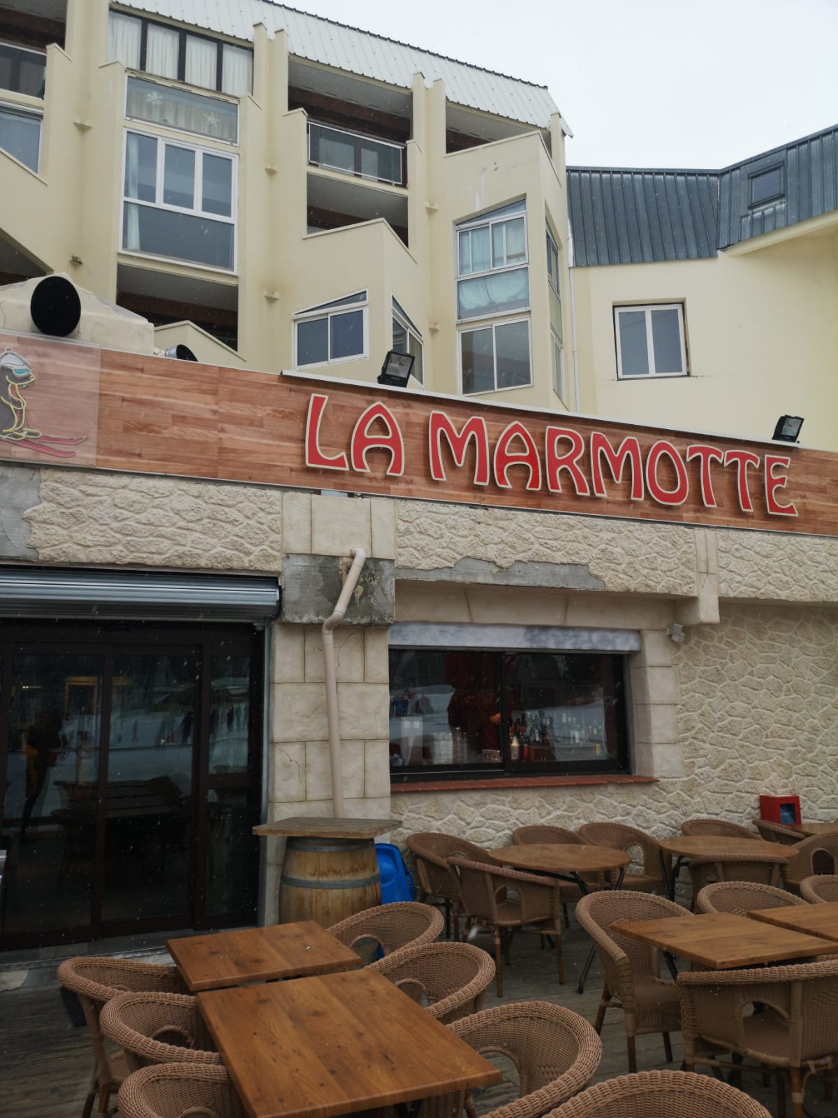 Nous mangeons chaque année à La Marmotte: l'atmosphere est bonne. Nous ne sommes pas déçus, le service est bon et rapidité normale à chaque fois. Nous y retournerons certainement même si les tarifs sont assez hauts mais c'est la neige!
