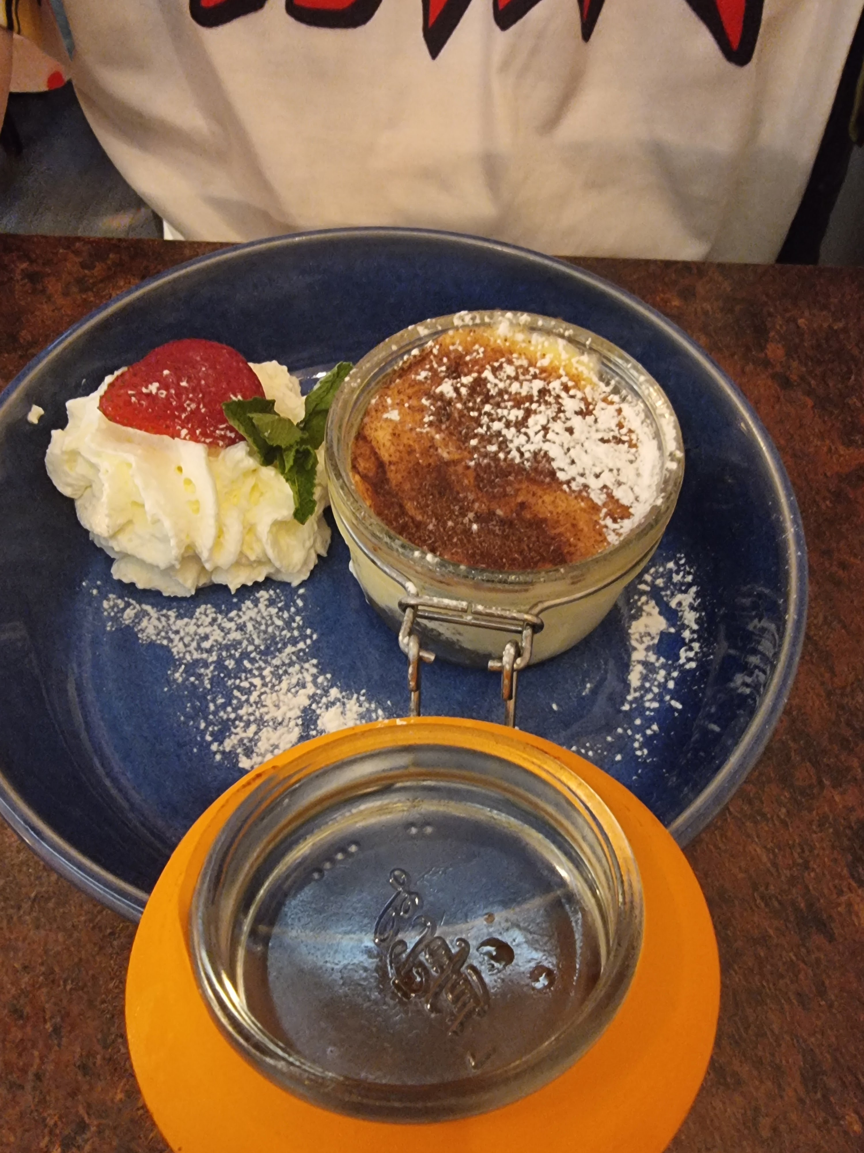 Repas rapide et bien servi. Une flam plutôt bonne, une bouchée à la reine bien généreuse. Tout ça à prix très raisonnable !