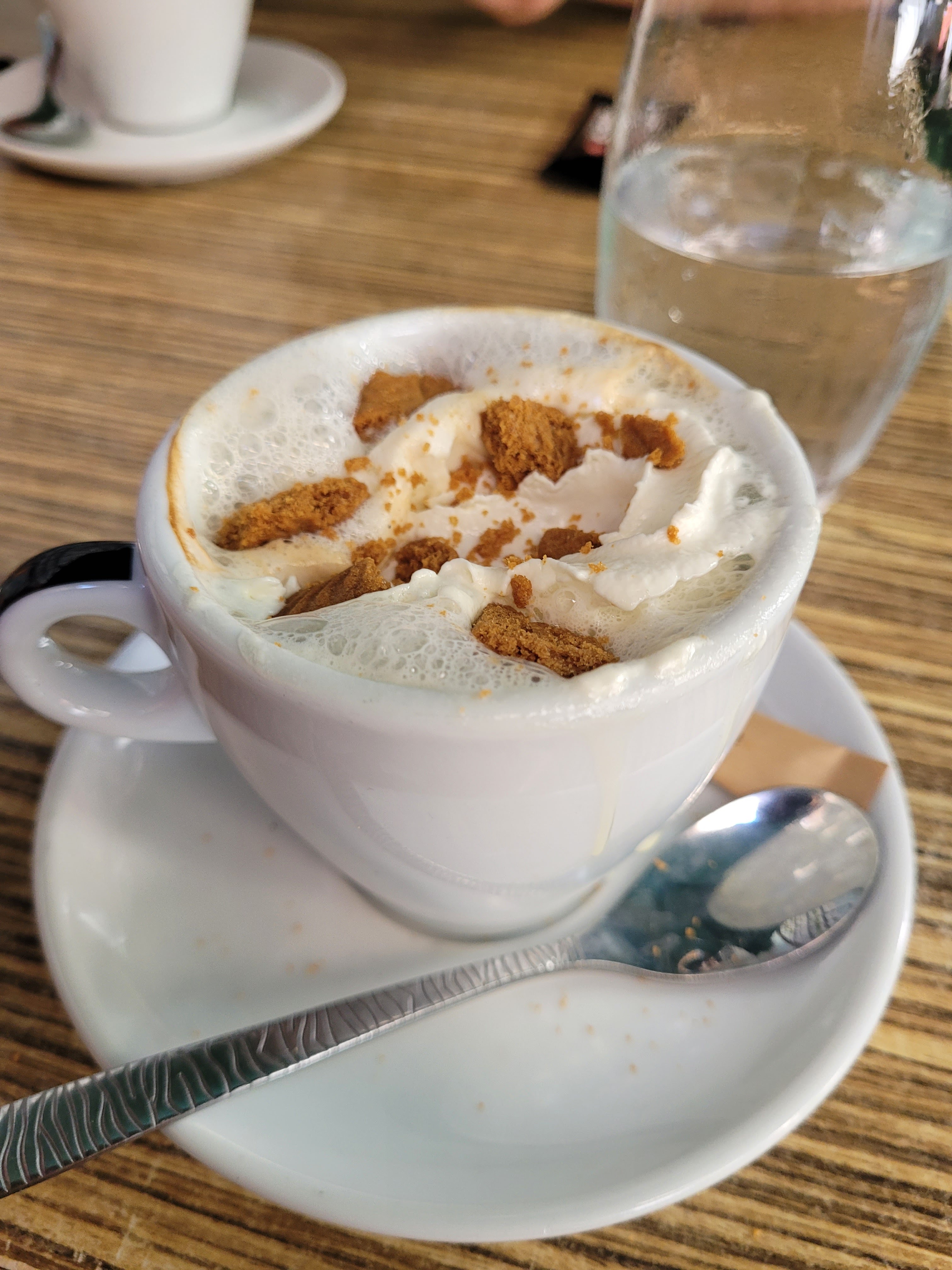 Expérience culinaire merveilleuse et décontractée! Personnel très gentil et sympathique! Commandez un cappuccino à la fin du repas avec du pain d'épice émietté dessus, c'était délicieux et à essayer absolument ! J'aurais aimé le prendre en photo aussi ! Mise à jour : j'ai dû y retourner le lendemain pour en obtenir un autre. Assurez-vous de demander que le crumble aux biscuits soit ajouté, cela ajoute vraiment un bon goût ! 😊