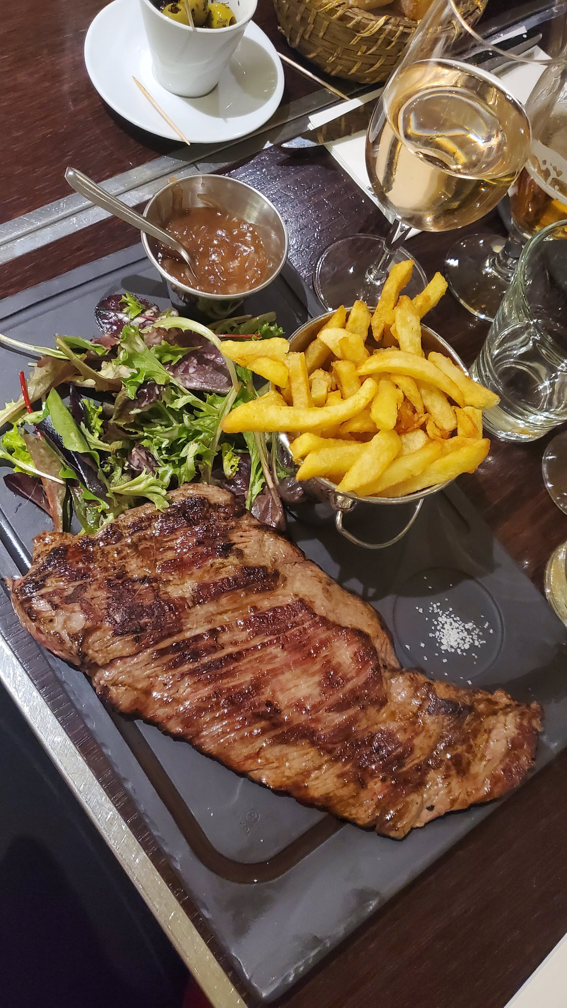 Super repas, j'ai pris la bavette qui était délicieuse, tendre et goûteuse, ma petite de 6 ans s'est régalée avec le steack frite, la planche de fromage frais au top pour ma femme. Je recommande et le prix n'est pas très élevé pour l'emplacement.
