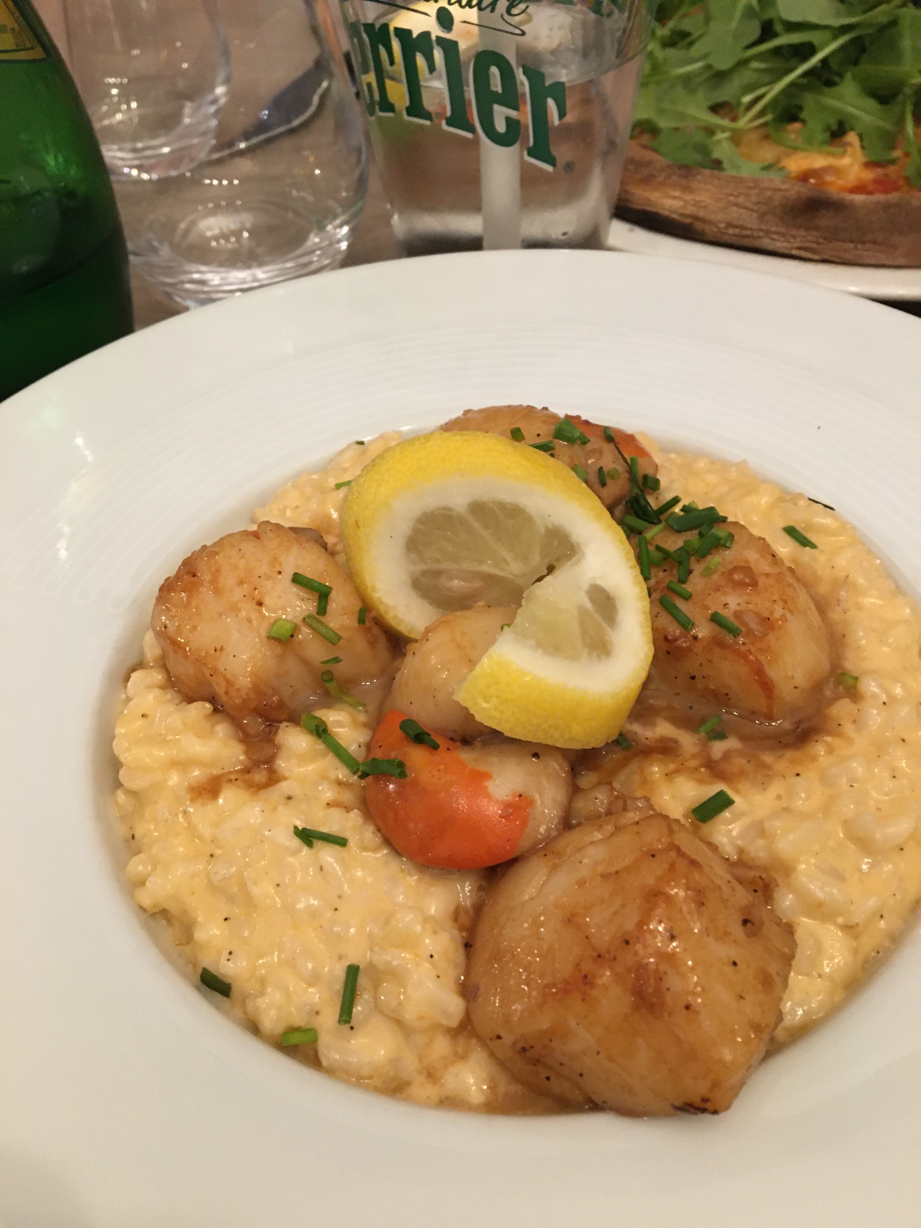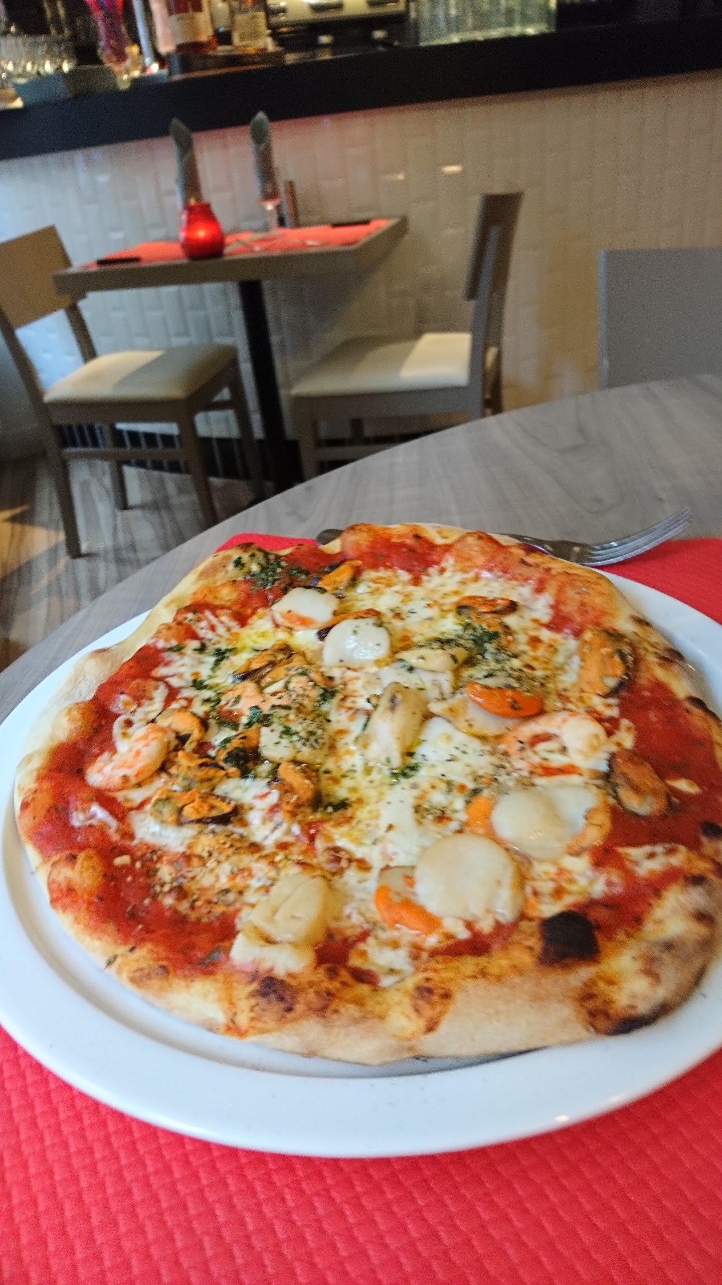 Bondé un vendredi soir, service un peu long pour une pizzeria. J’ai pris la cassolette de St Jacques qui aurait été parfaite sans les grains de sable… Nous étions en haut dans la salle droite où il faisait extrêmement chaud.