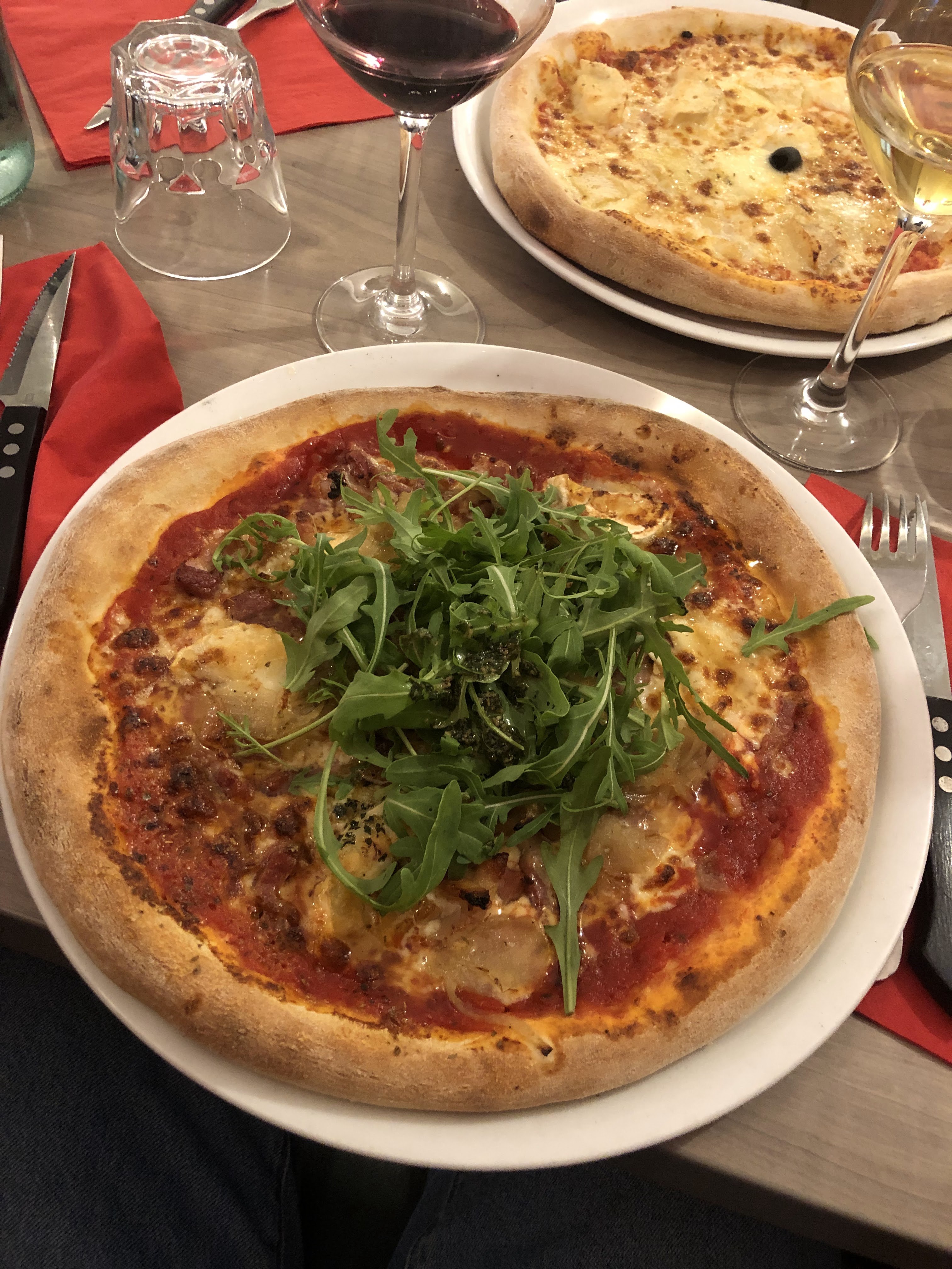 Déjeuner à deux un samedi midi. Le verre à vin n’était pas propre et les deux pizzas commandées manquaient malheureusement un peu de goût. Une table près des toilettes avec de nombreux clients visiblement incapables de refermer une porte correctement. Vraisemblablement un problème d’éducation, de savoir-vivre ou peut-être tout simplement cognitifs ! A noter également un restaurant familial plutôt bruyant ! Néanmoins, un jeune serveur très sympathique.