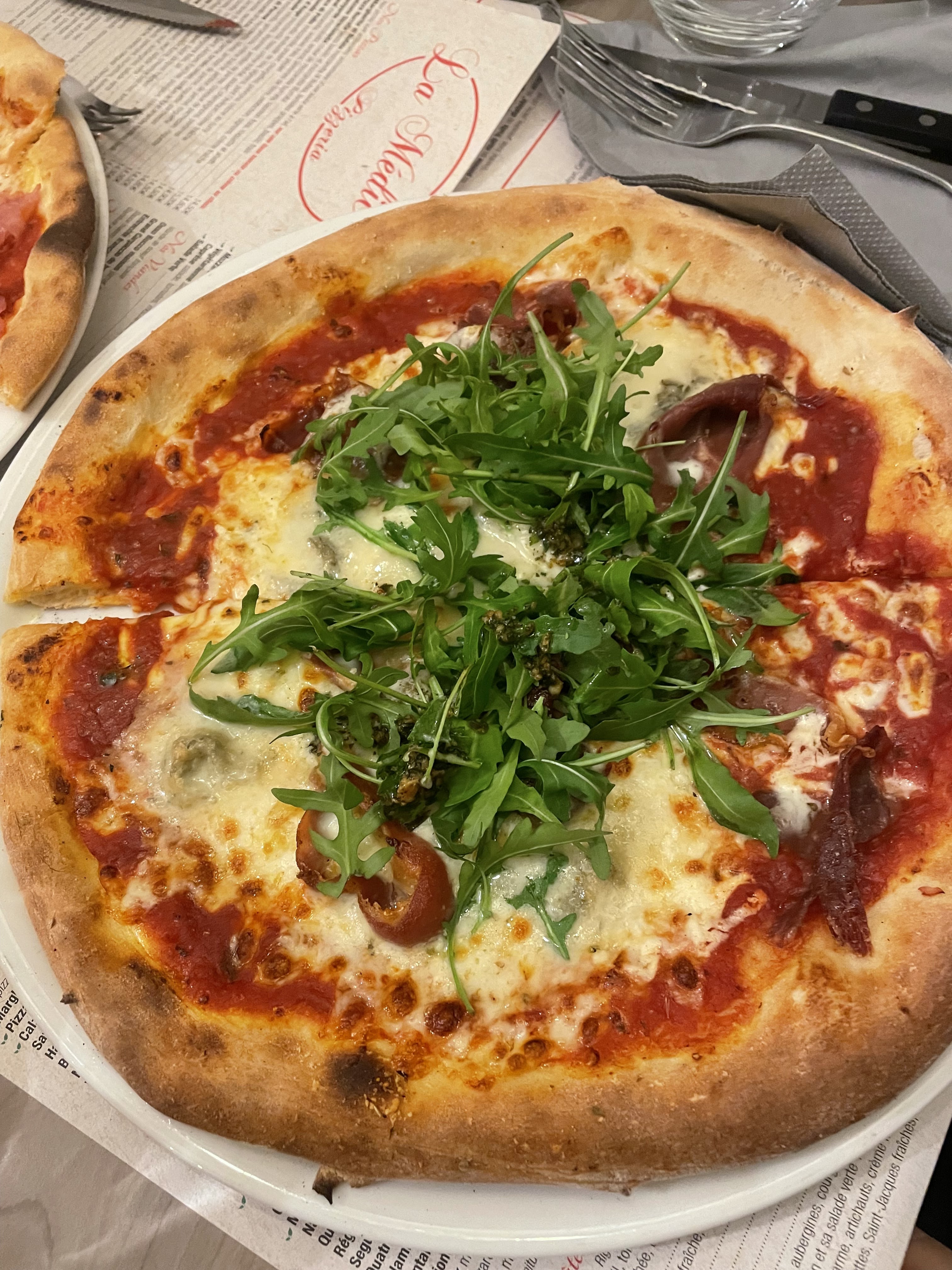Resto sympathique, large carte. Problème de cuisson sur une pizza. Service très sympathique, mais beaucoup de bruit