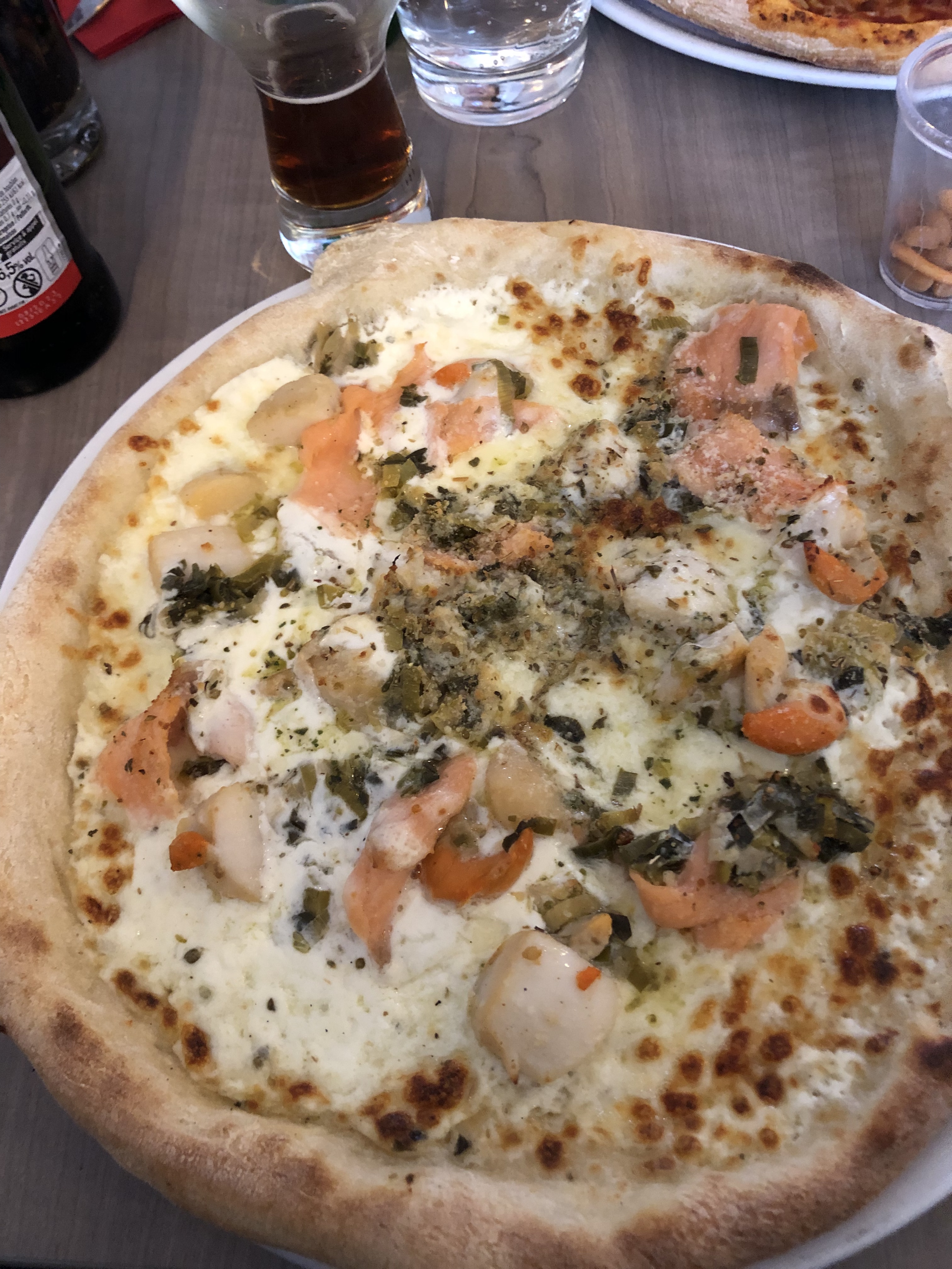 J ai 60 ans et j aime prendre une pizza saumon lorsque je viens manger dans une pizzeria. Mais là j ai mangé la meilleure pizza au saumon avec petite crevettes et sauce épicée avec huile d olive. L extase. MMermercéprofessionnelle et l