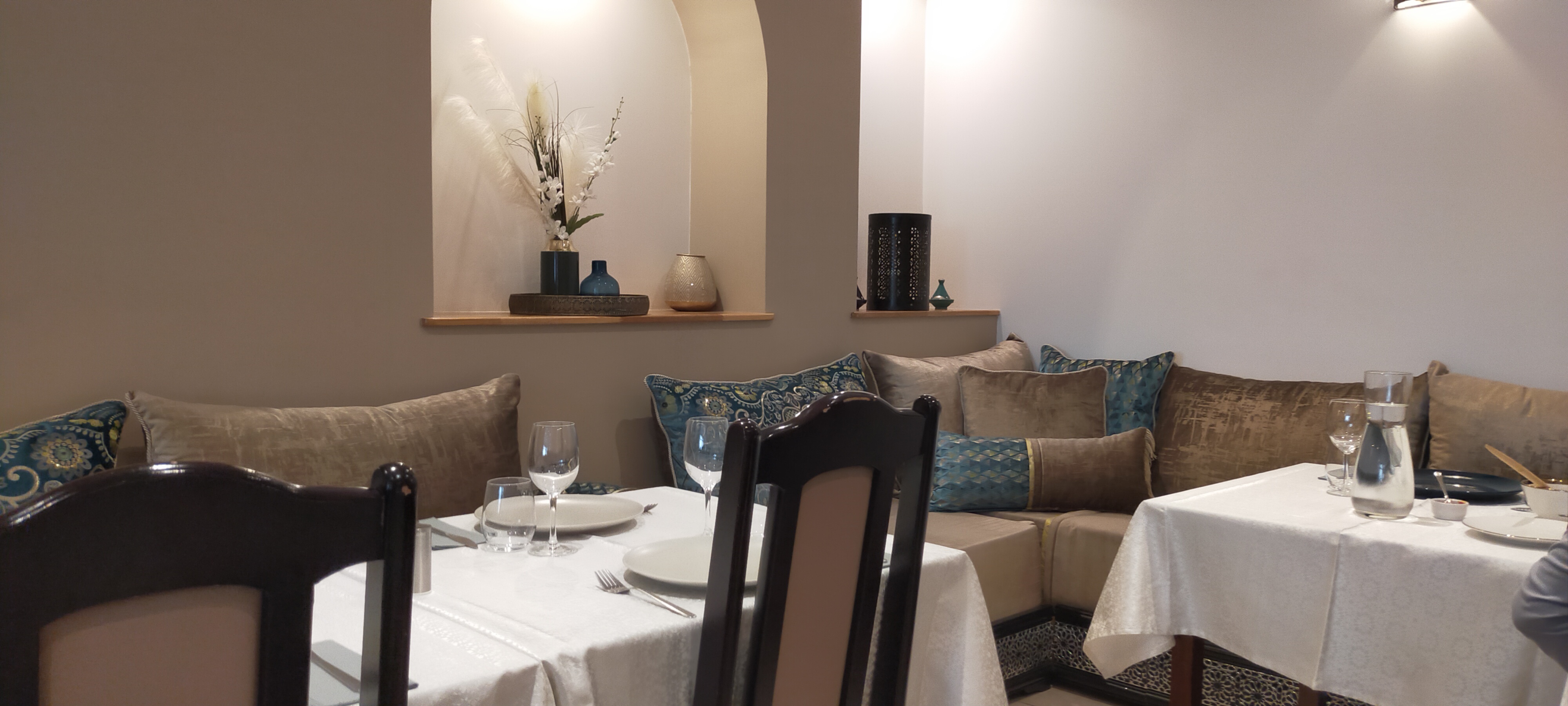 Très belle deco orientale sobre. Banquettes tout le long des murs. Ambiance calme. Plats très bons. Super boulettes kefta. Propriétaires très sympa