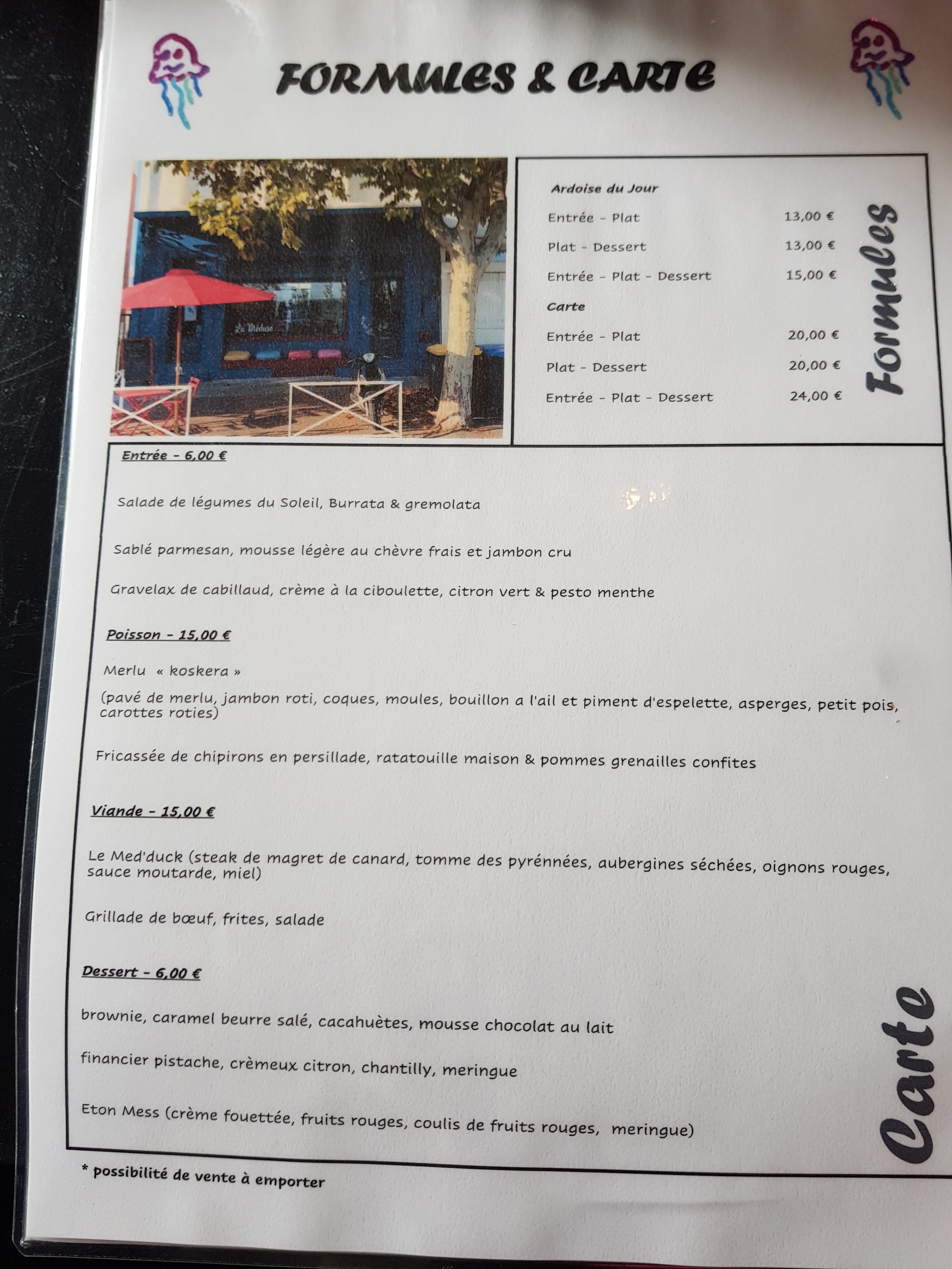 Restaurant très agréable. Une cuisine à base de produits frais, c est bon et bien cuisiné. Tarifs très abordables. Il est préférable de réserver si on veut être sûr de déjeuner à la Méduse