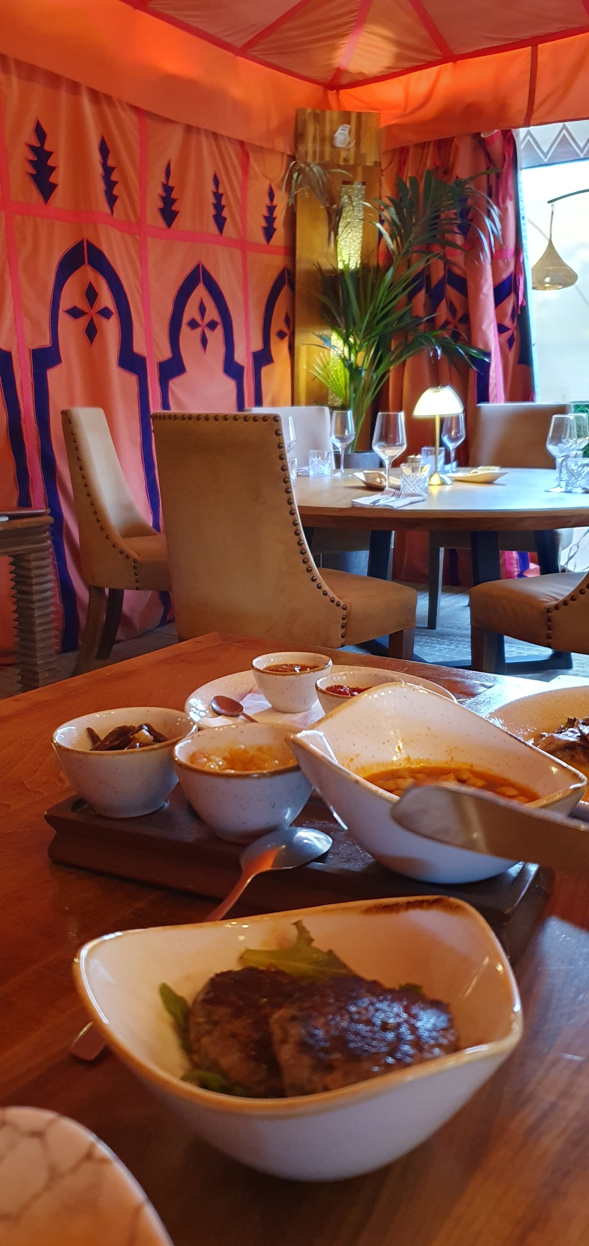 J'y suis allée dîner avec une copine. Magnifique endroit digne des milles et une nuits. Les tentes extérieures sont magnifiques et la déco également. Très bonne cuisine. Le service est très professionnel et chaleureux. N'hésitez pas à y aller en famille entre amis ou en couple c'est également un endroit très romantique selon la table où vous serez placé. À bientôt.