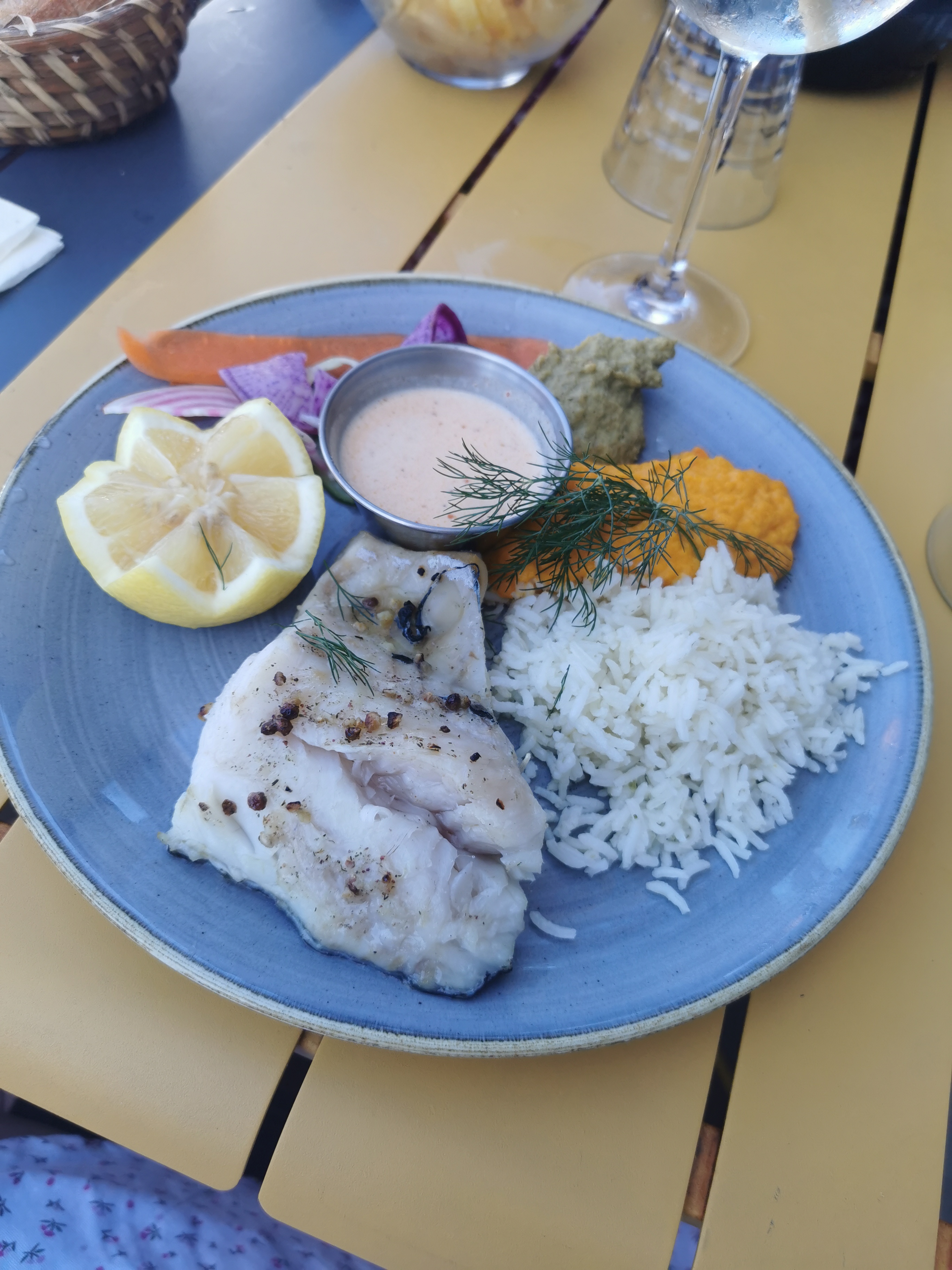 Terrasse en face de la mer service dynamique et plats bien préparés (poissons à la plancha)