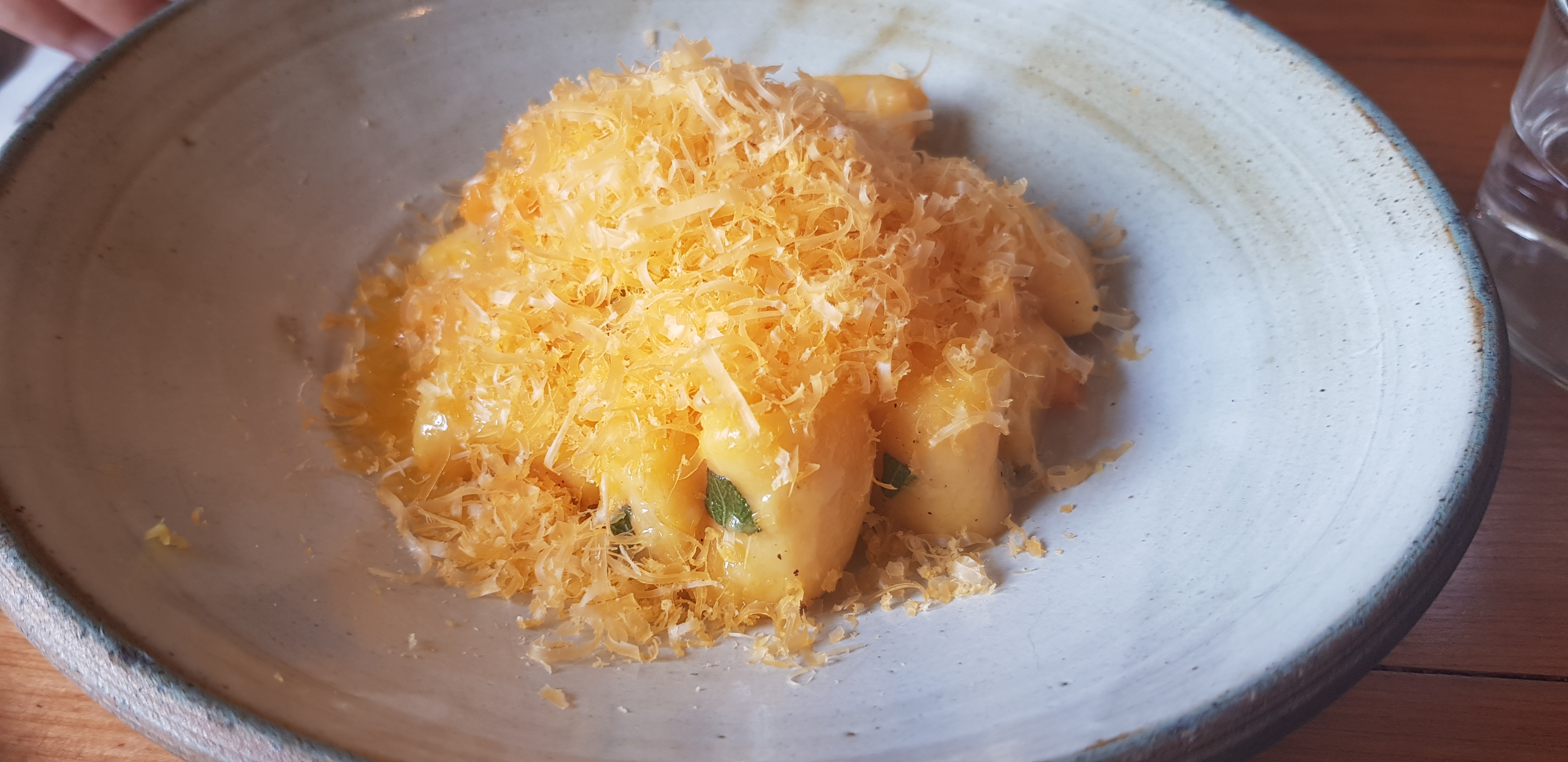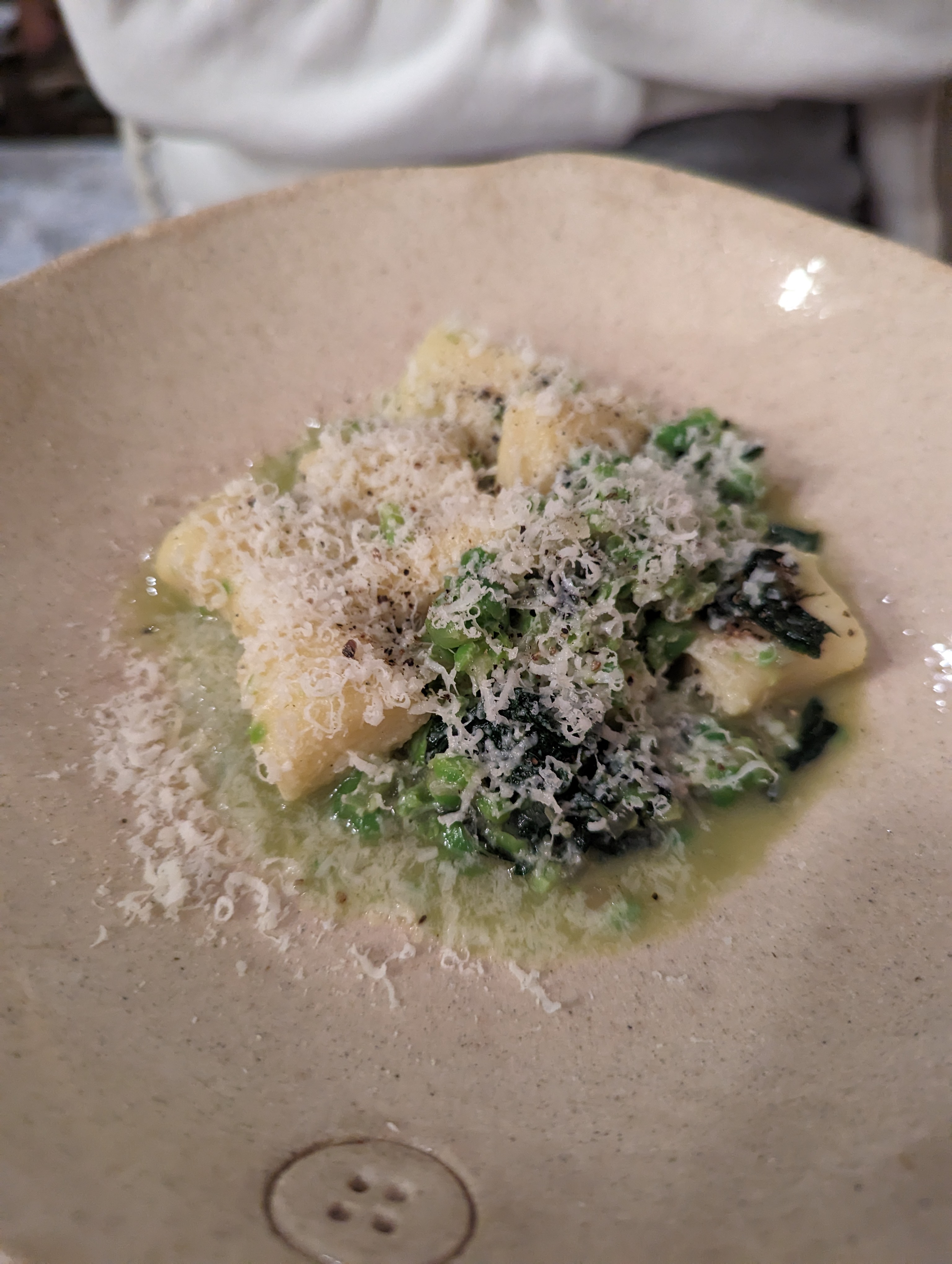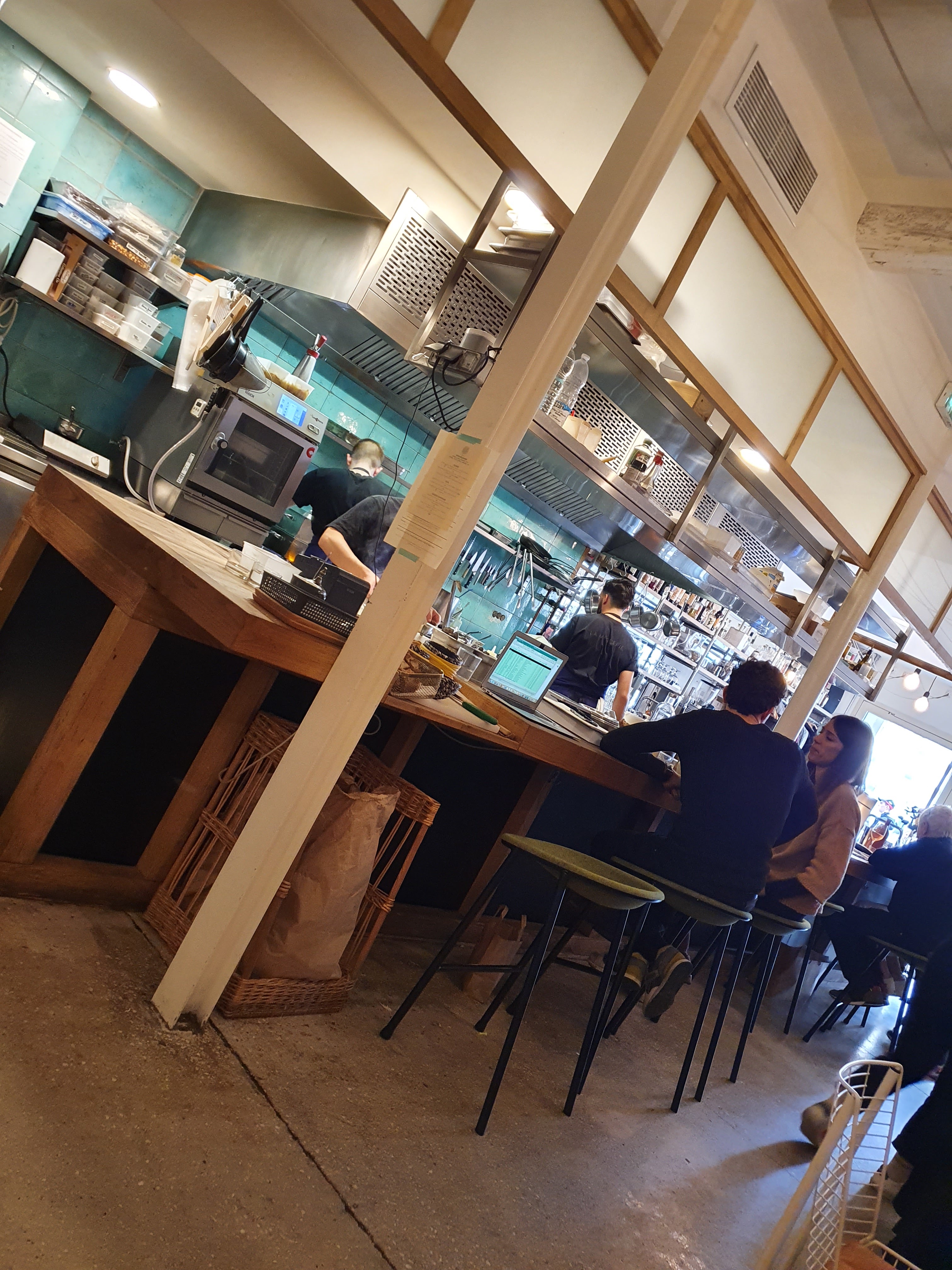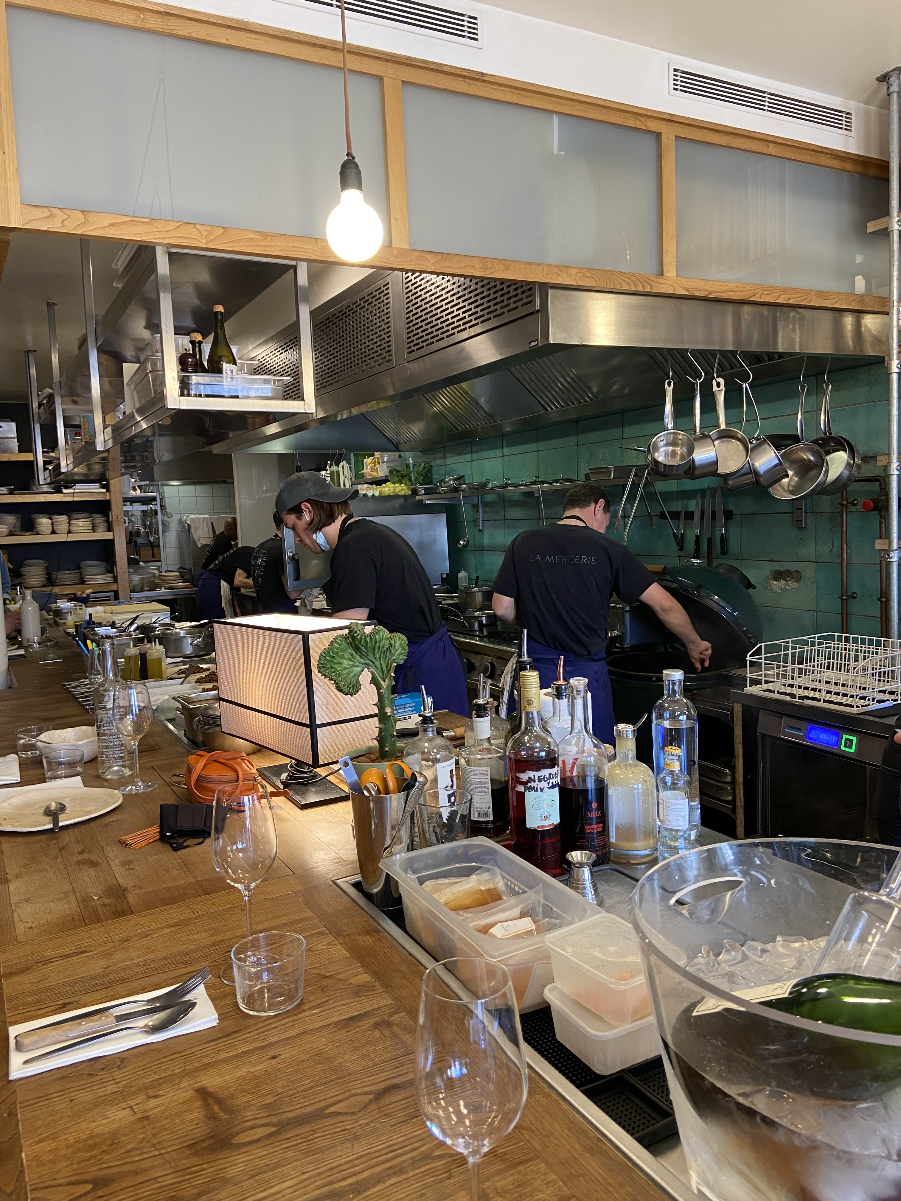 Lieu sympa, on avait réservé au comptoir. C’est agréable d’avoir la cuisine juste en face et de les observer faire les assiettes. Culinairement, c’était pas mal mais pas très surprenant. Assez déçue de l’entrée pastèque, qui n’avait pas bcp de goût mais l’autre entrée avec l’aubergine était réussie. De bons plats avec des gnocchis maison, et une belle cuisson sur le plat de viande, pas de grande surprise sur le dessert.