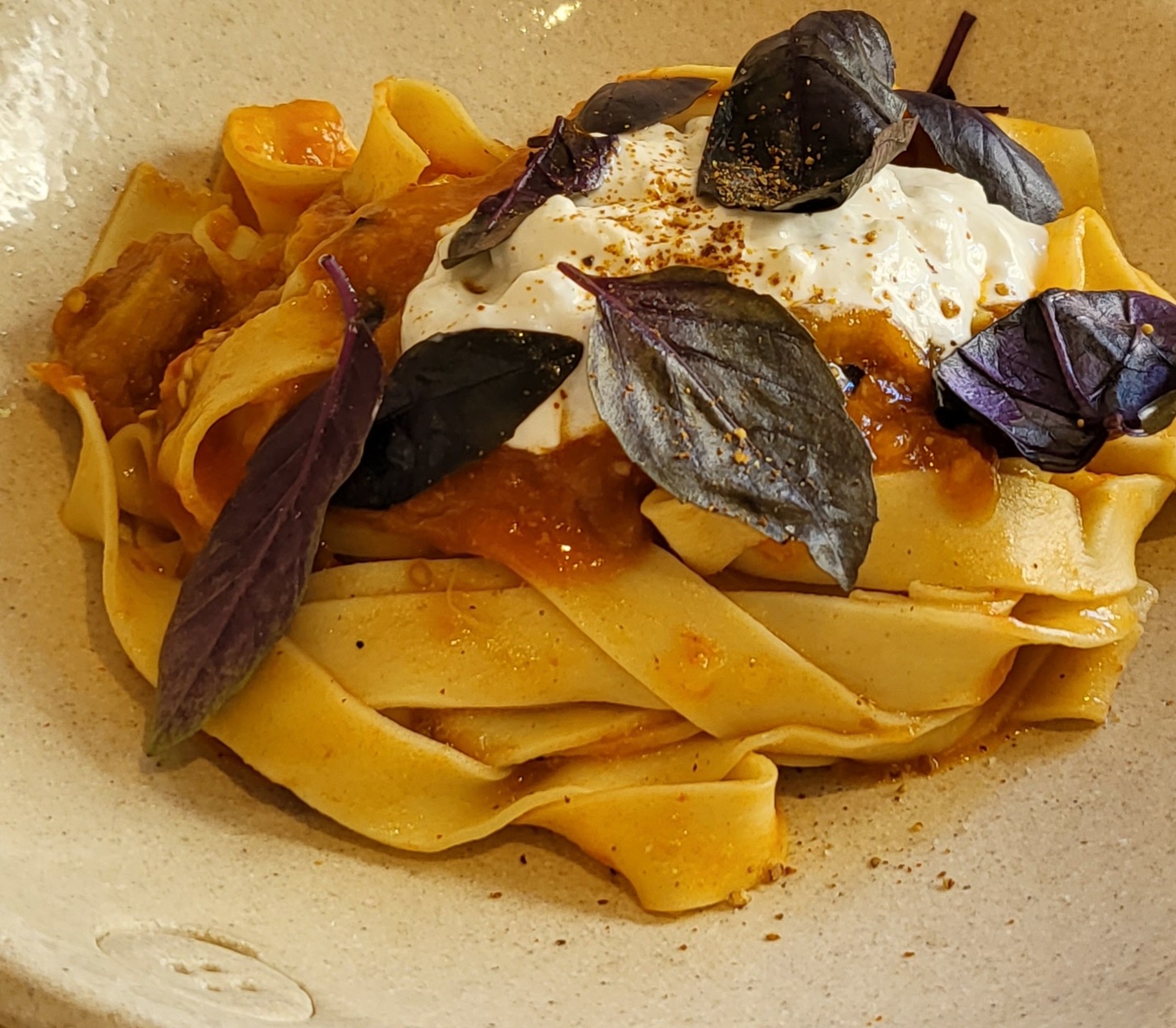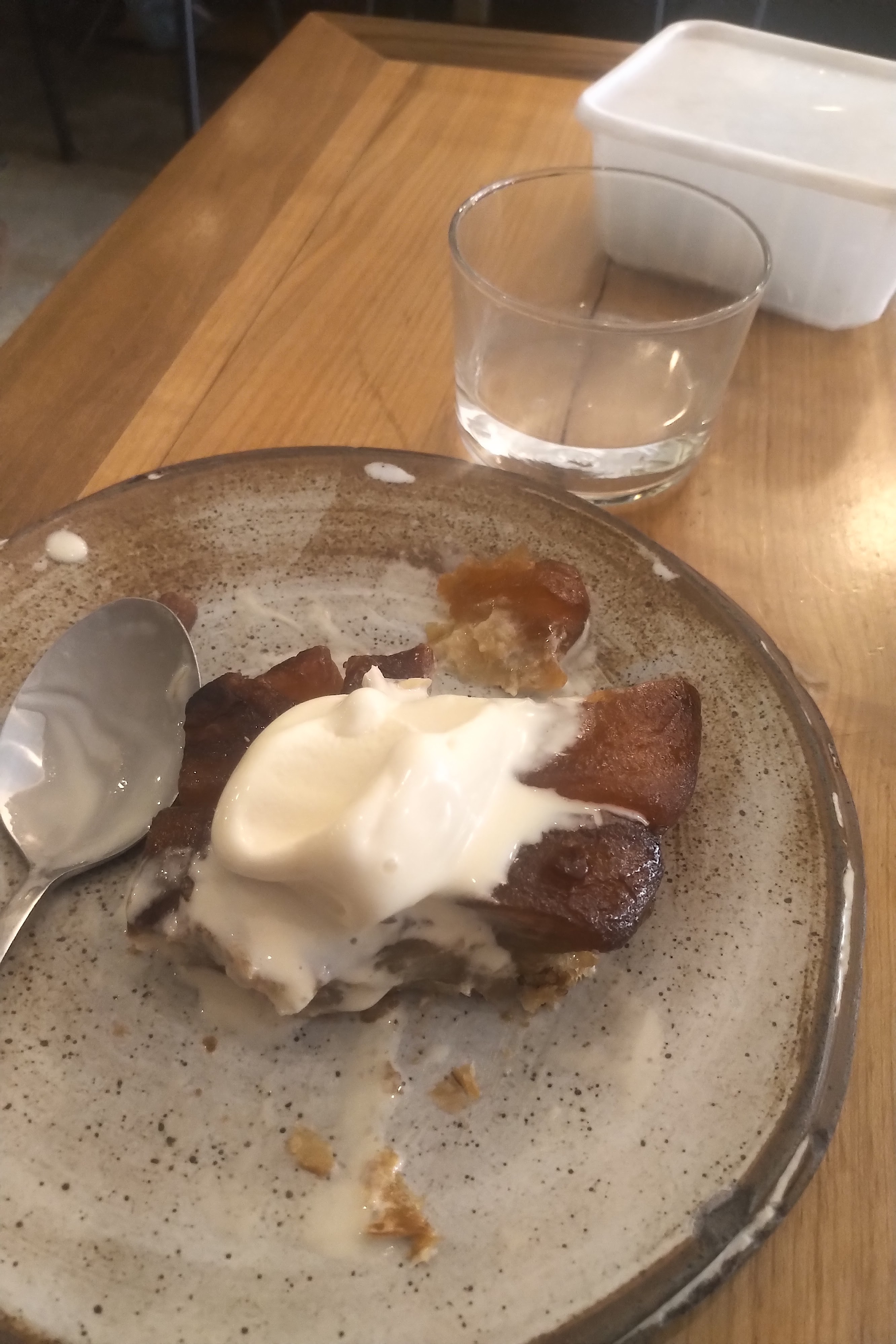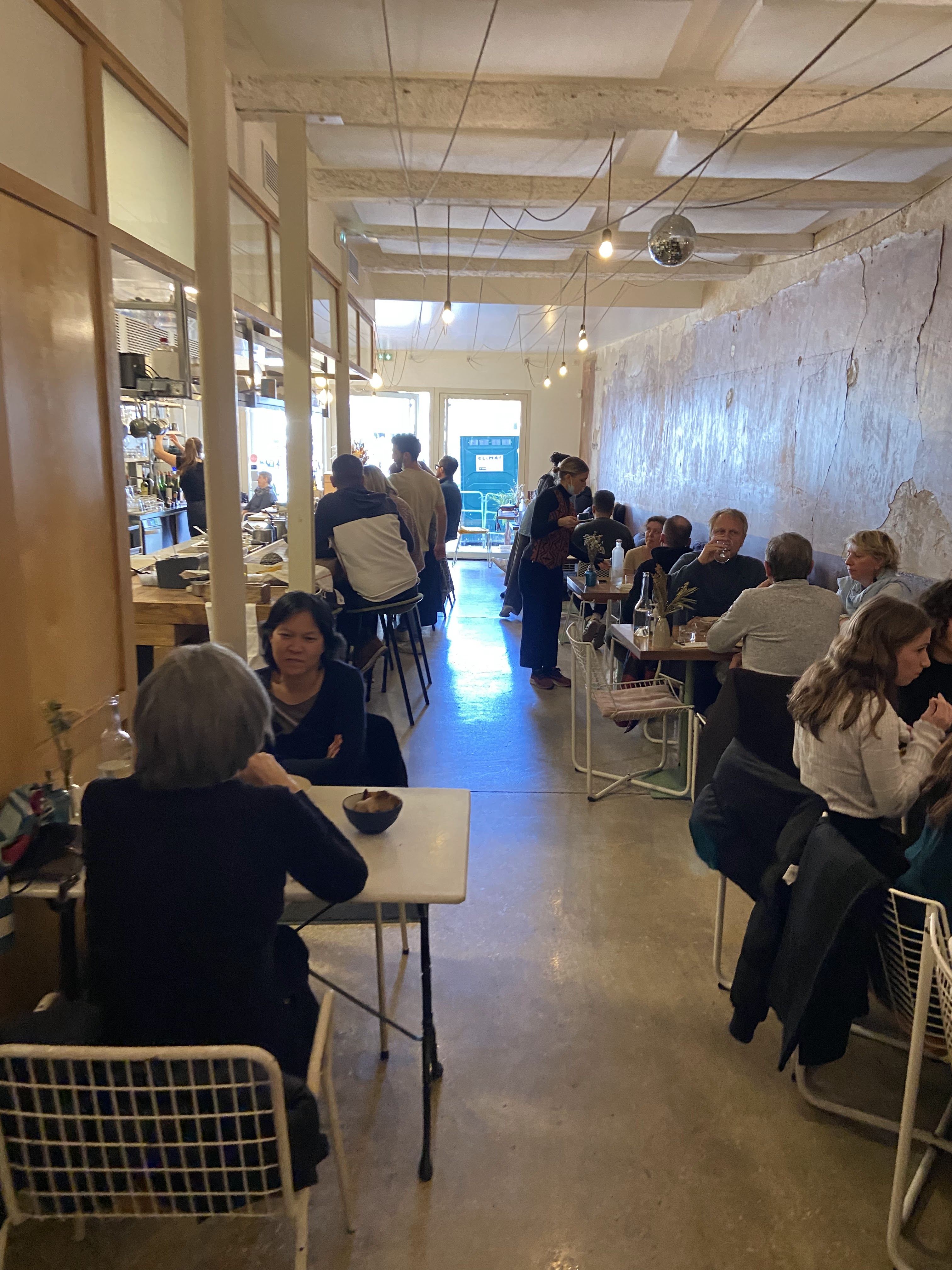 Venu pour le service du midi : pensez tout de même à réserver, de plus c’est assez plaisent de manger au bar devant le staff qu’en terrasse ! Le plat avec l’entrée, le plat et le dessert est autour de 30 euros ce qui est quand même très reasonable pour la qualité du service. J’ai mangé des tagliatelles fraîches aux sardines fraîches avec des mélanges d’herbes fraîches et pour le dessert une poire de sainte croix avec une glace à la cardamome. Excellent Le resto propose une carte de vin naturels exclusivement. Bref à tenter !