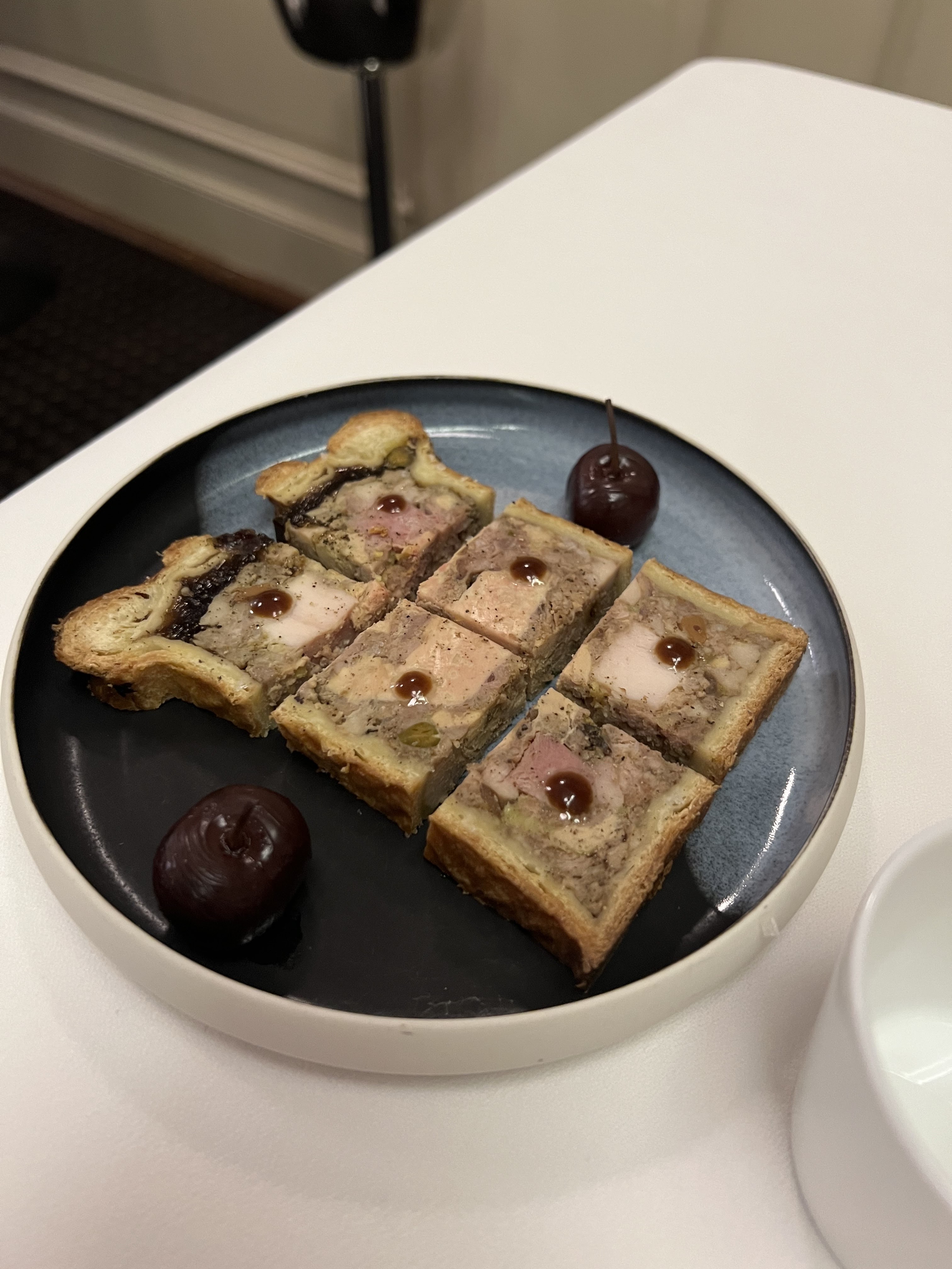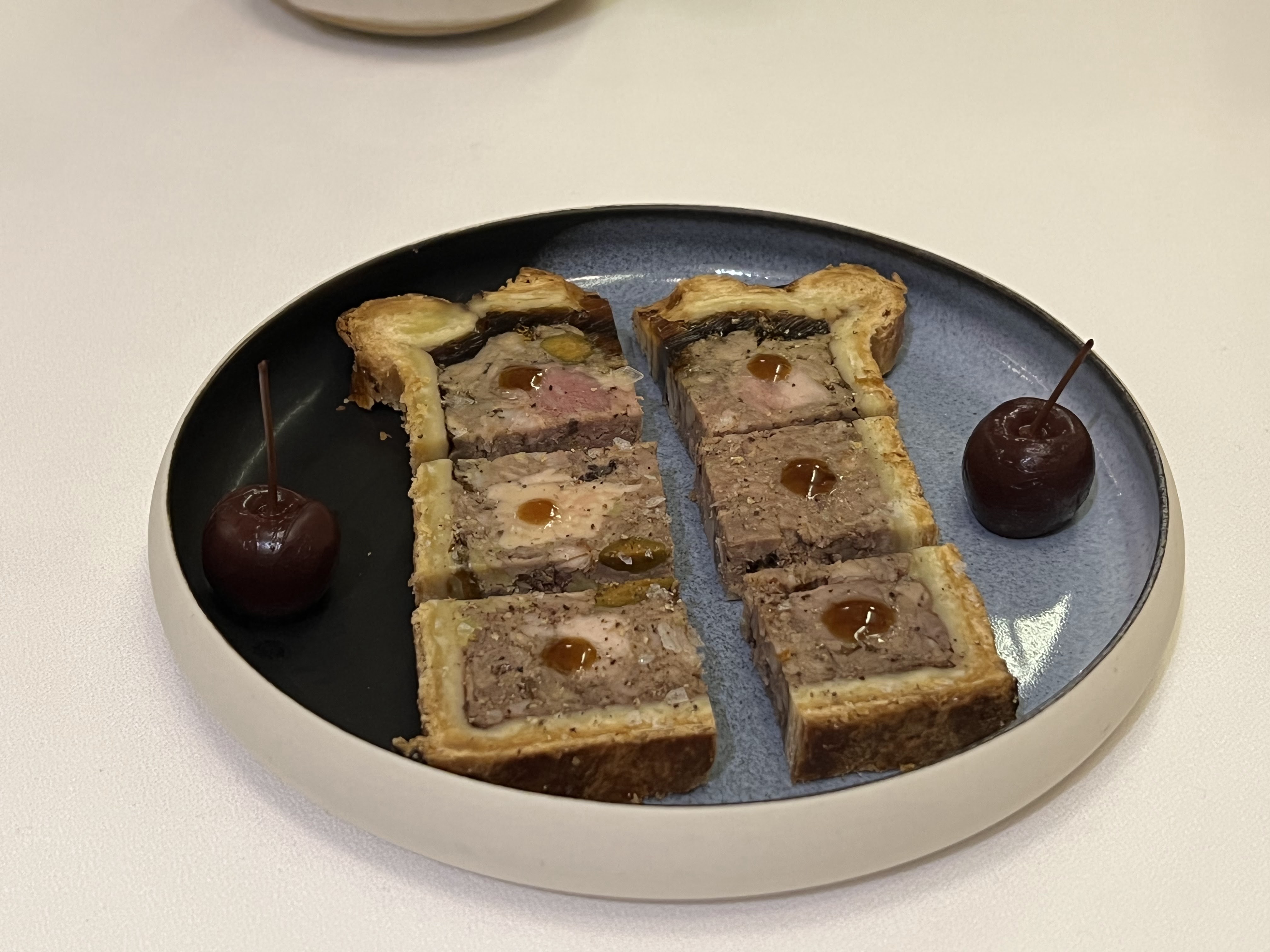 Un merveilleux endroit pour découvrir les racines de la cuisine lyonnaise. Vianney lui-même est venu rencontrer et discuter avec toutes les rafales à la fin de la séance de restauration que j'ai trouvée particulièrement accueillante et si amusante. Le pâté, servi gratuitement en amuse-bouche, constituait un excellent début de dîner. En écrivant cette critique en 2022 (mais en ayant mangé fin 2019), je me souviens encore à quel point la croûte était légère et feuilletée, combinée au poulet savoureux et au foie gras au beurre, avec la cerise et la confiture de cerises coupant la richesse.