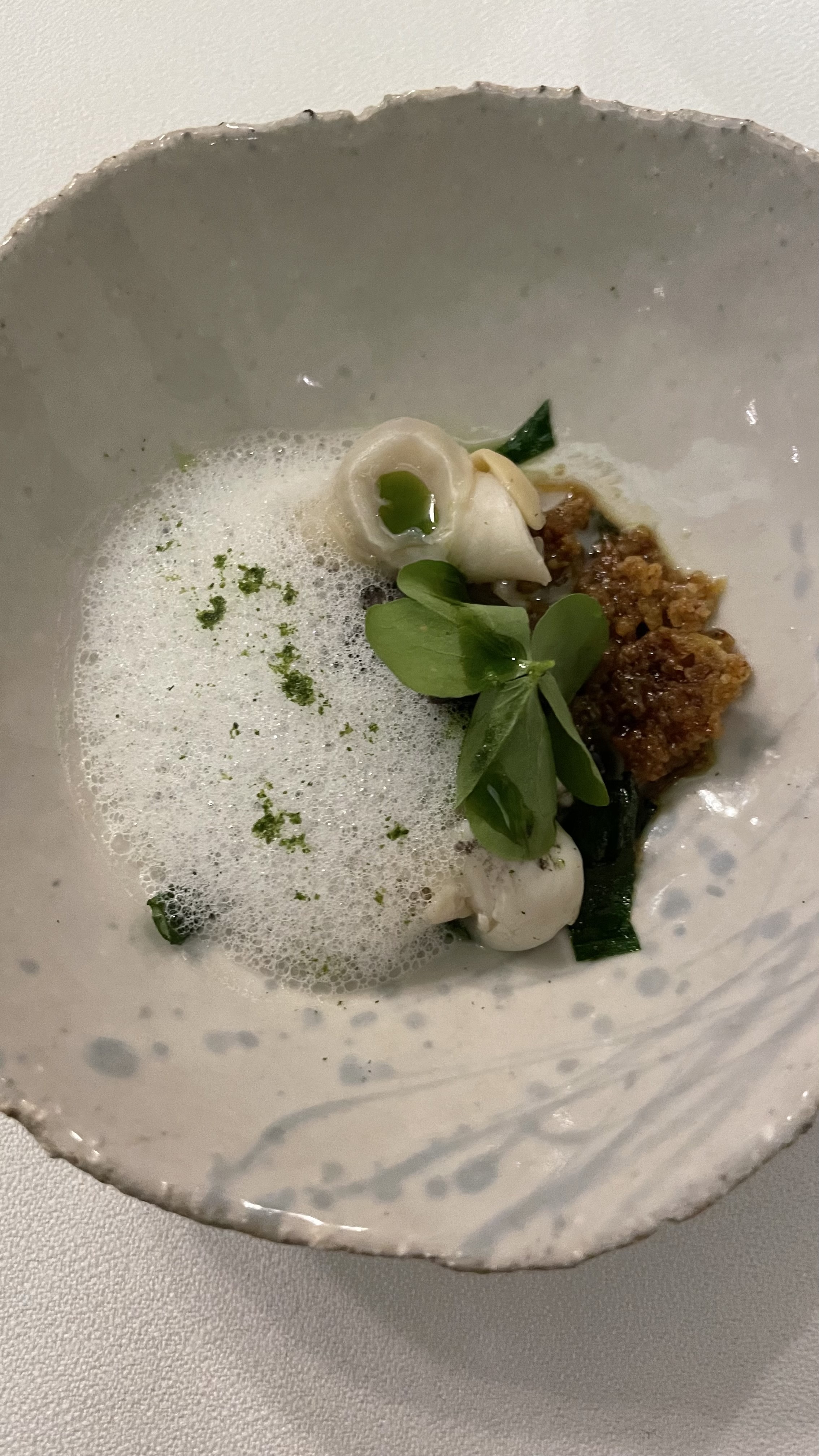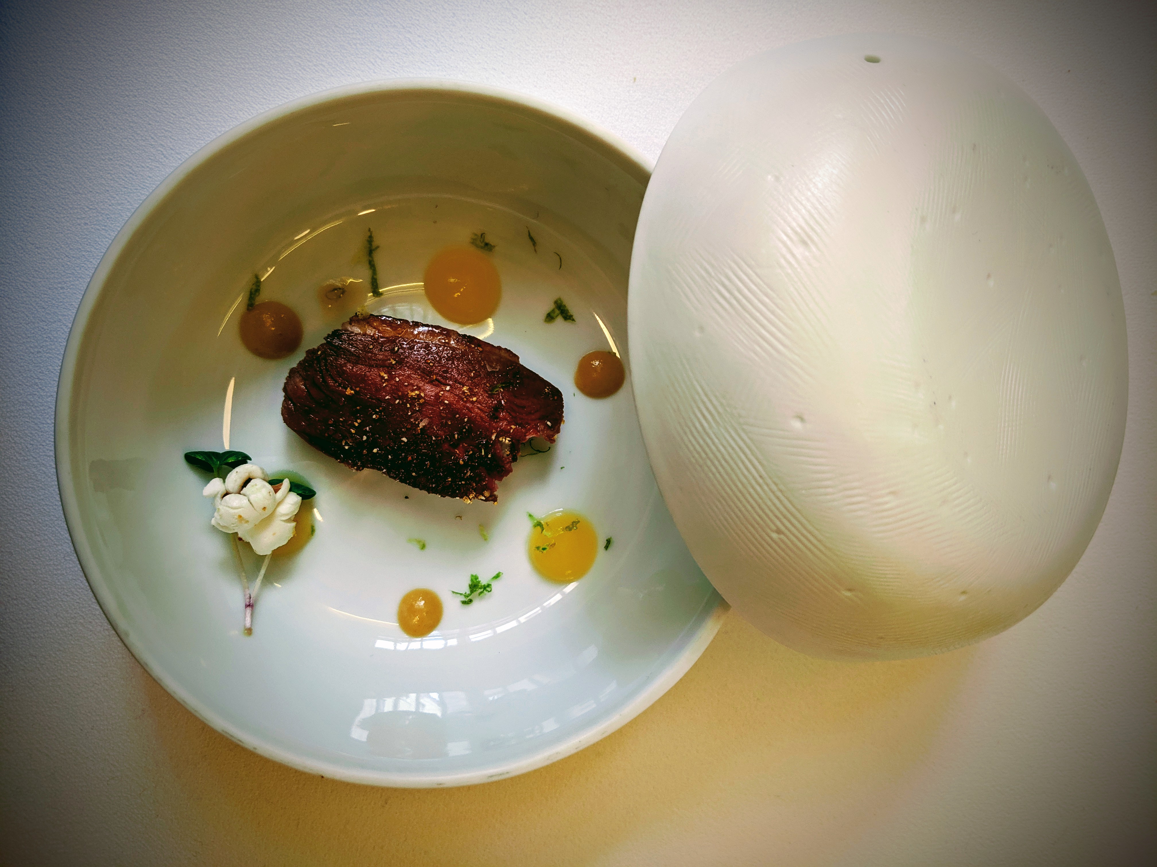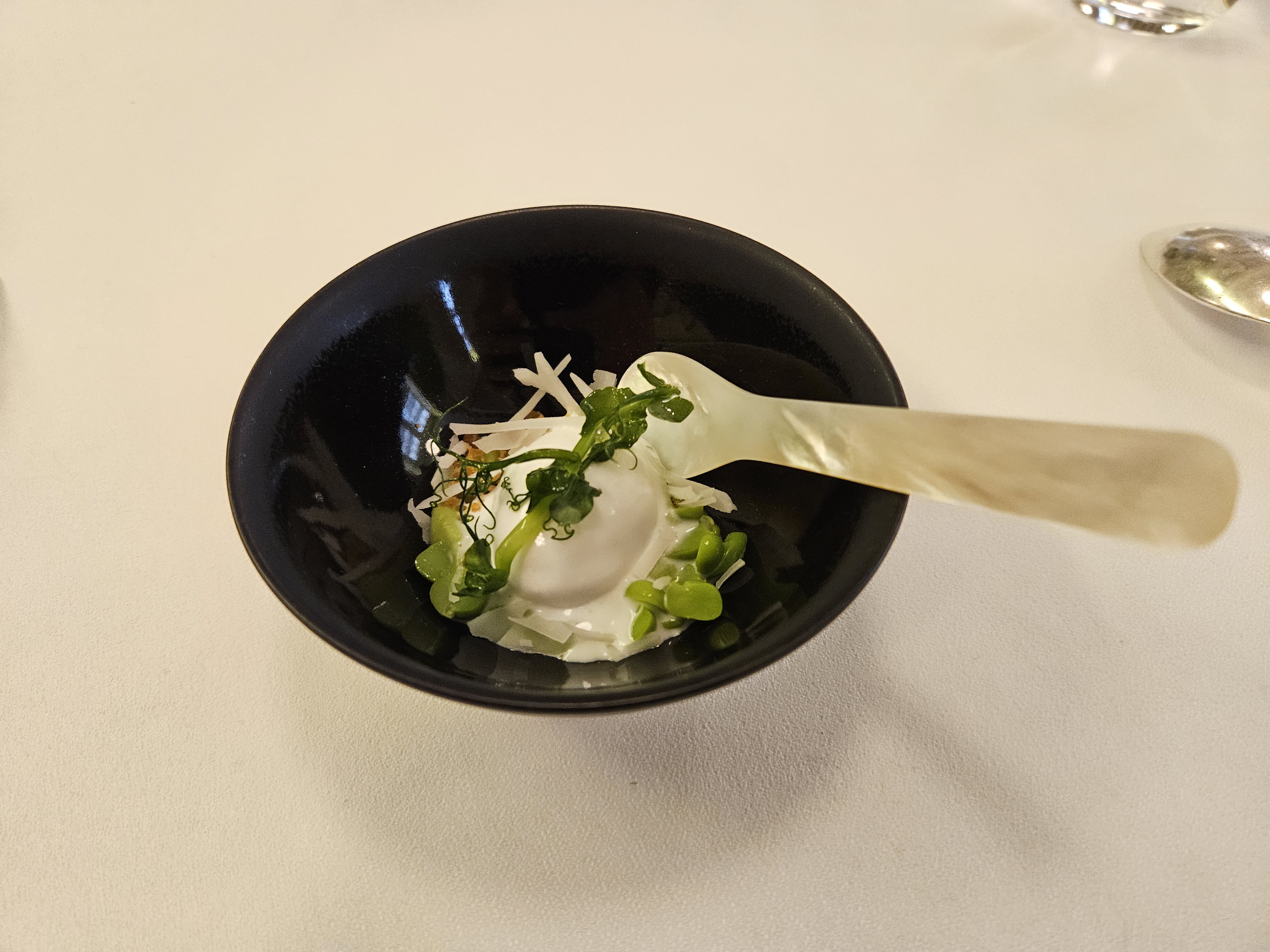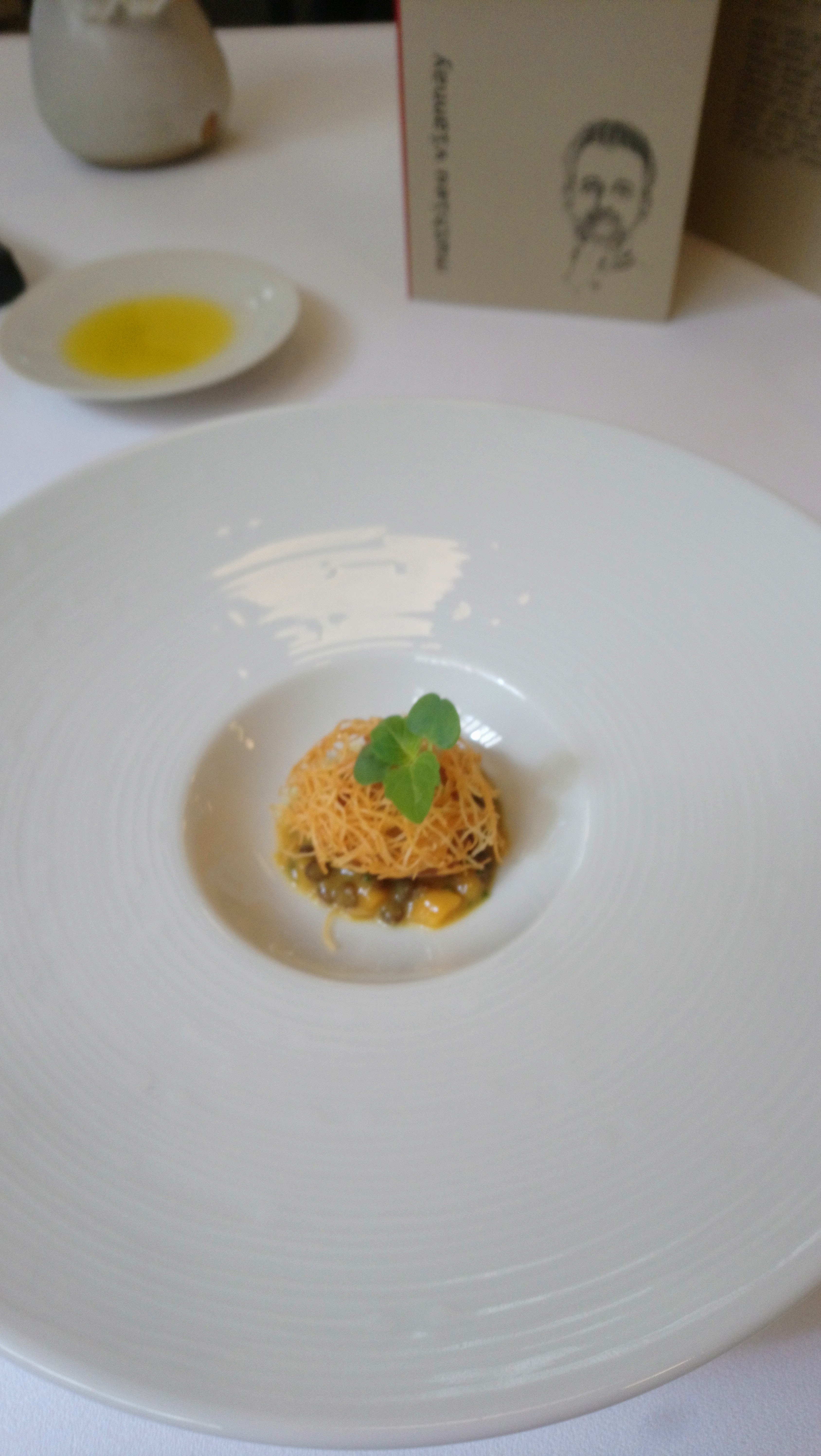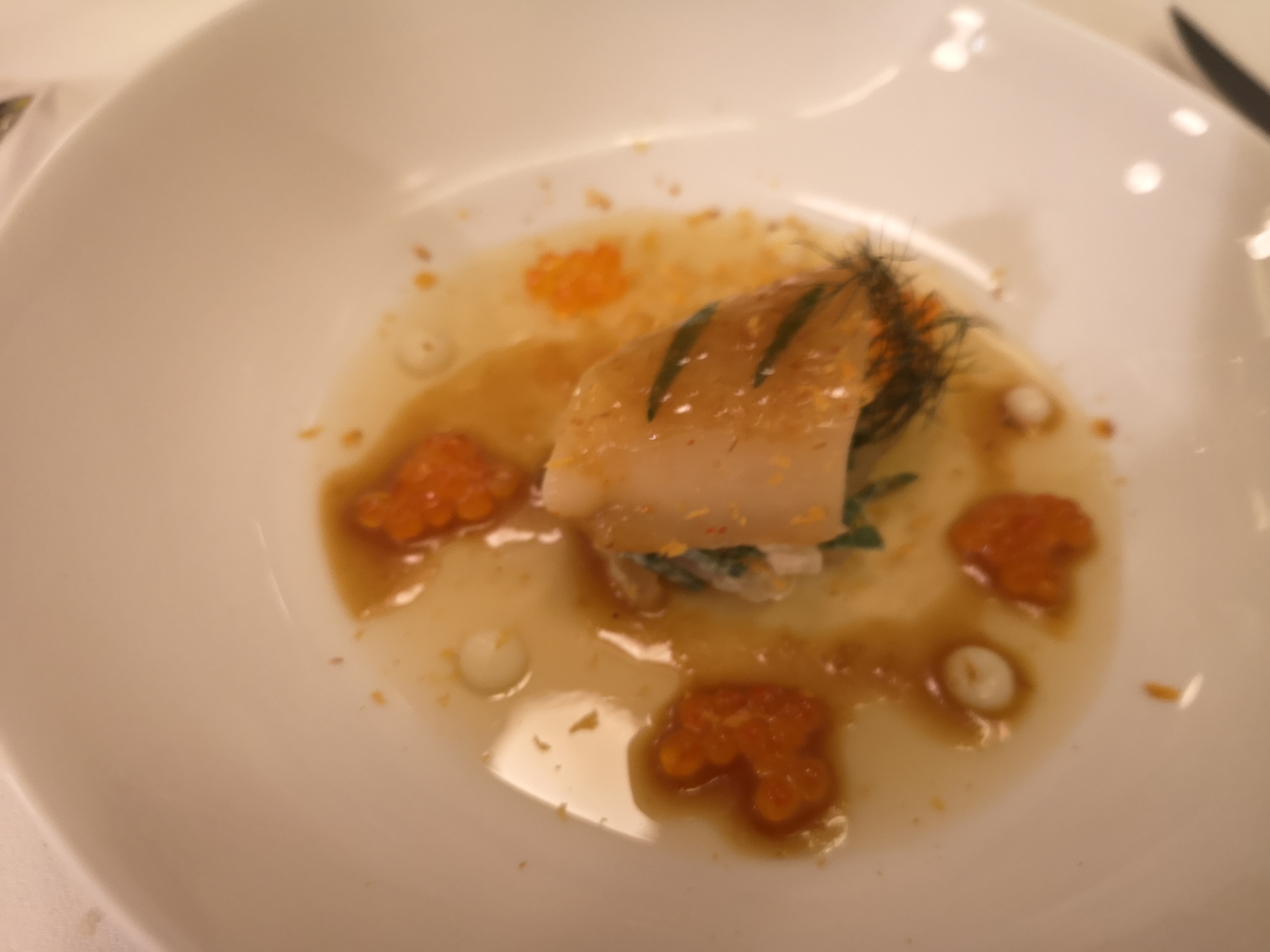 Une expérience culinaire magnifique, mais le cadre laisse à désirer. On était en couple, dans une salle toute peinte de blanche, avec trois autres couples. L'atmosphère était froide. Personne n'osait parler fort ou rigoler. Les serveurs et serveuses étaient très froids. Il n'y avait pas de la musique. C'était bizarre en gros. Aprés on a vu qu'il y avait une autre salle plus grande, où il y avait plus de monde, y compris des grandes tables. Du coup, on a eu l'impression que l'atmosphère était un peu plus détendue là bas. En tous cas, je ne le recommande pas pour un dinner romantique. La prochaine fois on cherchera un restaurant avec plus d'ambiance et une belle vue.