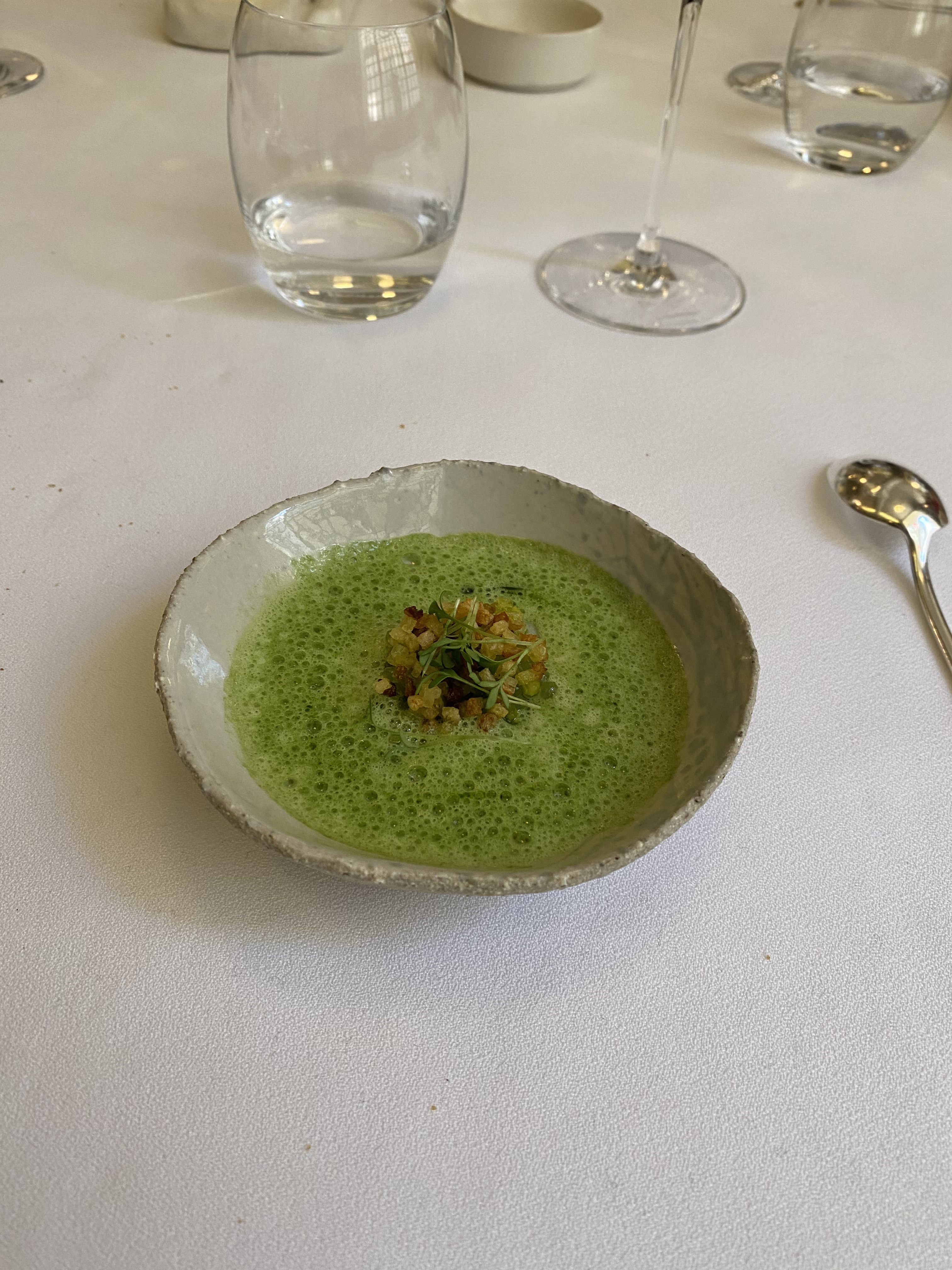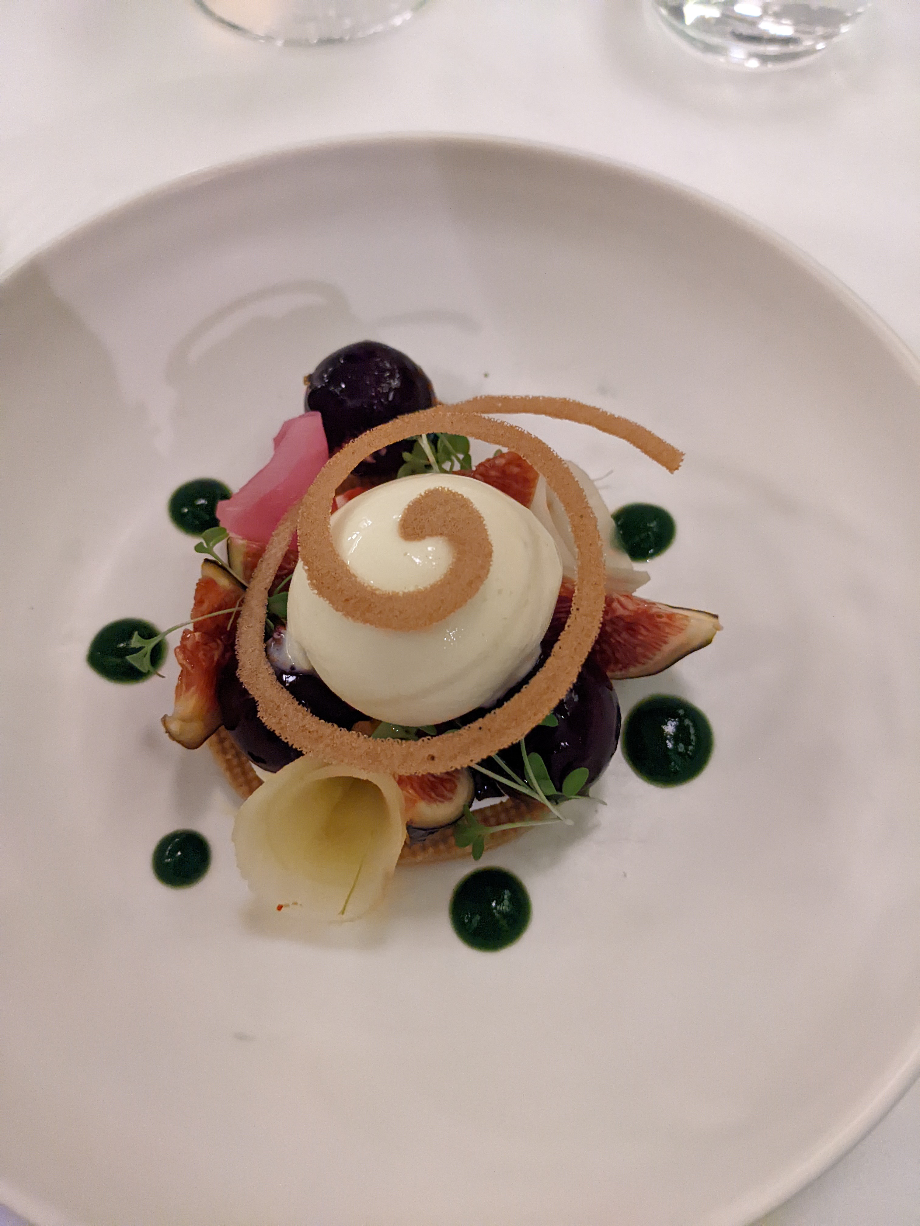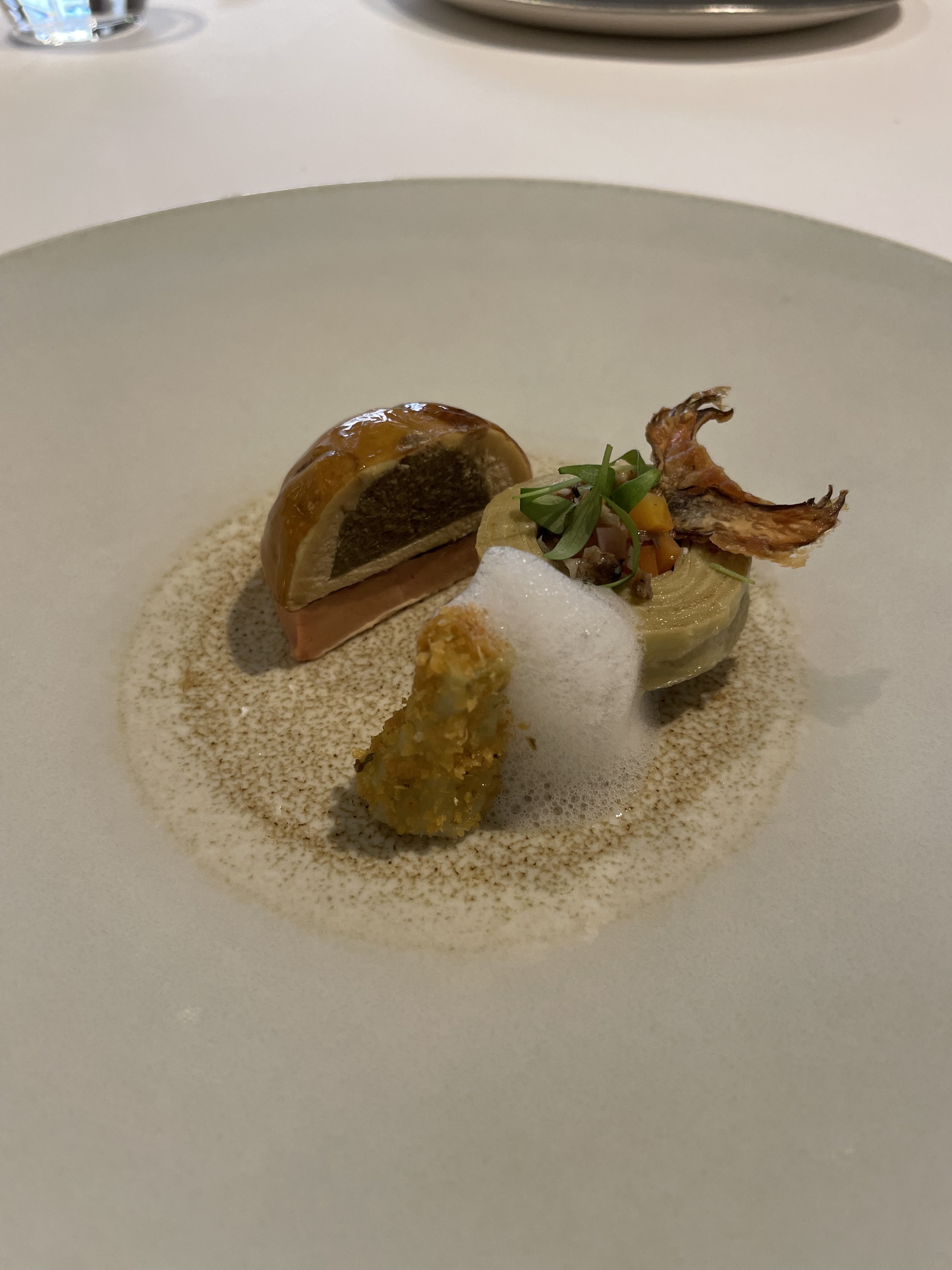 Je ne sais même pas par où commencer pour décrire cette expérience gastronomique. Le point culminant pour moi a été le caractère terre-à-terre du concept. Comme la tarte au pâté au début, une assiette très traditionnelle qu'on pourrait penser qu'il n'y a aucun moyen d'élever au niveau 2 étoiles mais ils l'ont juste fait. Ou le soufflé de brochet, il faut tellement de travail pour rehausser un plat traditionnel déjà étonnant. Et ne me lancez pas dans les Madelains fraîchement soutenus, c'était tout simplement la meilleure Madelain dont je ne connaissais pas l'existence. Le reste des assiettes était très complexe avec autant de travail sur les arômes et les textures. Nous avons eu le menu à 7 services, mais rétrospectivement, j'aurais certainement dû avoir le service à 10 services. L'accord mets et vins était ABSOLUMENT excellent. Merci pour une soirée incroyable !!
