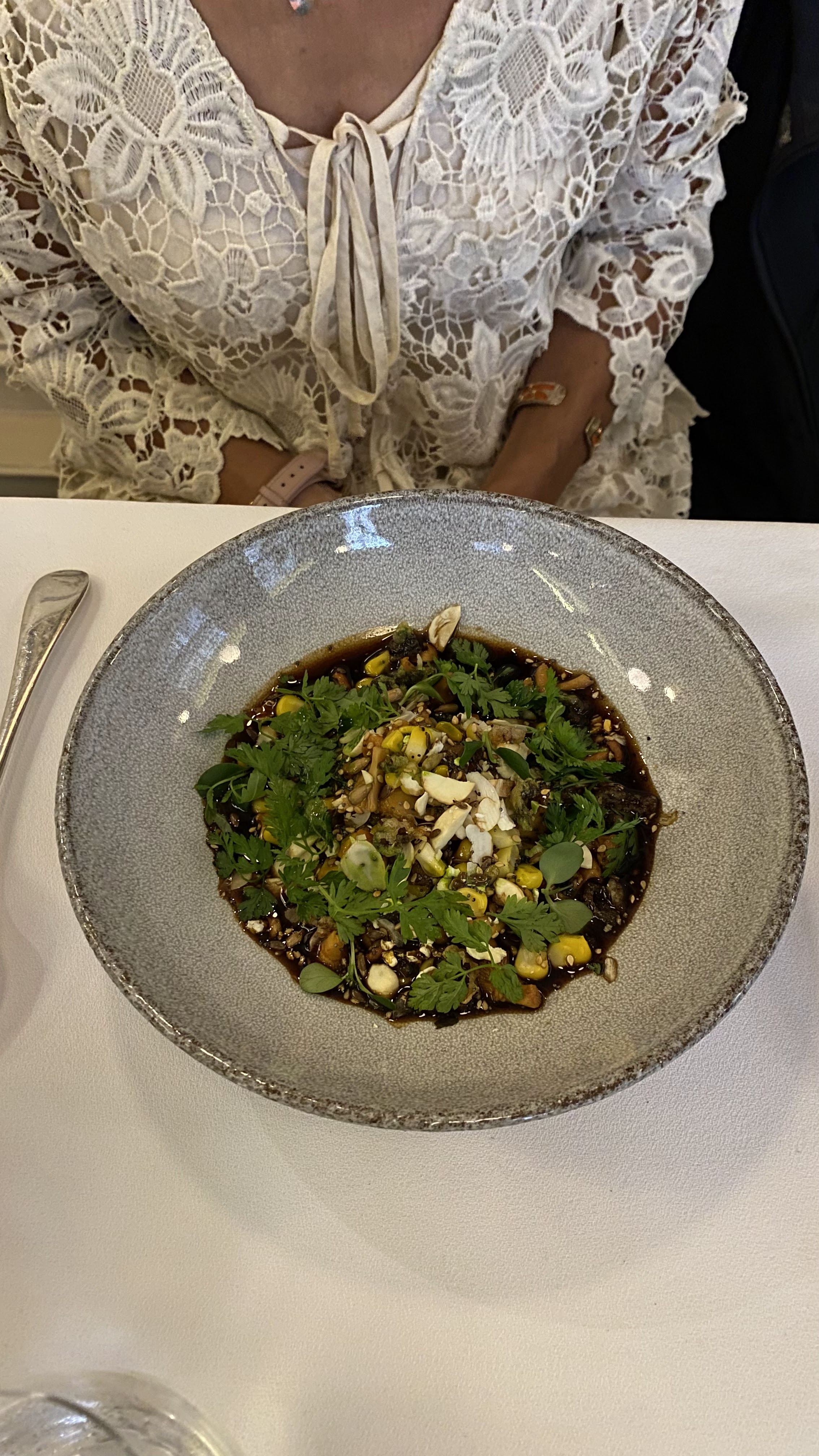 C'était parfait. Menu du déjeuner en semaine... Seulement 4 étoiles pour l'ambiance car pas de vue particulière mais cadre élégant et c'est une institution lyonnaise !