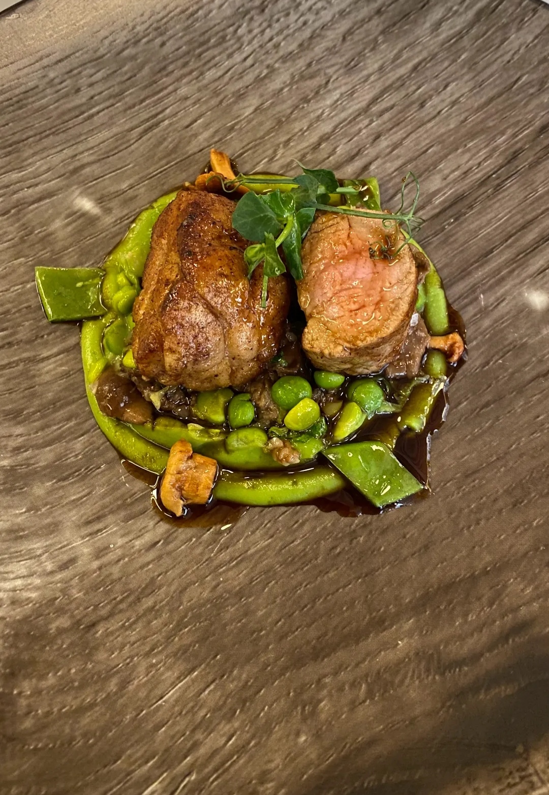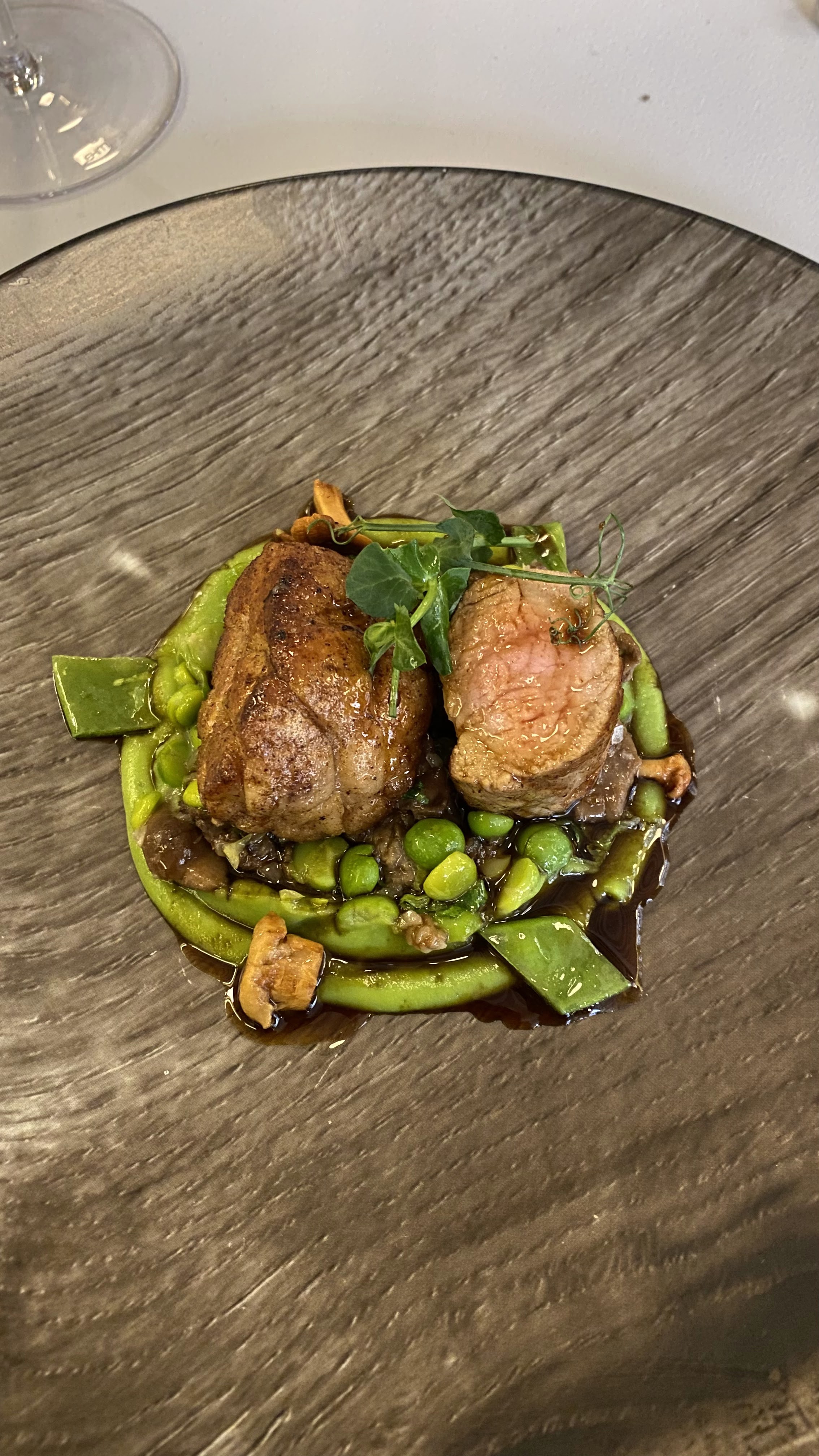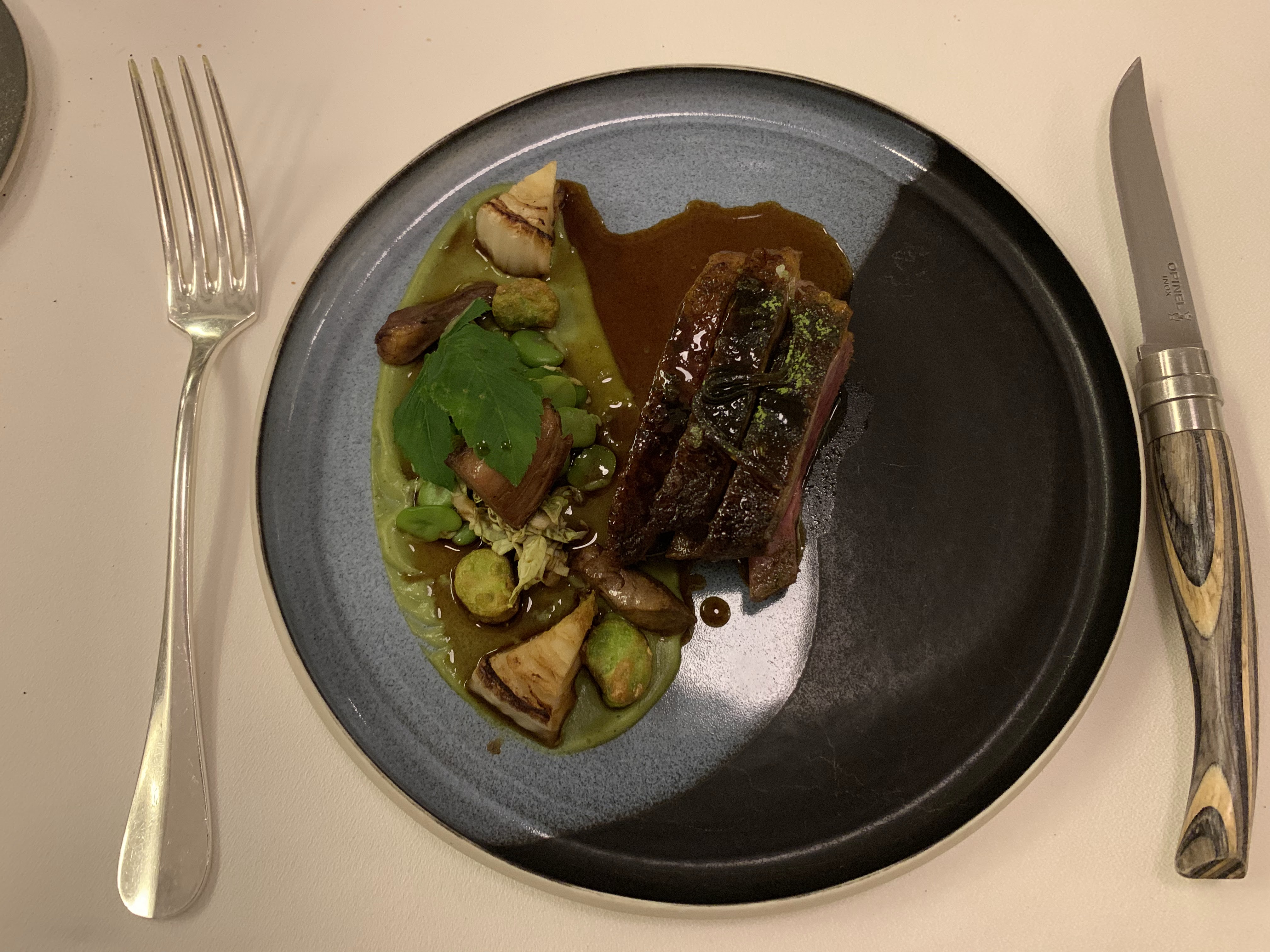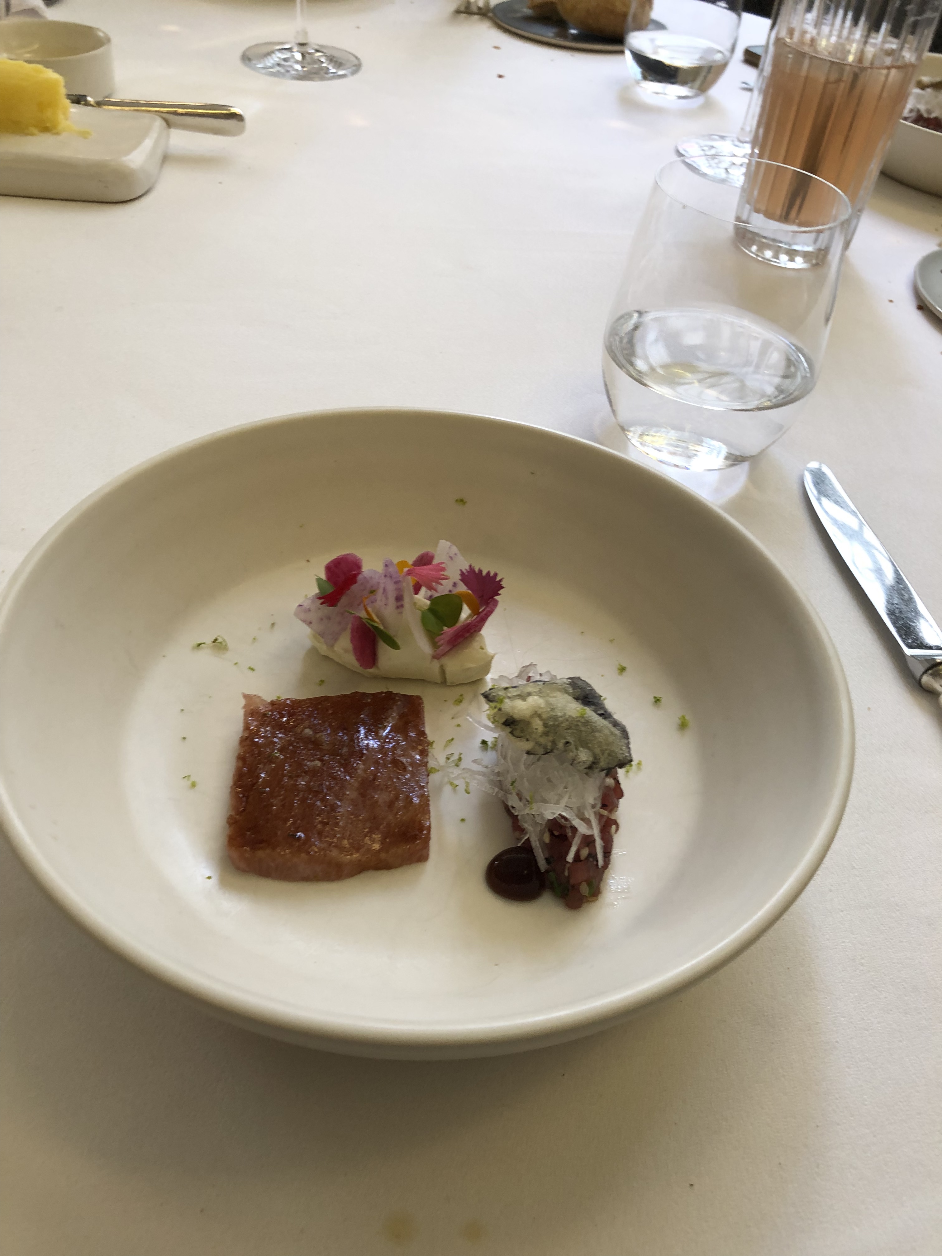 J'ai lu des critiques élogieuses et j'attendais ce repas avec impatience. Ils n'ont pas déçu. Le service, la nourriture et l'attention portée aux détails étaient impeccables. J'ai entendu dire qu'ils avaient une bonne collection de vins, mais ils se sont installés sur Chenas du nord de la région - équilibré avec des tanins soyeux, très agréables.