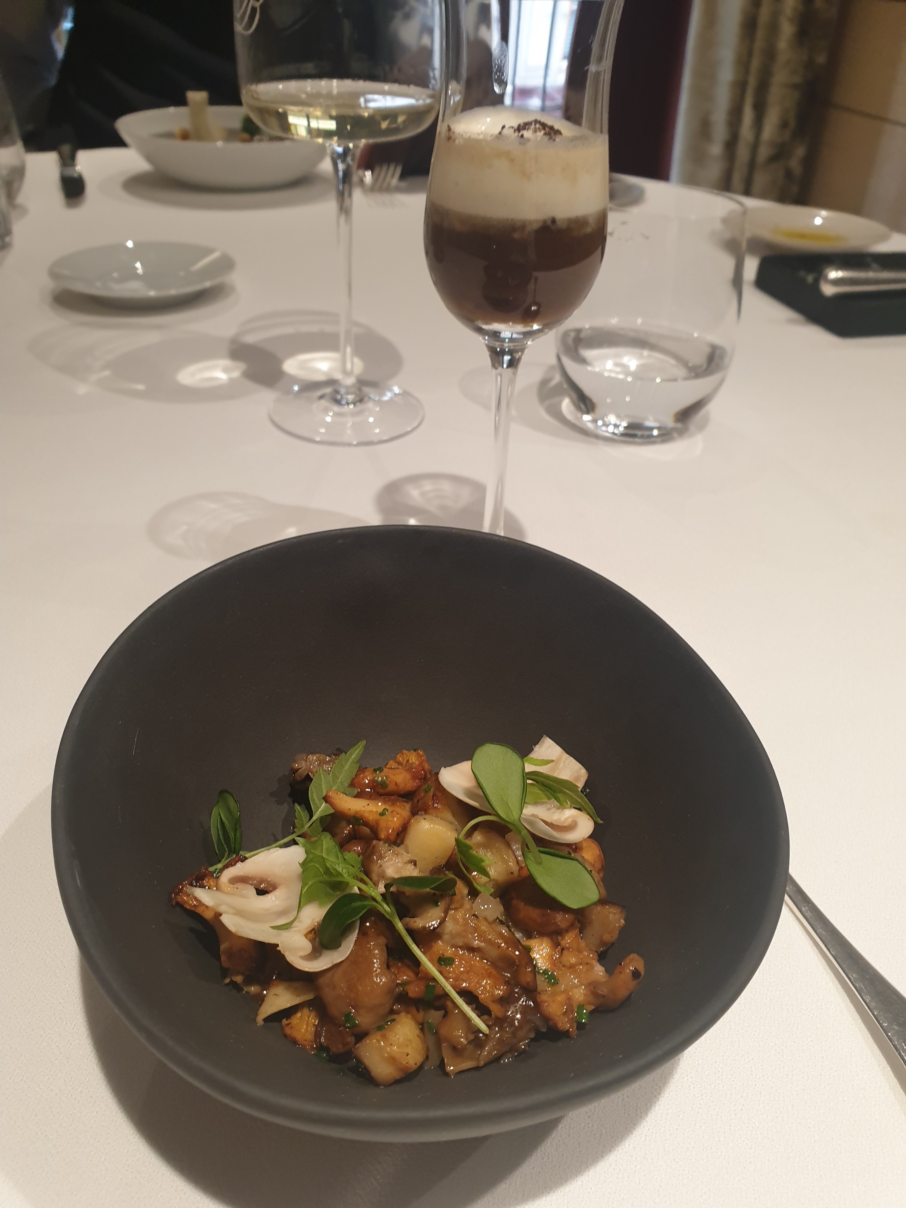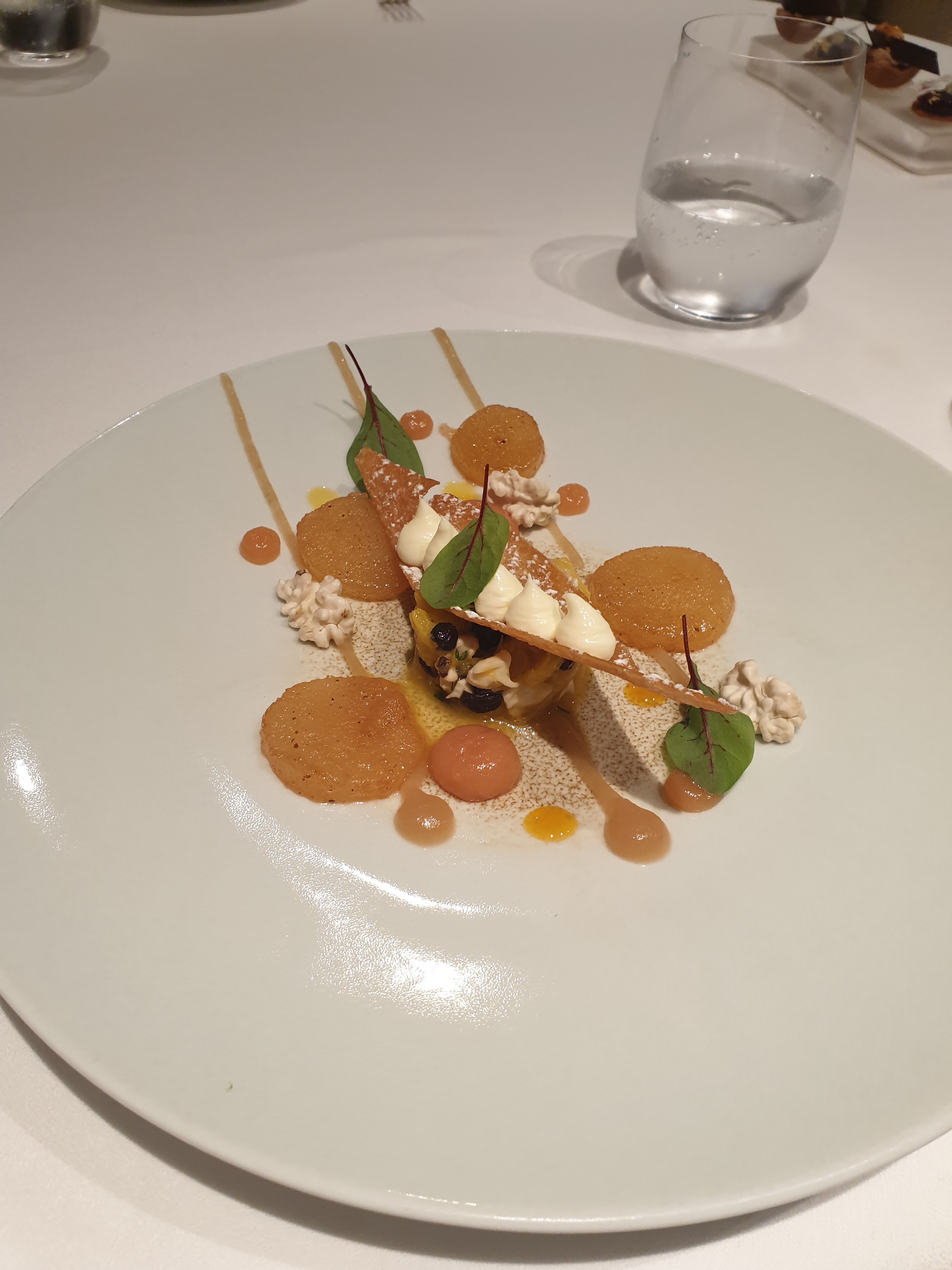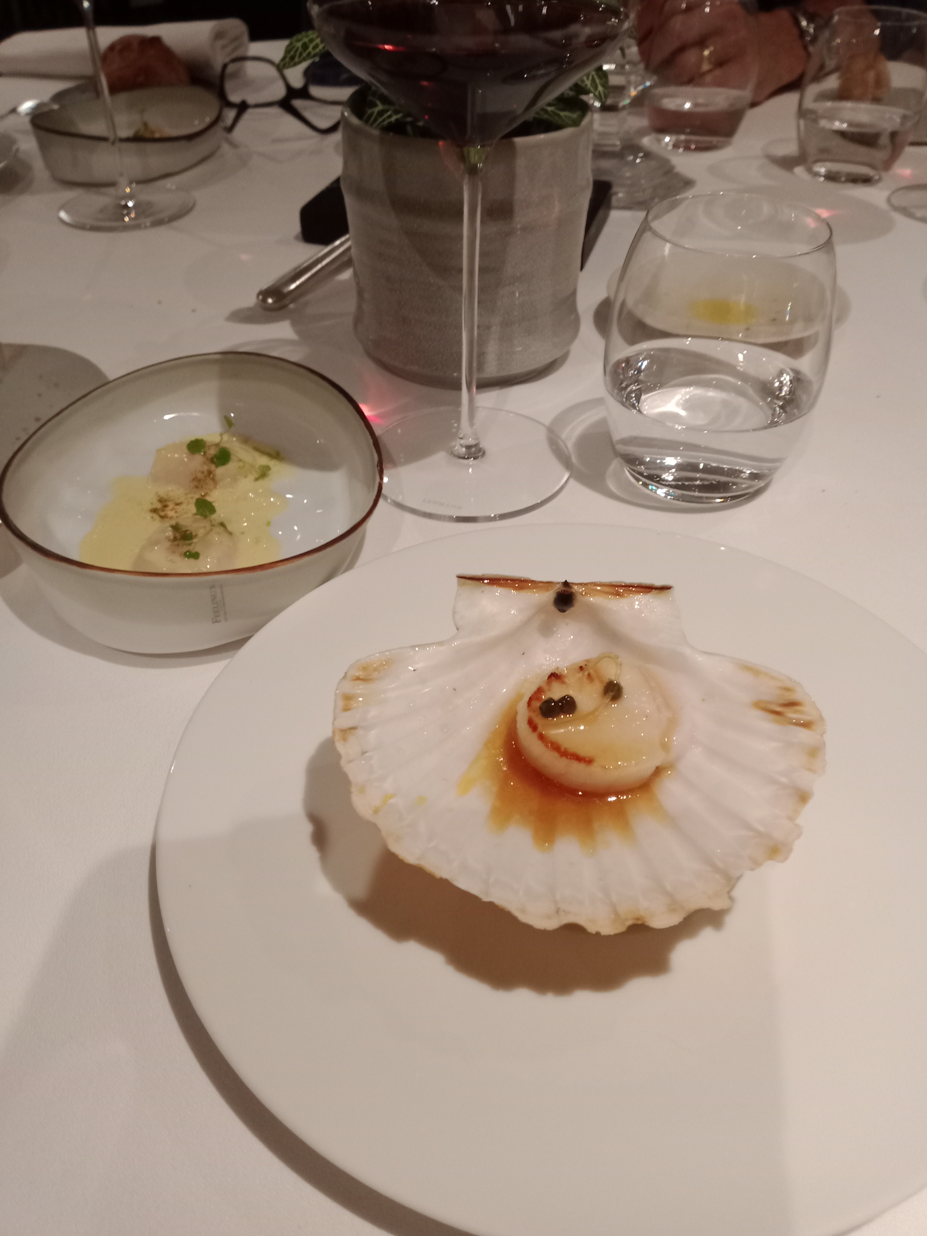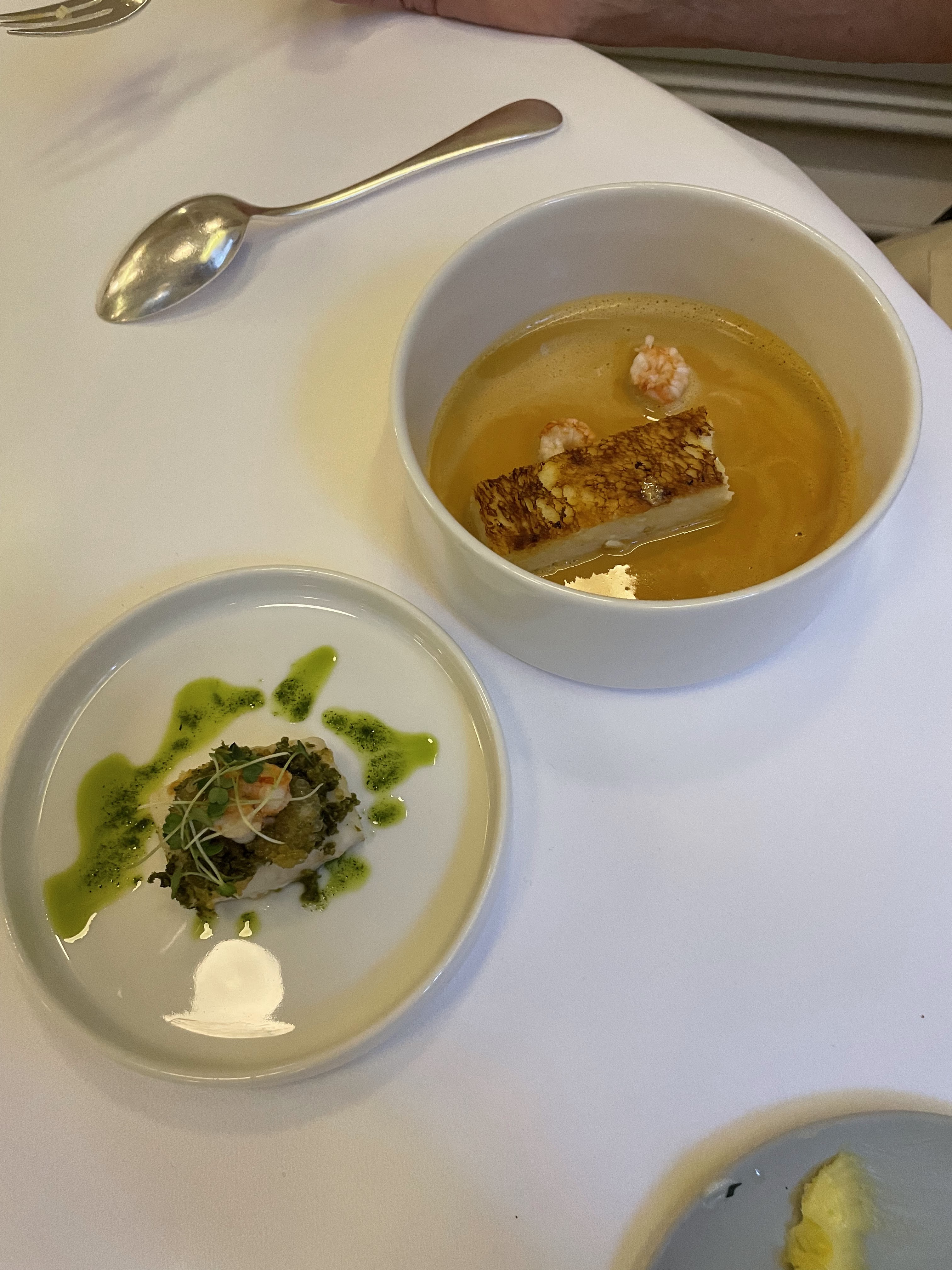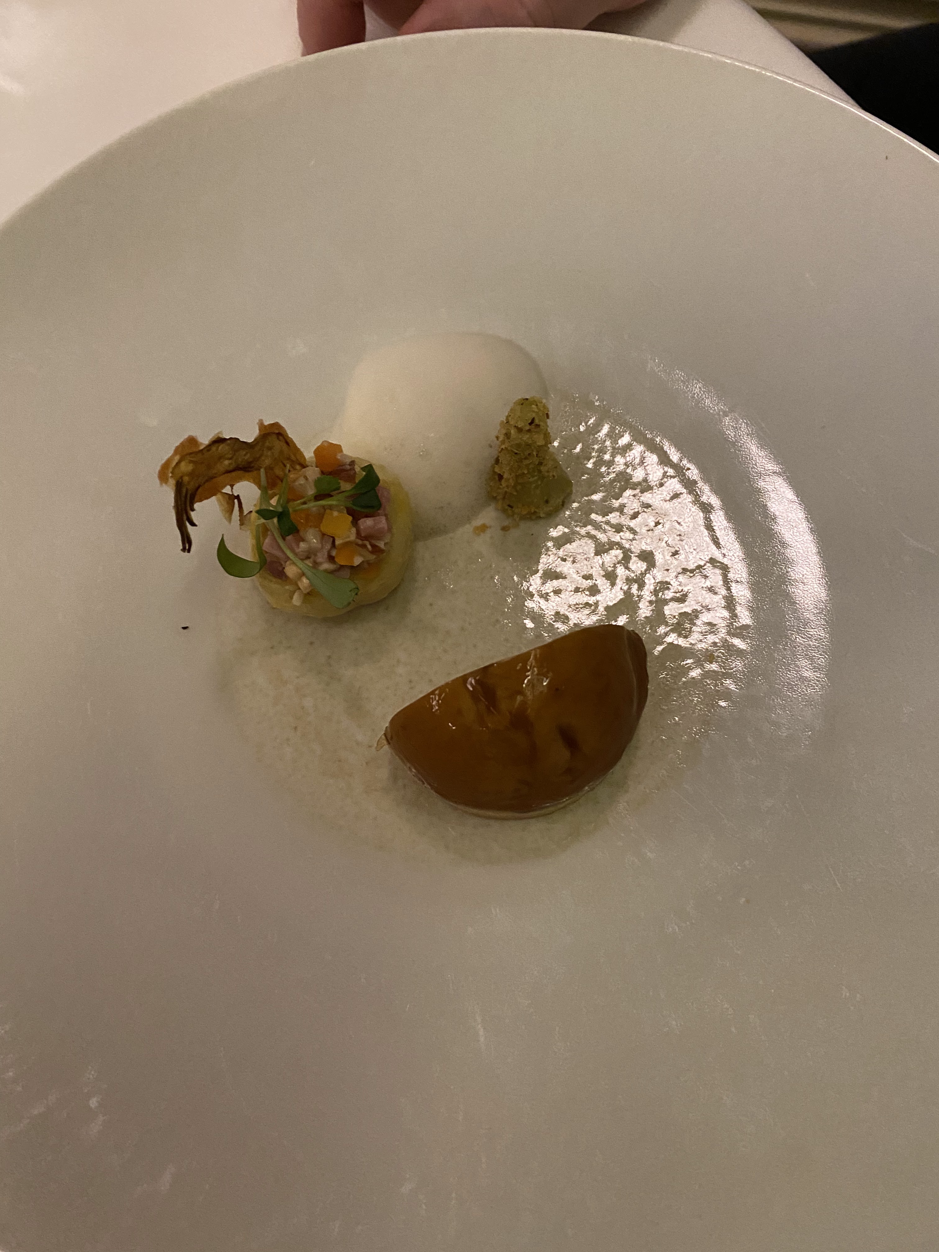 Ce soir, c'était une expérience intéressante. Je m'attendais à ce que ce soit incroyable avec deux étoiles Michelin, mais c'était légèrement décevant - je ne sais pas si c'est l'après COVID ou la norme ? Le restaurant avait l’air de n’avoir pas été décoré depuis des années et lui donnait un aspect vieux et étouffant. L'entrée était délicieuse - des champignons pour moi et du crabe pour mon partenaire - tous deux délicieux. Nous avons eu deux « plats principaux » - le poisson était « correct » mais était accompagné d’un étrange cadre vert qui n’ajoutait rien au plat. Il y avait aussi une sauce qui était amère. Le veau était cru au milieu - le rose est une chose mais il avait l'air cru à l'intérieur plutôt que légèrement cuit. Pour une place deux étoiles Michelin, je devrais dire que chaque bouchée était incroyable alors que nous tirions les éléments positifs d'un sac mélangé. Pour combien d'argent ça coûte, ce n'est pas bon. Ambiance : manque de chaleur, un peu tamisée avec peu d'interaction des serveurs, un peu étouffante. Dessert : belle Alaska cuite au four mais l'ajout d'un ventre vert n'était pas nécessaire et l'alcool sur le dessert ne correspondait pas du tout. Le plat de noisettes était magnifique. Service : était bon mais manquait de chaleur. Trop cher et décevant, j'en ai peur.
