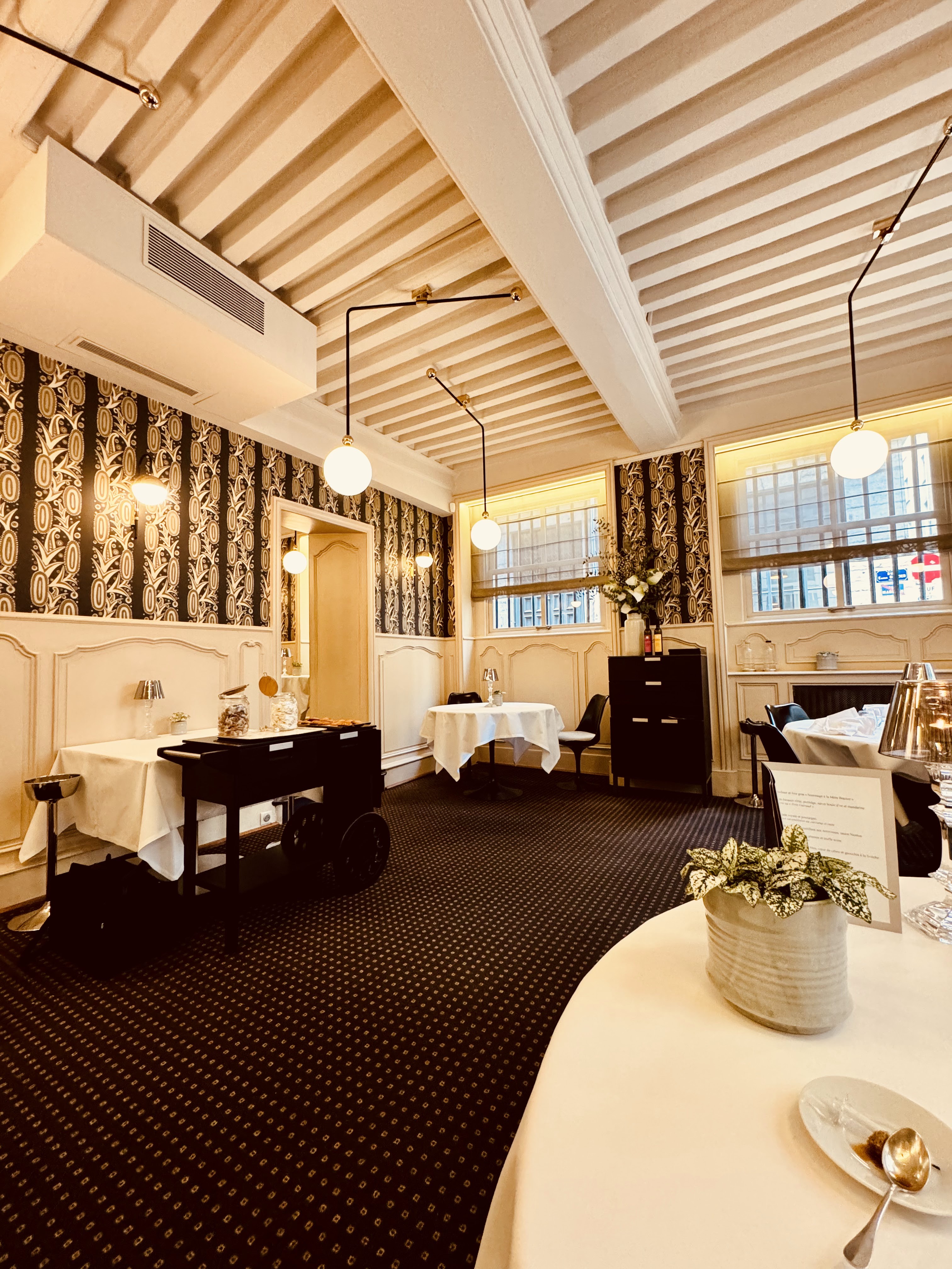 Une institution lyonnaise, une table incontournable qui a accueilli tant de célébrités, une réputation qui n’est plus à faire…et pourtant nous n’avions jamais fait ce restaurant si proche de chez nous ! Pour résumer notre dîner : Service voiturier efficace. Accueil chaleureux Endroit à la décoration simple et élégante. Très bon sommelier Mets nobles (caviar, foie gras, chevreuil) Service et plats équilibrés, on n’en ressort pas ballonné Justesse des saveurs et des assiettes, tout est excellent, rien de tape à l’œil. Le 3 étoiles Michelin n’est vraiment pas loin. À refaire 👌☺️