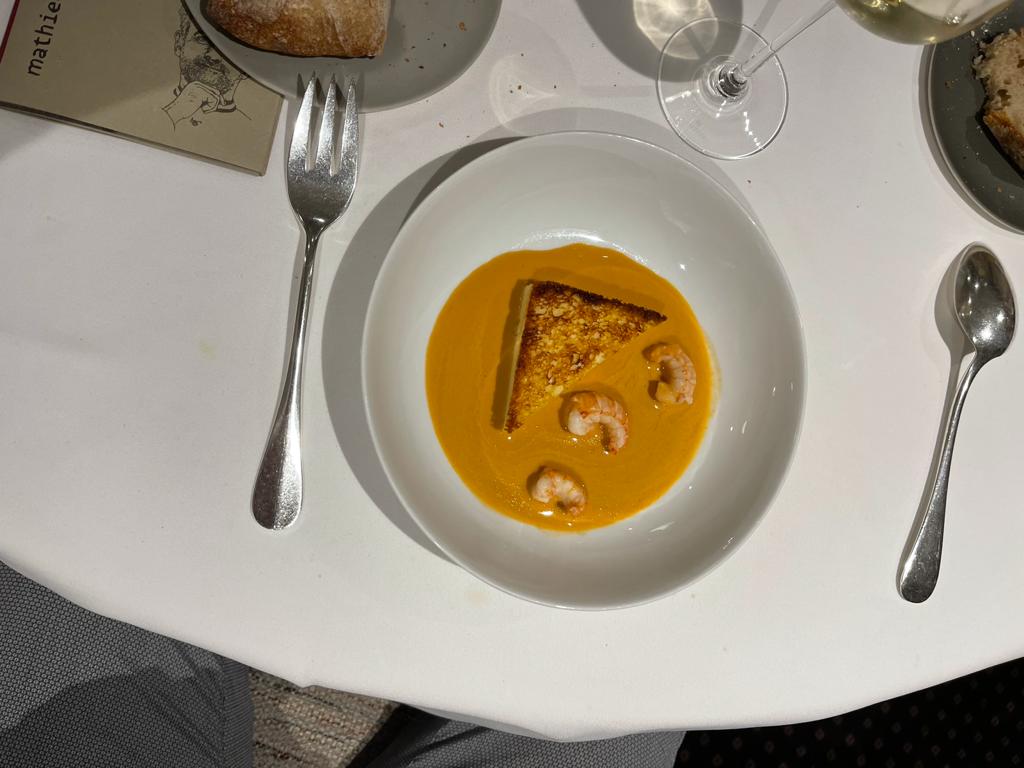 Incontournable ! Nous sommes venus déjeuner, ce qui peut être moins cher que le dîner. Excellent service et excellentes recommandations de vins du sommelier. Je suis sans gluten et ils m'ont hébergé. Le plus joli plat est sans doute l'araignée la mer dans son plat en argent. Ne manquez pas le soufflé à la chartreuse pour une finale sucrée. J'adorerais revenir pour essayer d'autres plats.