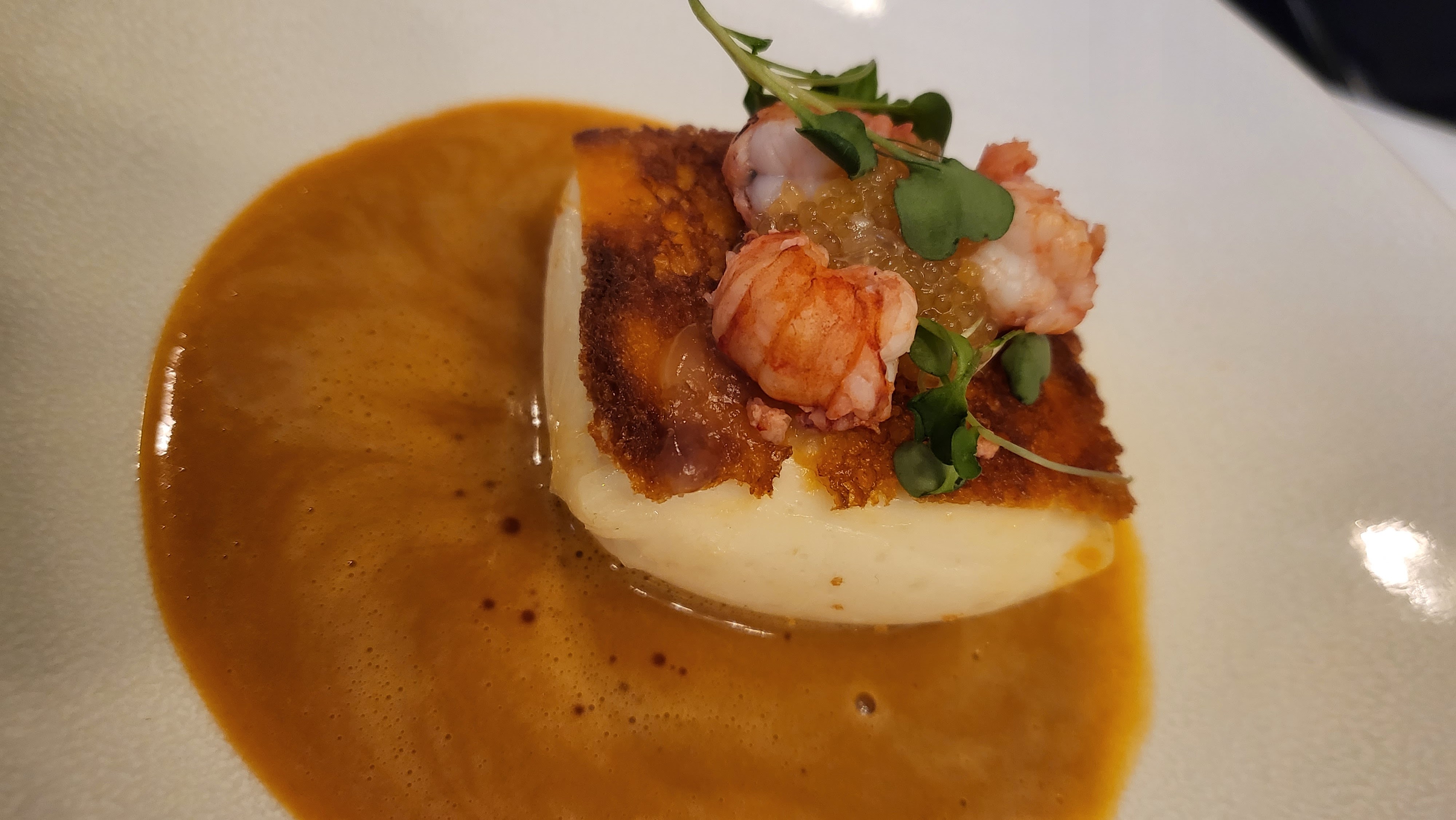 Service exceptionnel. Nourriture exceptionnelle. Nous avons fait le menu dégustation de 7 plats. Le crabe et le caviar sont parfaits. Chaque plat était préparé et présenté extraordinairement bien. Les serveurs sont tellement professionnels et tellement gentils.