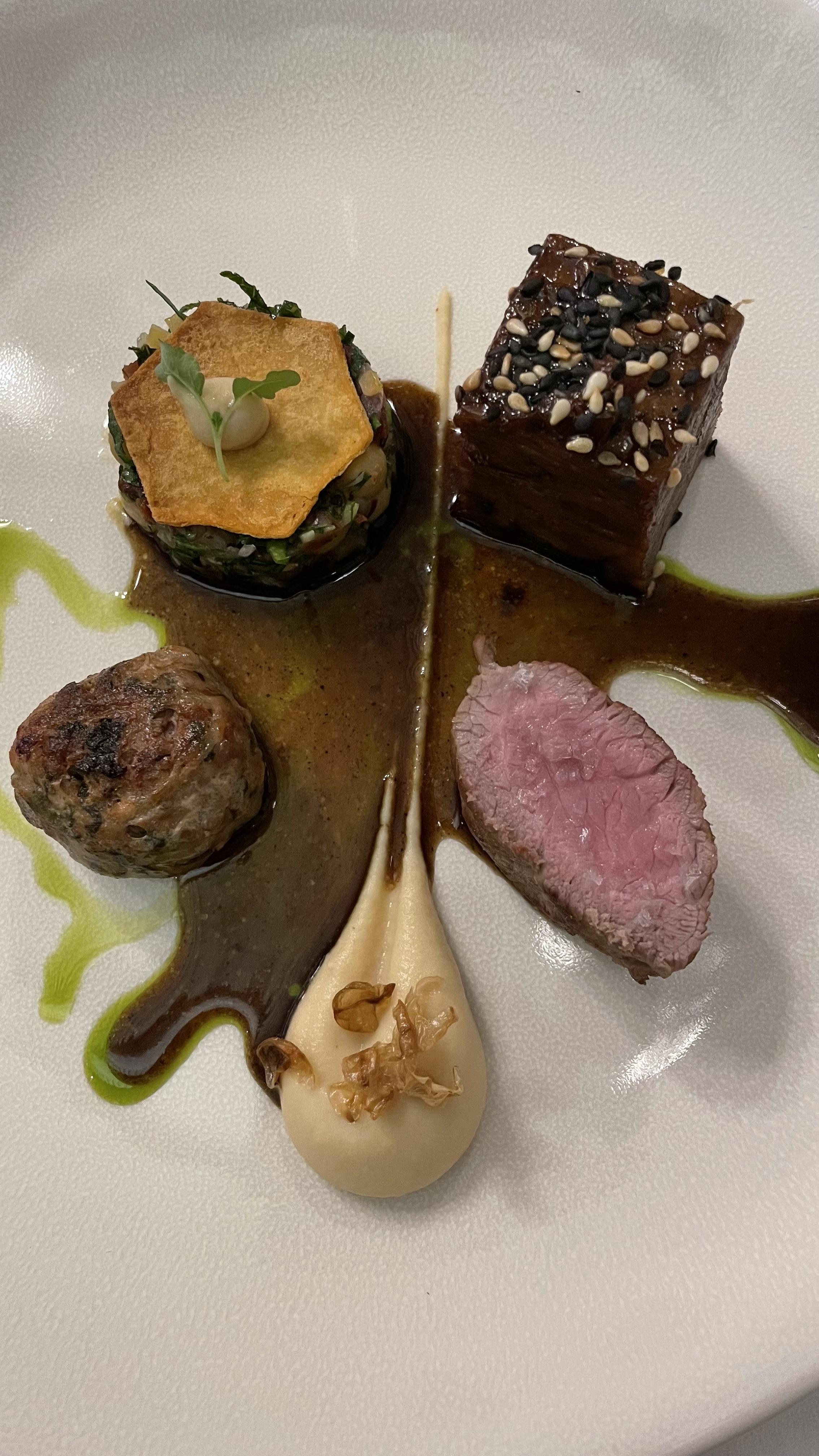 Moment d'excellence de mets servis et présentés par une brigade moderne et un service agréable et affectueux et rieurs ! Un plaisir IN CRO Y A BLE ! Juste bravo
